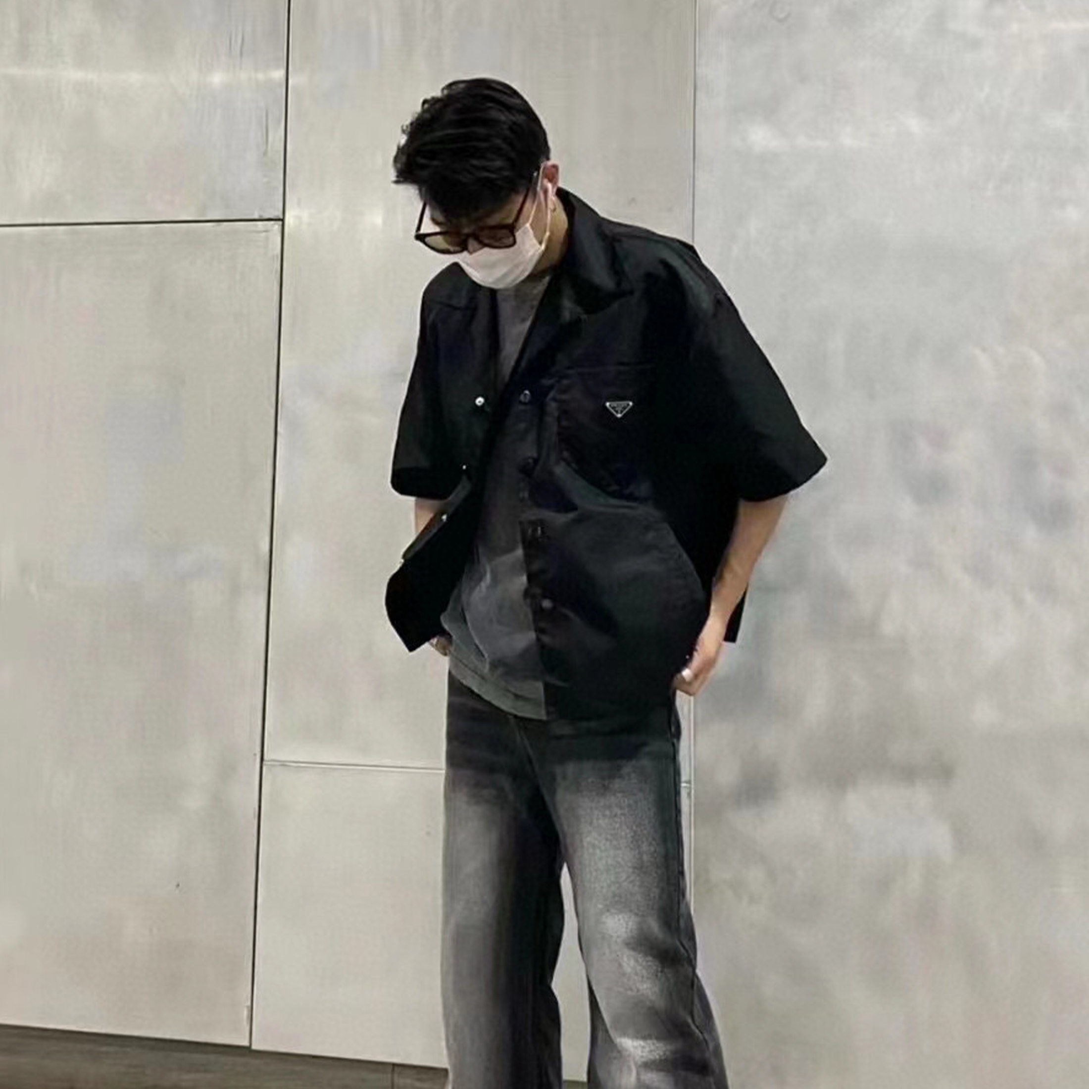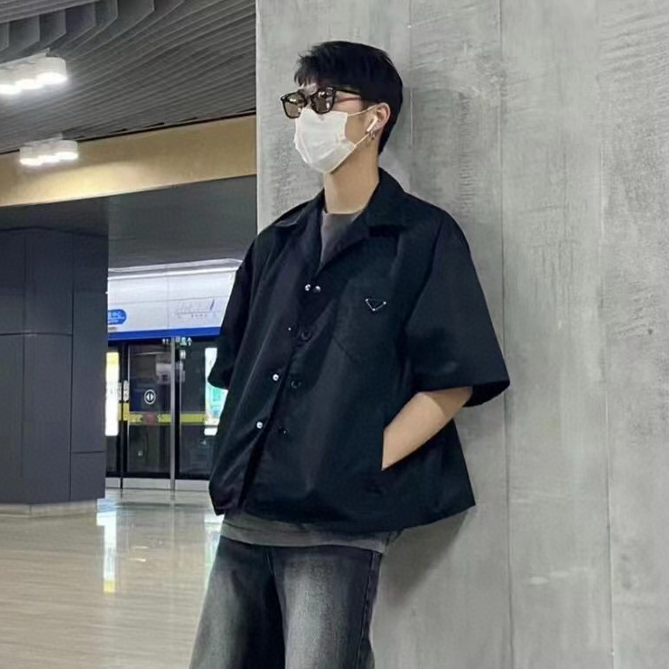 NIGO Prada Re-nylon Short Sleeve Shirt Summer Men's Nylon Short Loose Fit Single-breasted Lapel Short Sleeve T-shirt #nigo71954