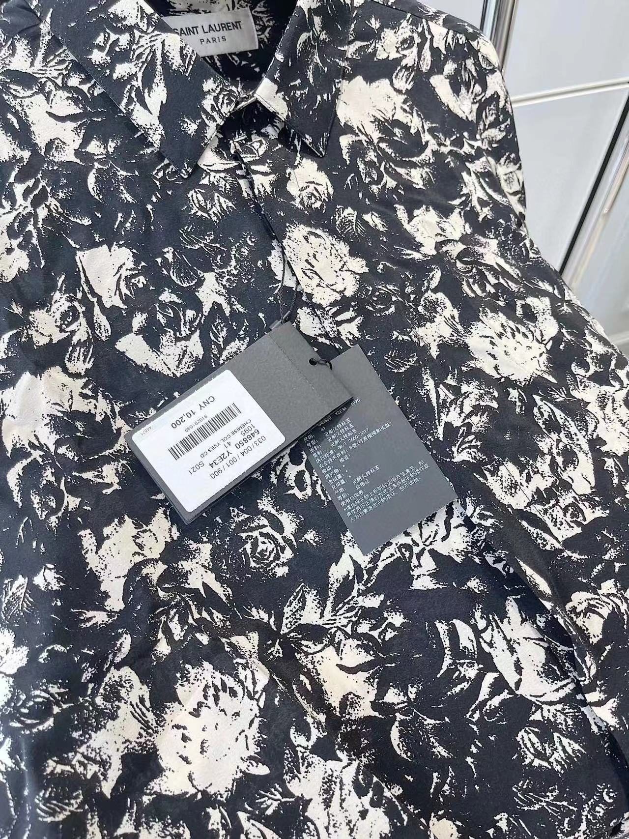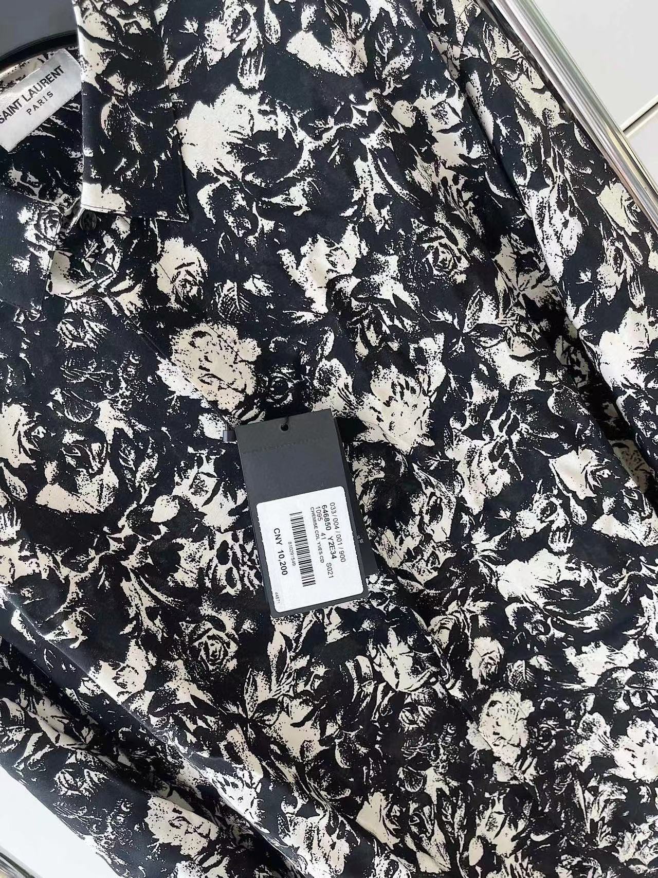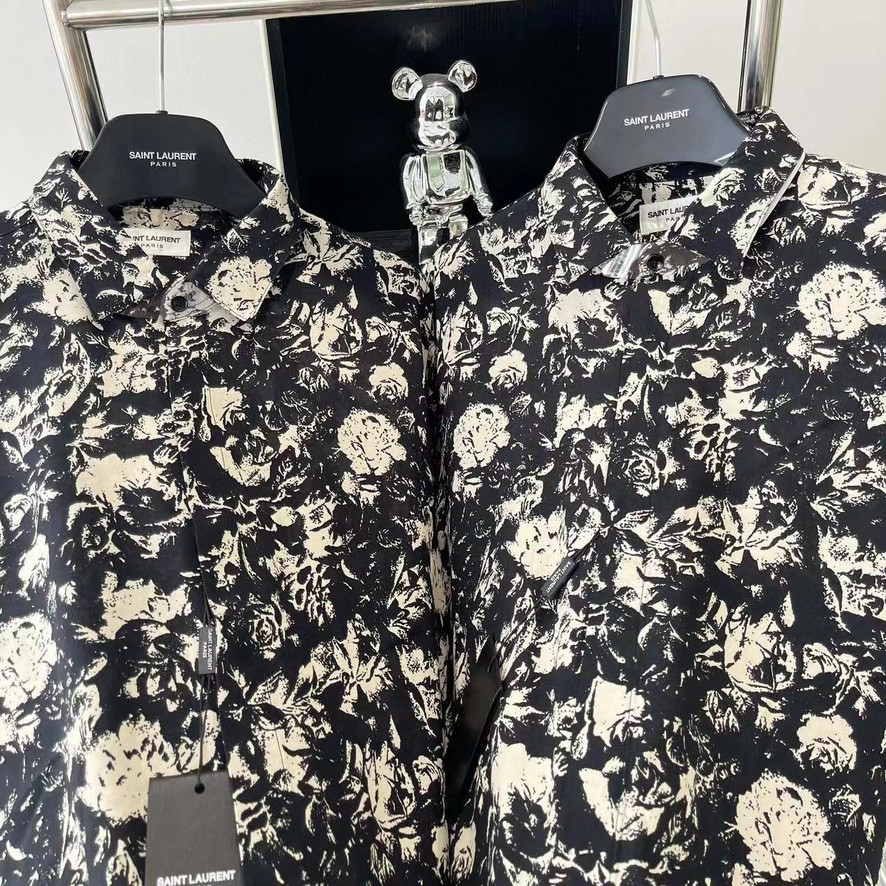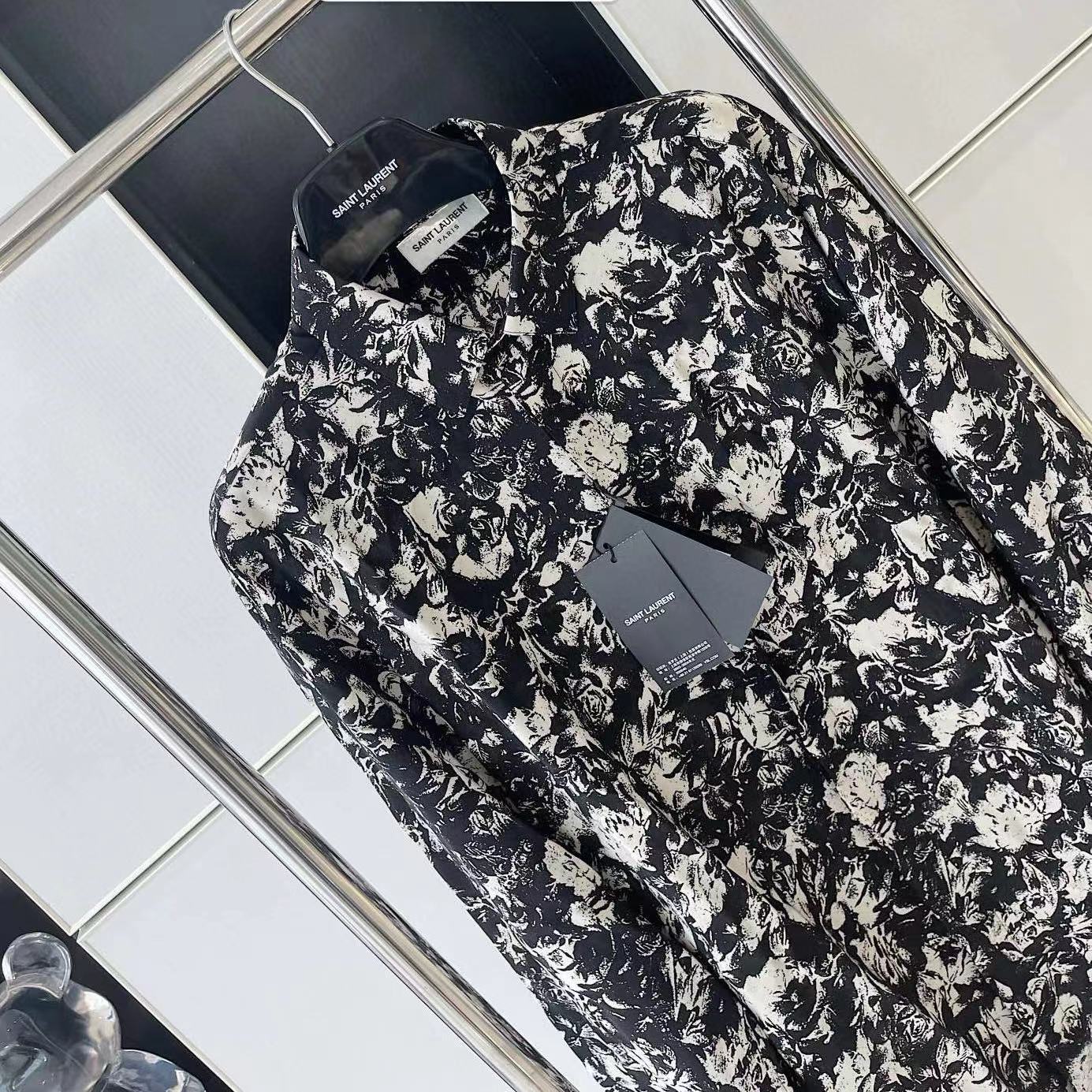 NIGO Saint Laurent Men's Spring And Fall French Rose Print Single-Breasted Lapel Loose Casual Long-Sleeved Silk Shirt Ngvp #nigo7986