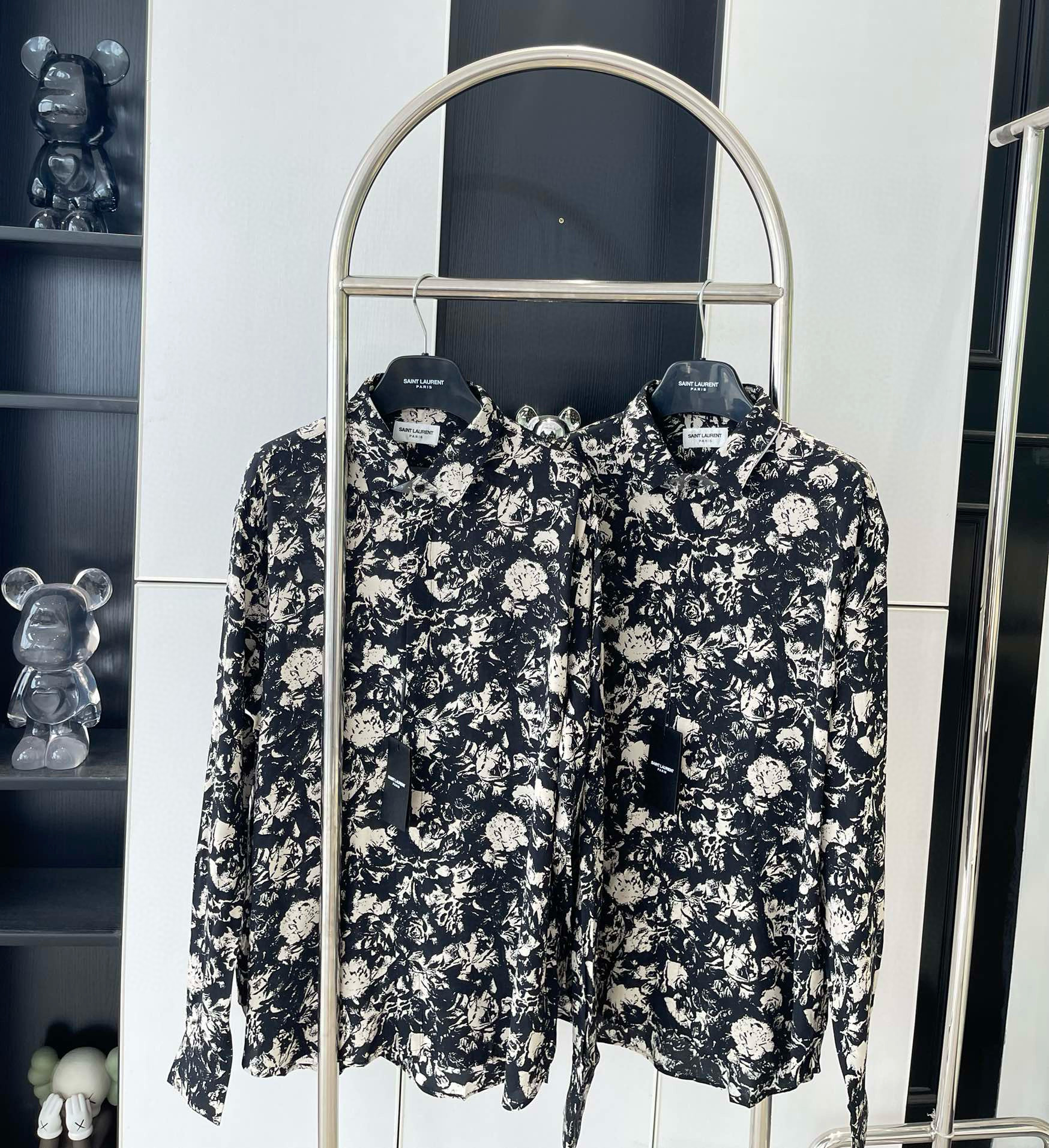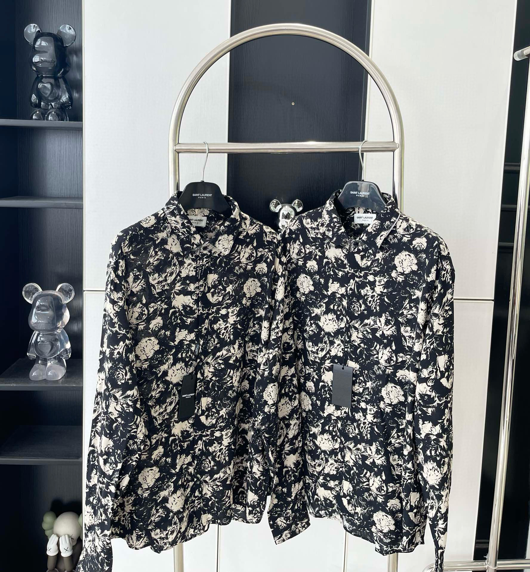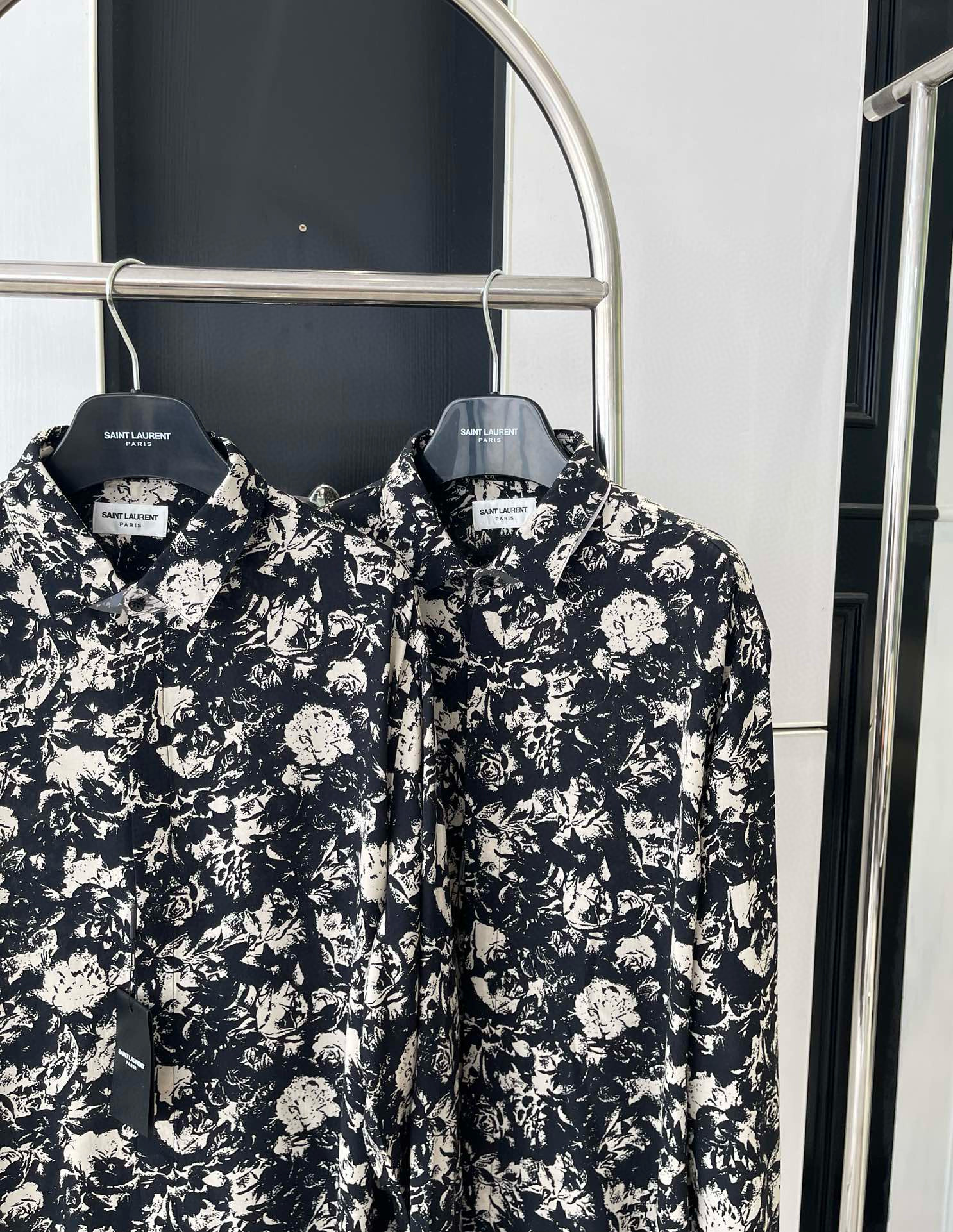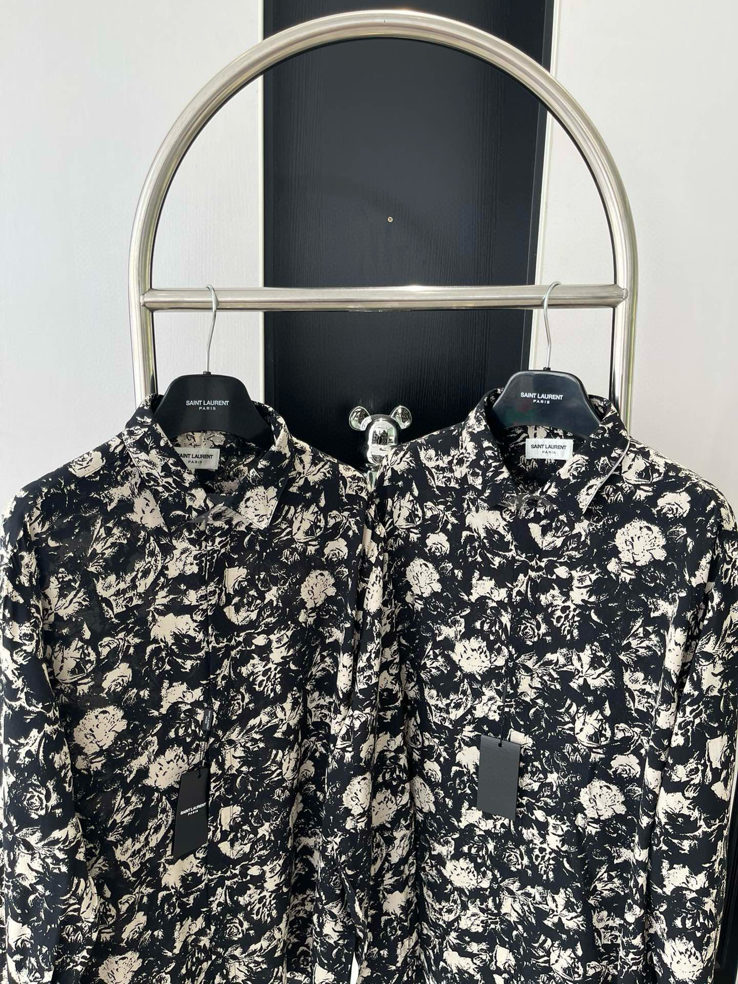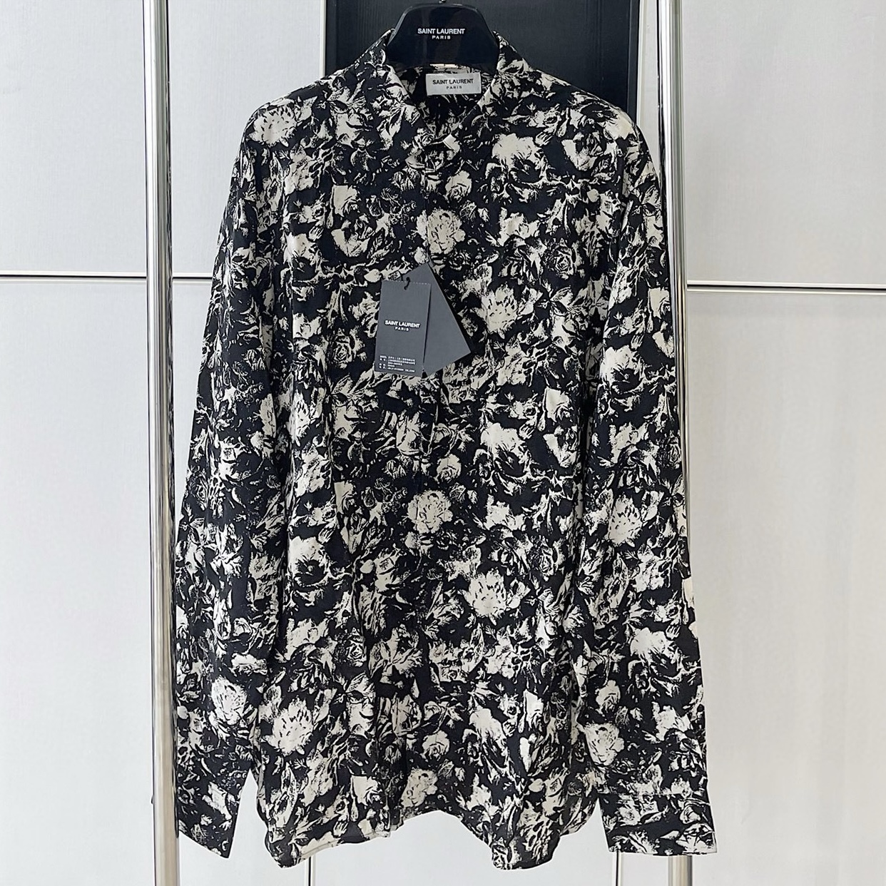 NIGO Saint Laurent Men's Spring And Fall French Rose Print Single-Breasted Lapel Loose Casual Long-Sleeved Silk Shirt Ngvp #nigo7986