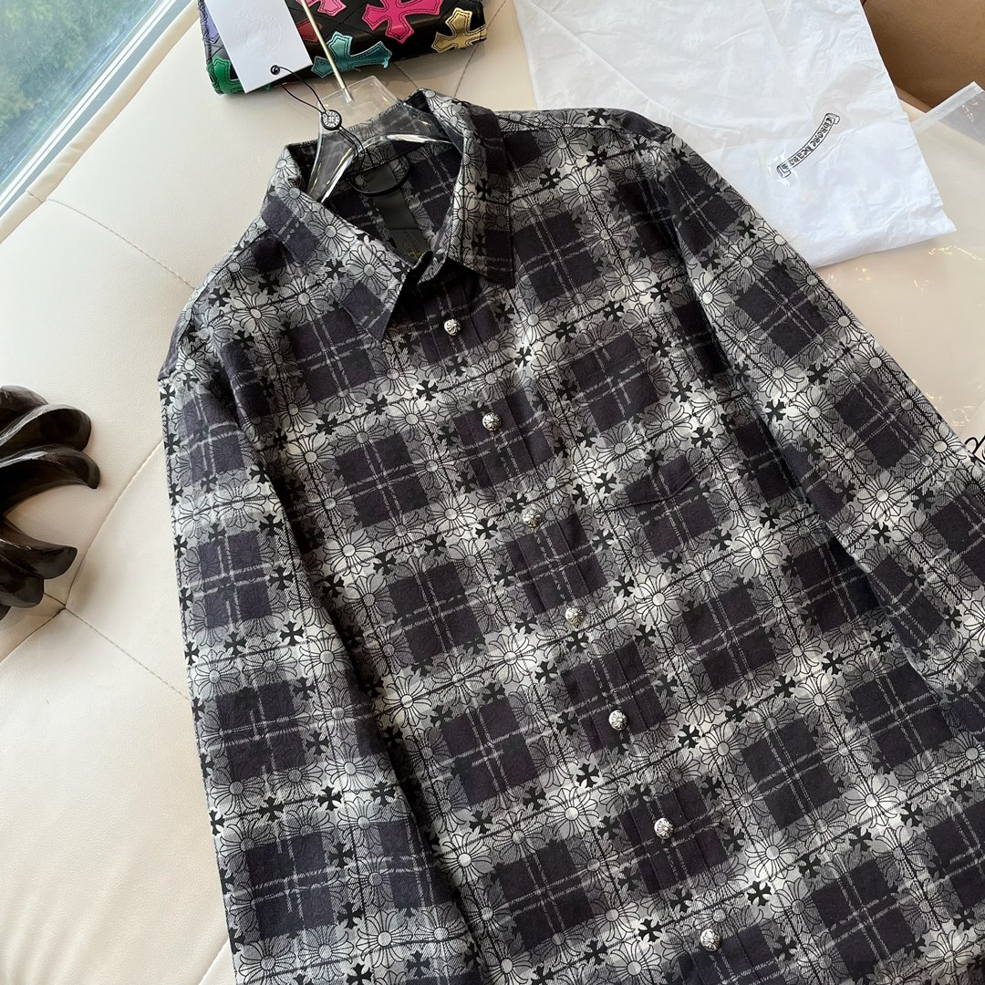 NIGO Chrome Hearts Men's And Women's Spring and Autumn Dark Logo Lapel Single Breasted Long Sleeve Shirt #nigo73922