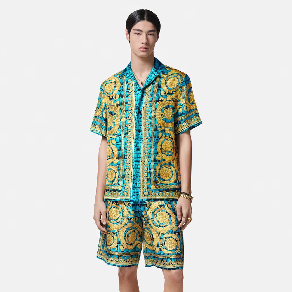 Casablanca NIGO Twisted Crochet Knit Striped Short Sleeve Shirt Cotton Shorts #nigo6394