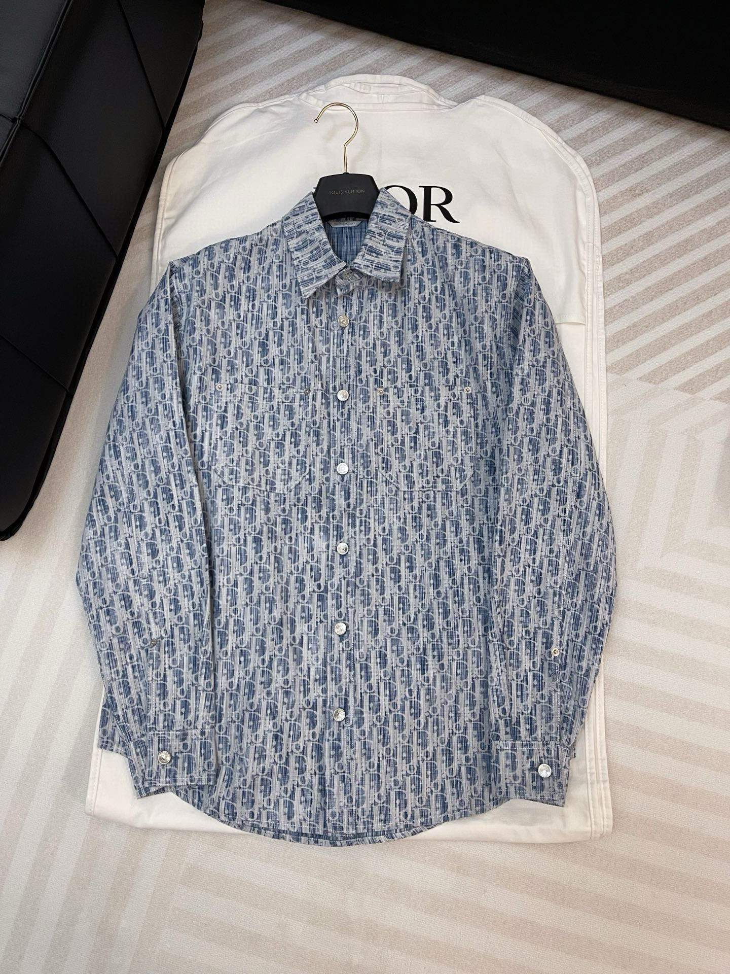 NIGO Dior Men's Spring/Autumn Alphabet Print Single-Breasted Long-Sleeved Denim Shirt #nigo77785