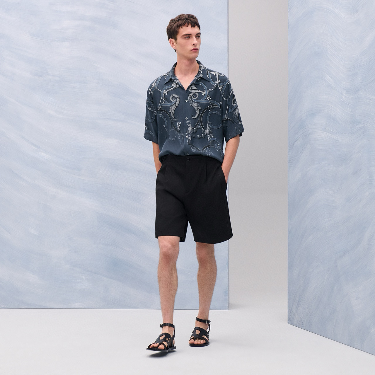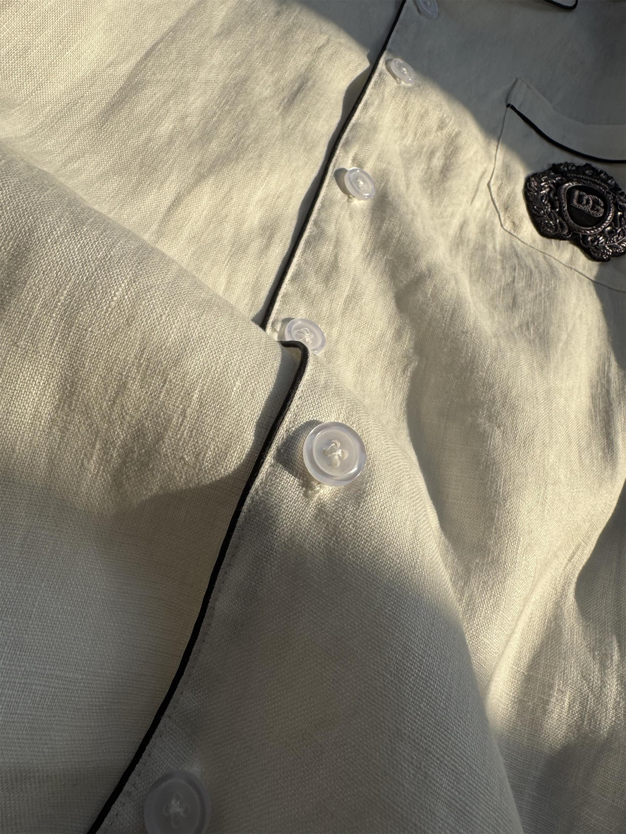 NIGO Bottega Veneta Men's Summer Solid Color Embroidered Matchstick Print Single Button Short Sleeve Shirt #nigo77111
