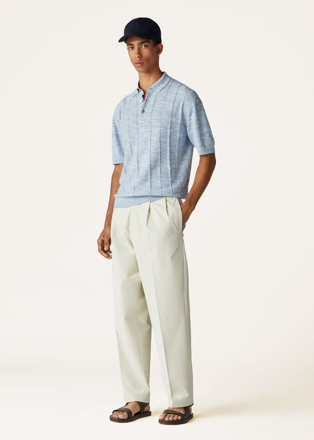 NIGO Loro Piana Men's Summer Tori Linen Silk Casual Solid Color Knit Lapel Short Sleeve Polo Shirt Ngvp #nigo1773