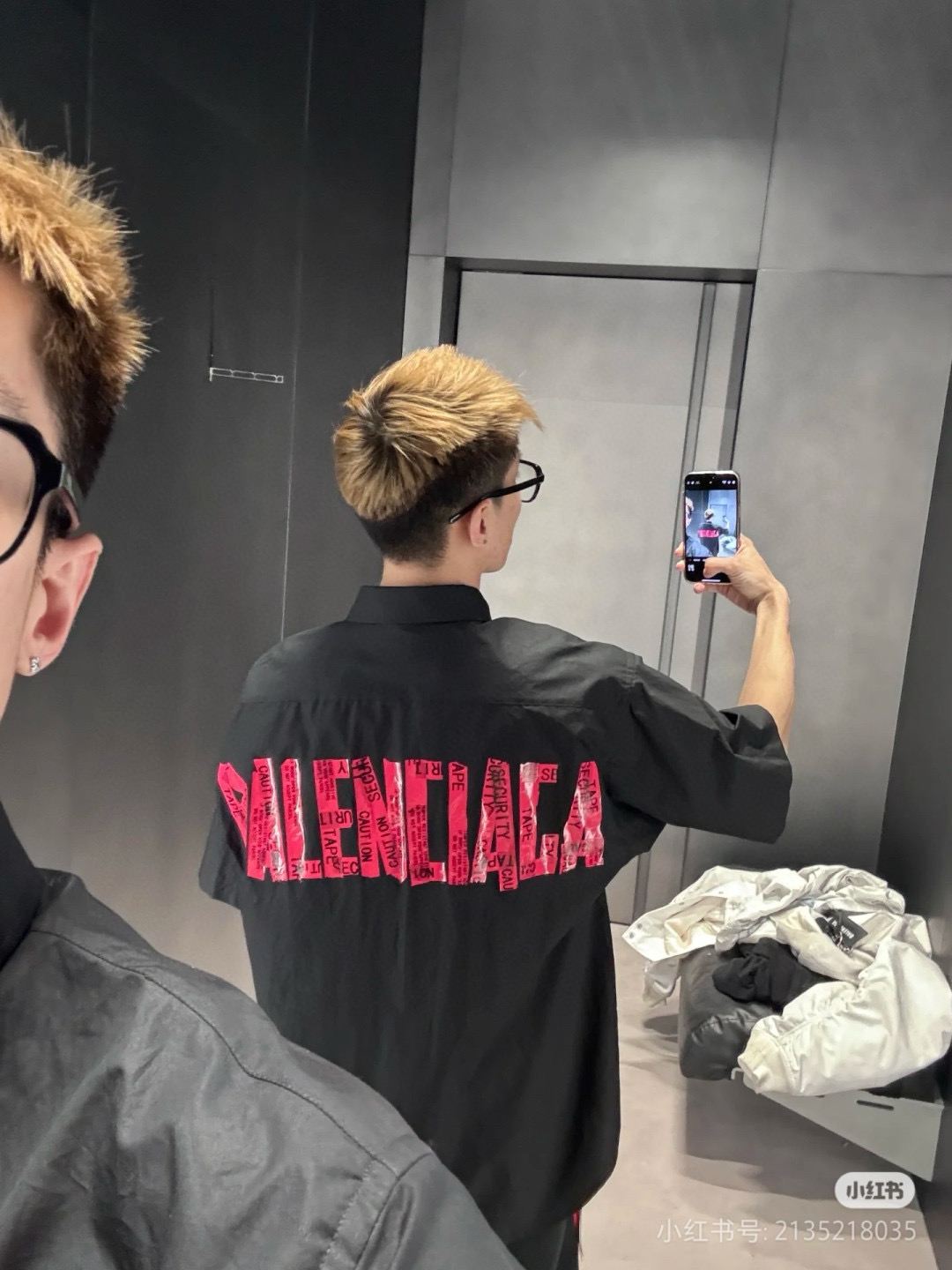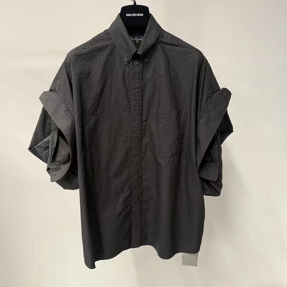 NIGO Balenciaga Men's Summer Solid Color Letter Print Single Breasted Short Sleeve Shirt #nigo76361