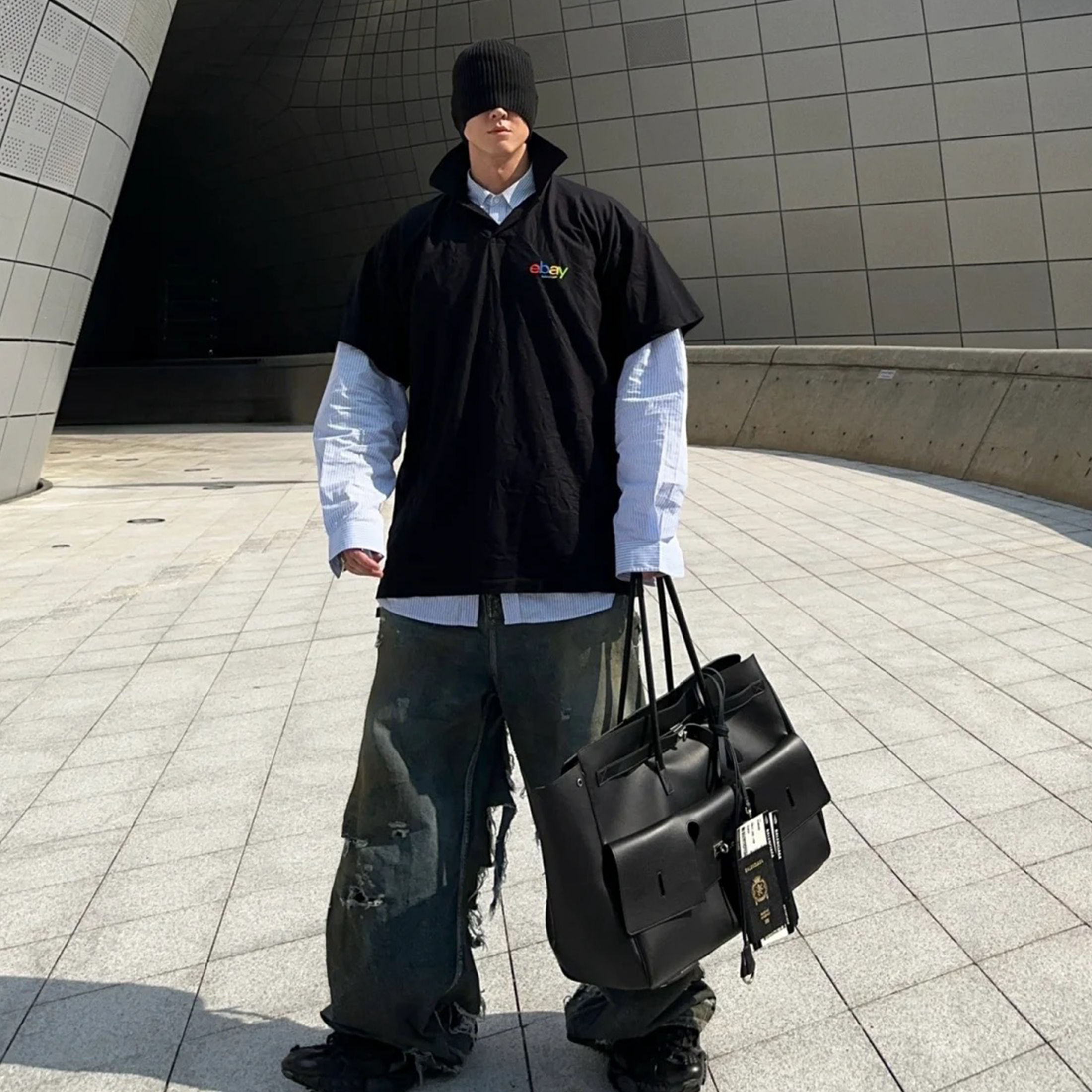 NIGO Balenciaga Men's Spring And Fall Black Plaid Lapel Single Breasted Long Sleeved Shirt #nigo74975