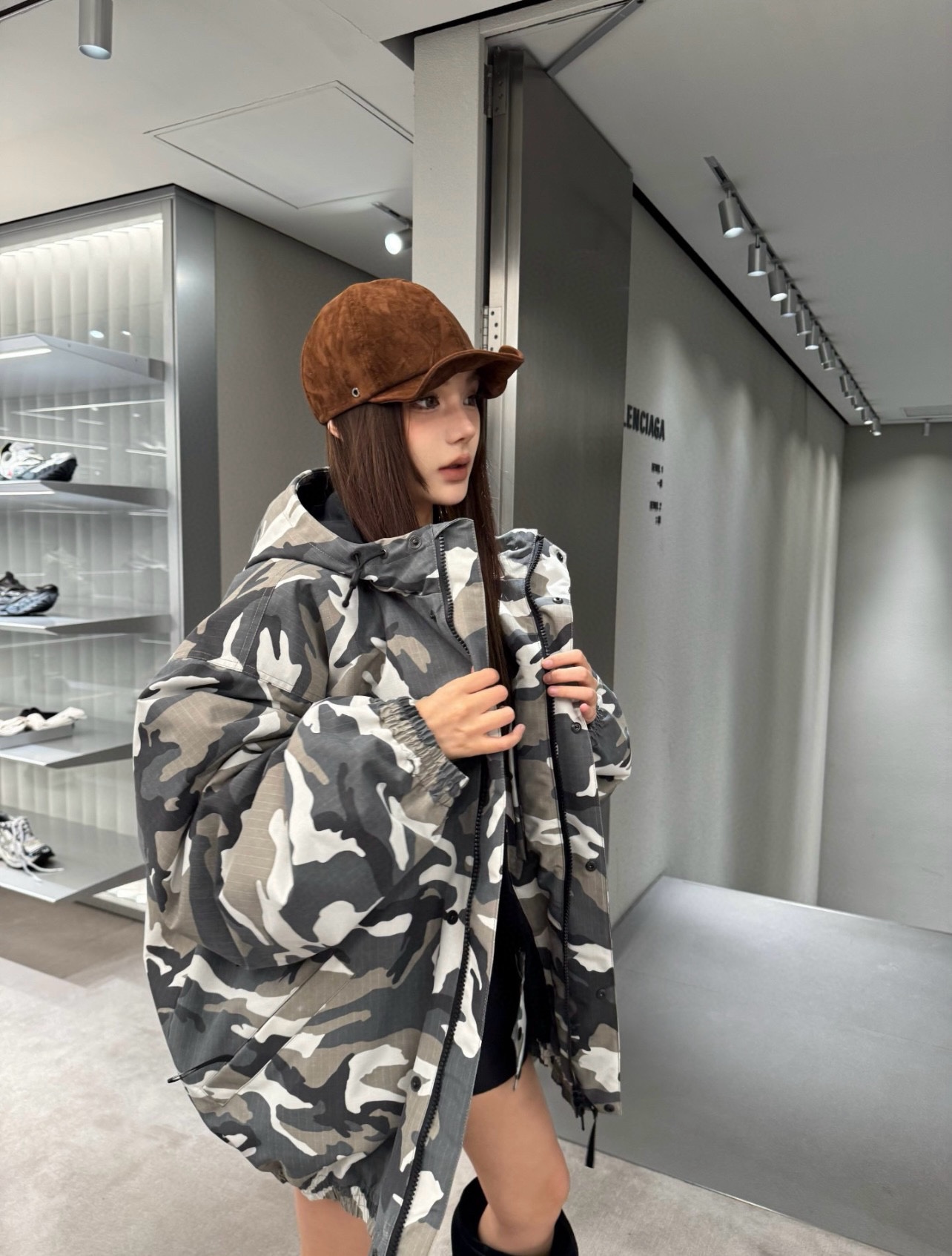 NIGO Balenciaga Men's Autumn and Winter Gray Camouflage Hooded Zipper Long Sleeve Nylon Parker Jacket Straight Ski Pants Suit Set #nigo74421