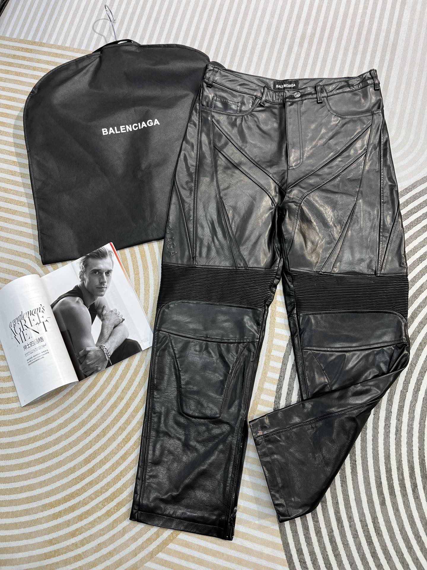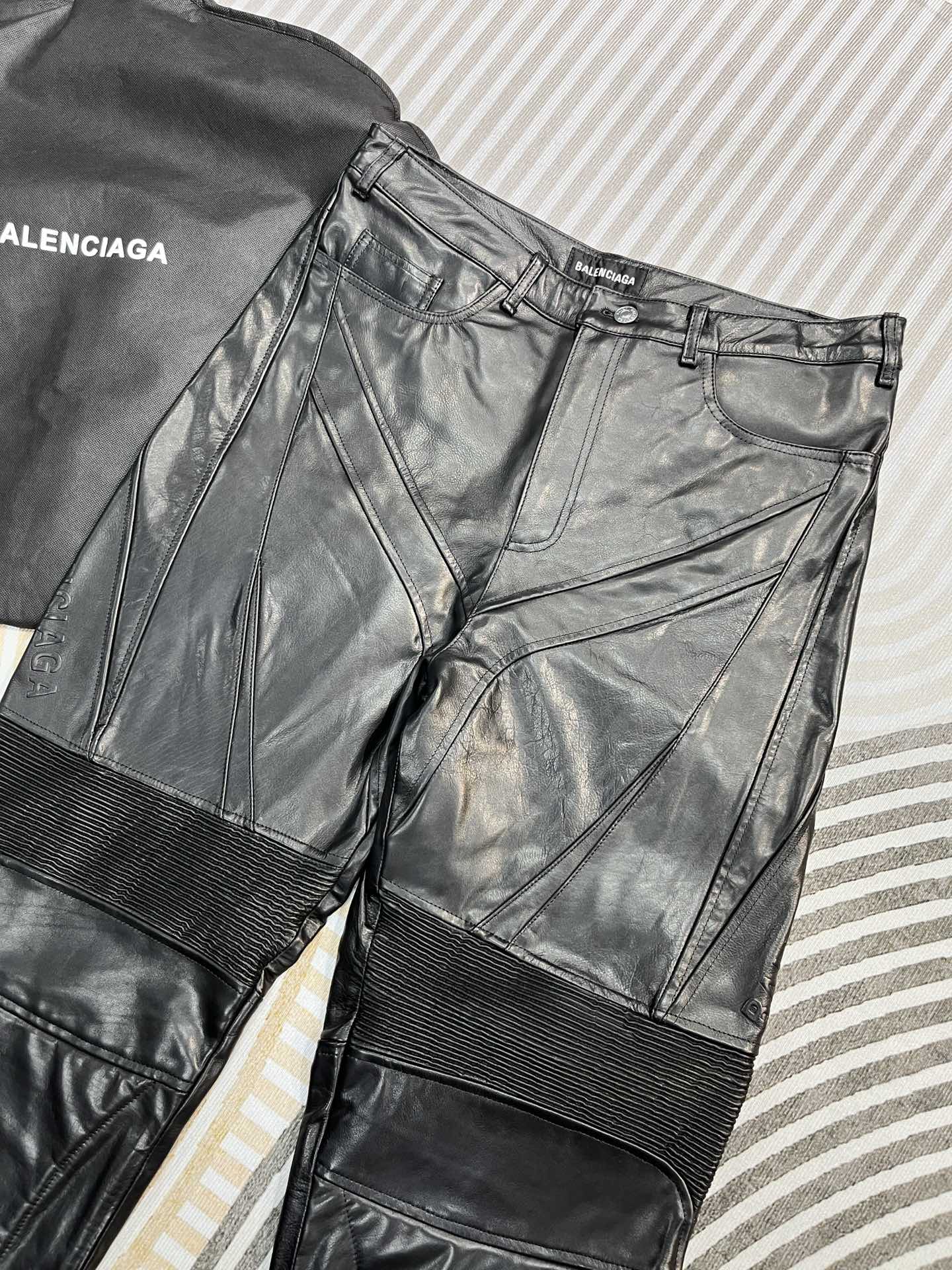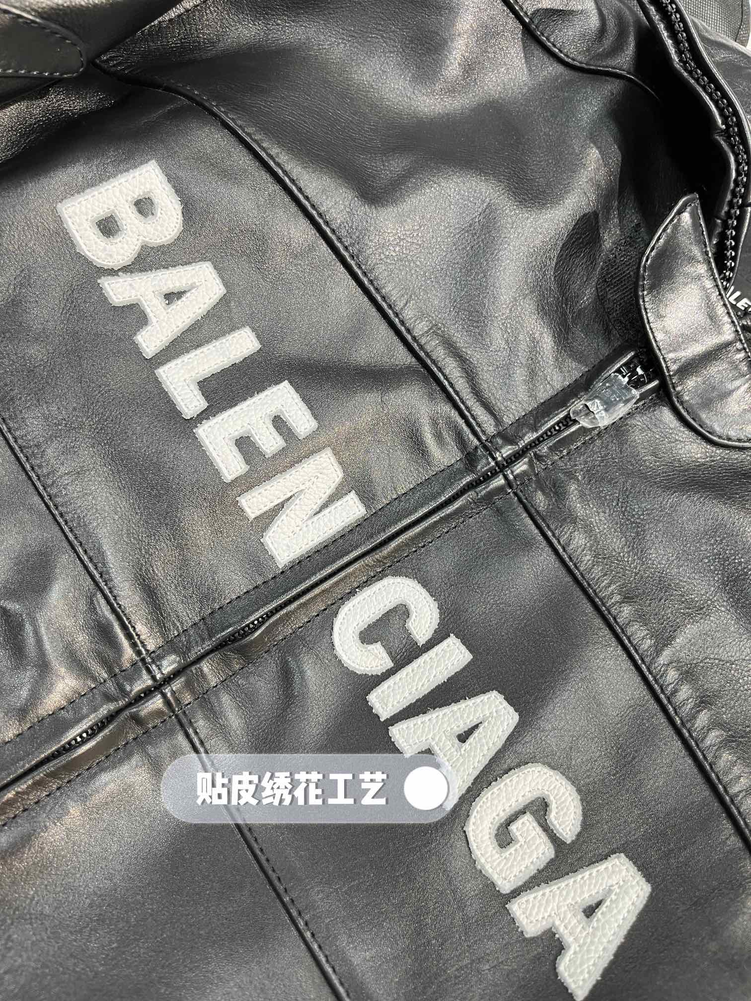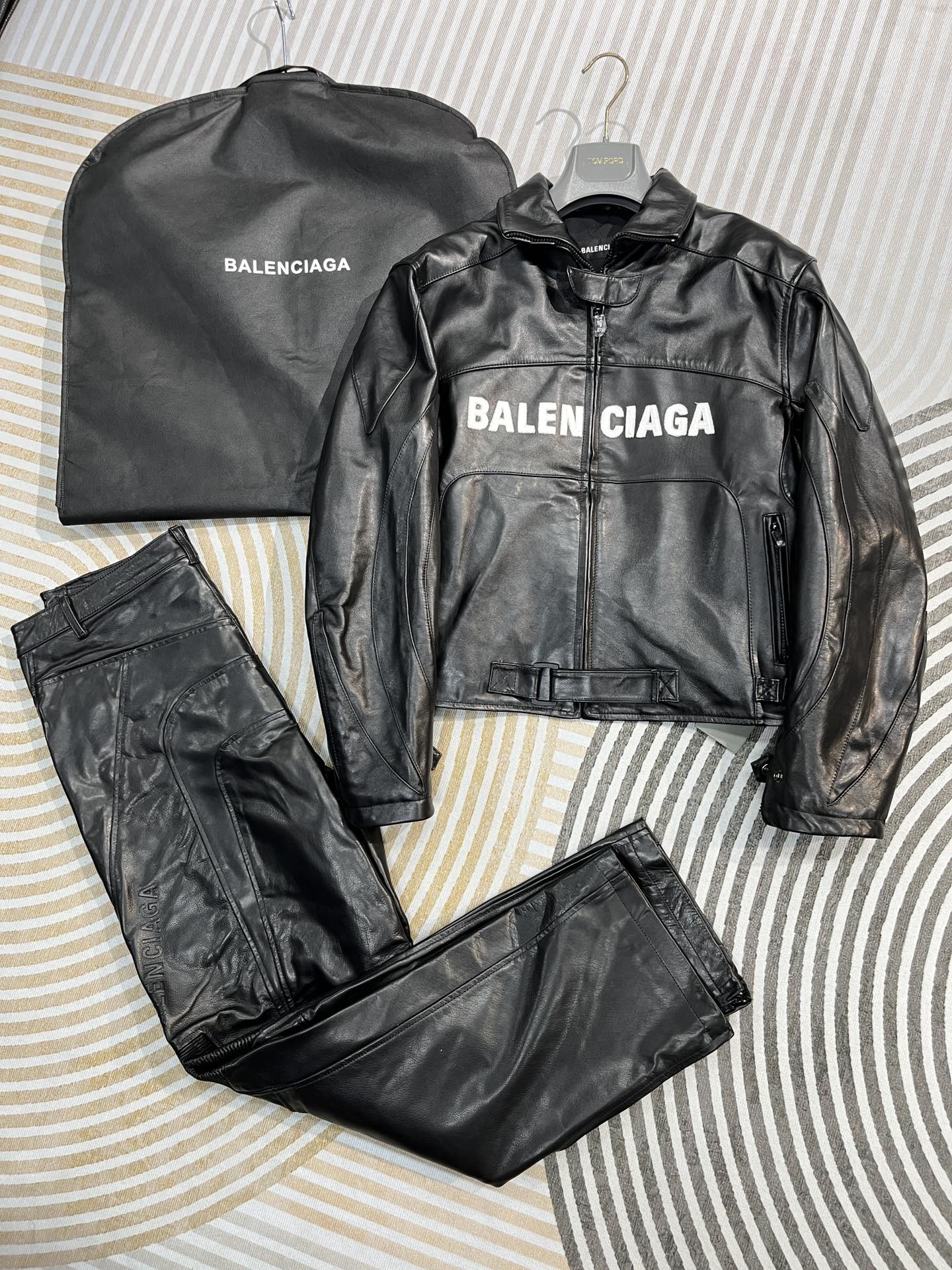 NIGO Balenciaga Men's Spring And Fall Monogrammed Black Zipper Long Sleeve Leather Biker Jacket Leather Pants Suit Set #nigo73678