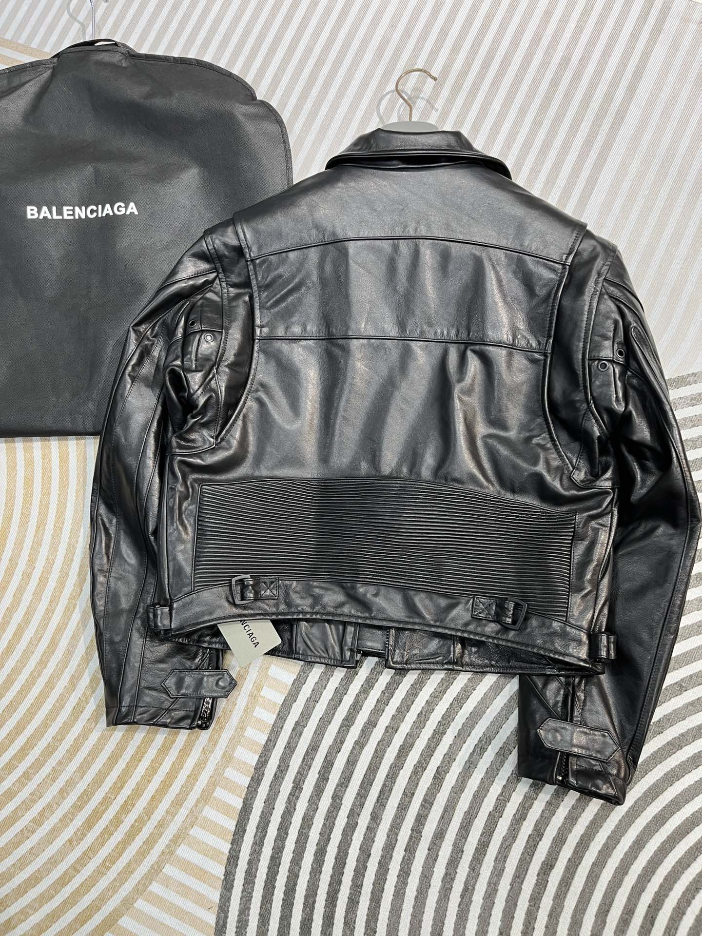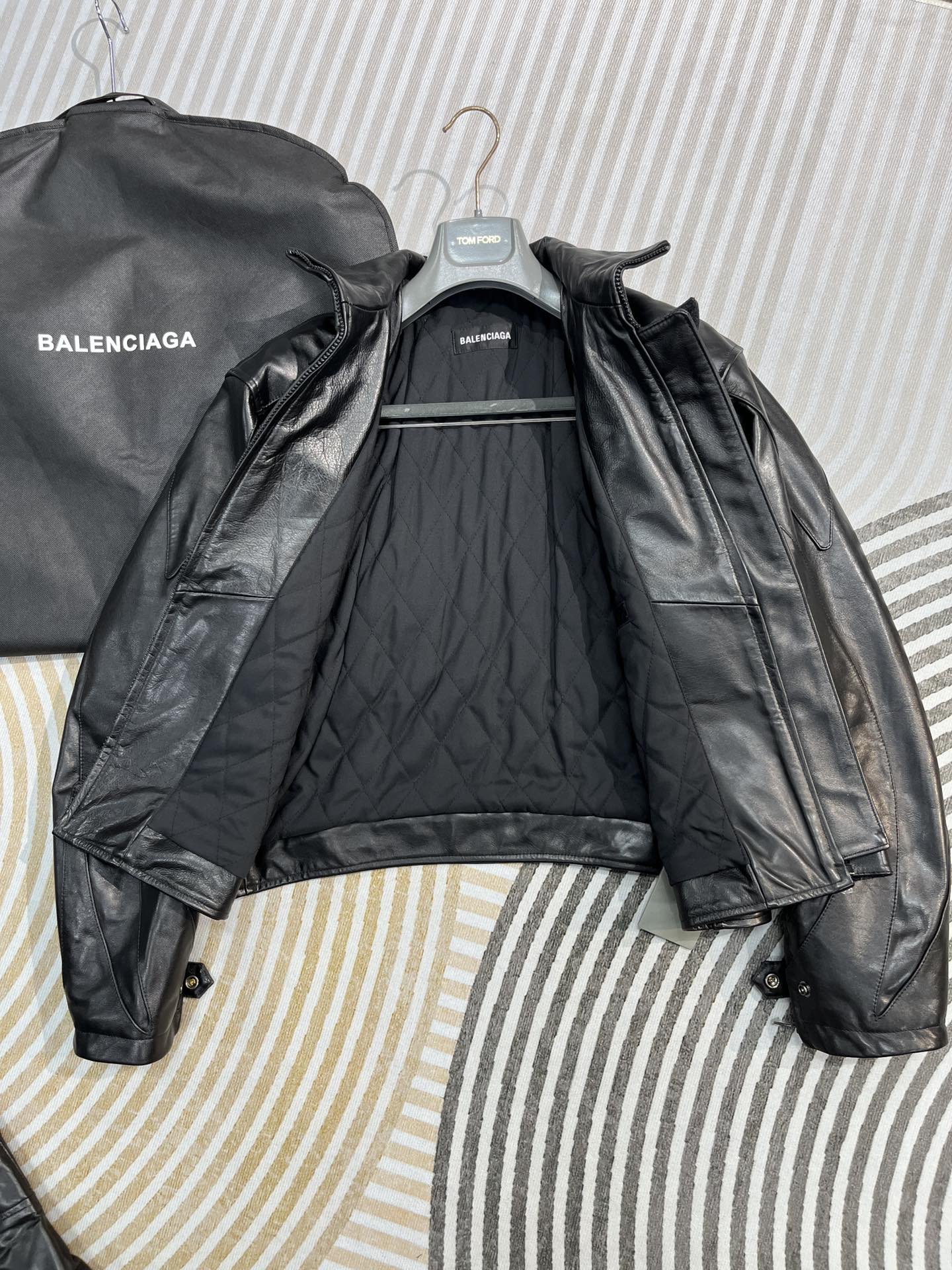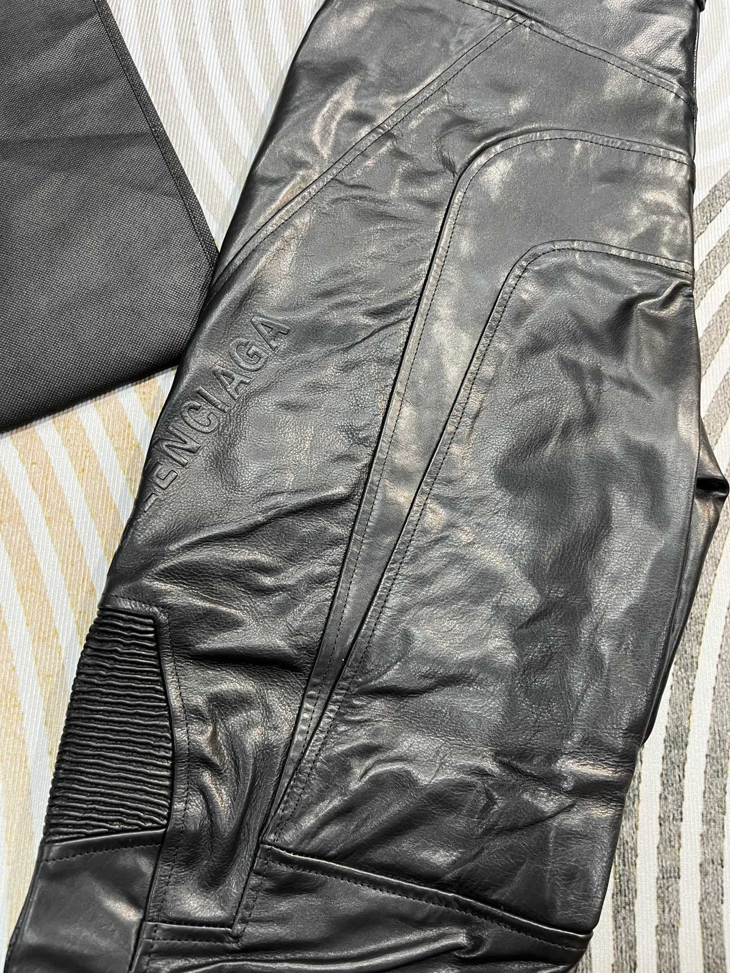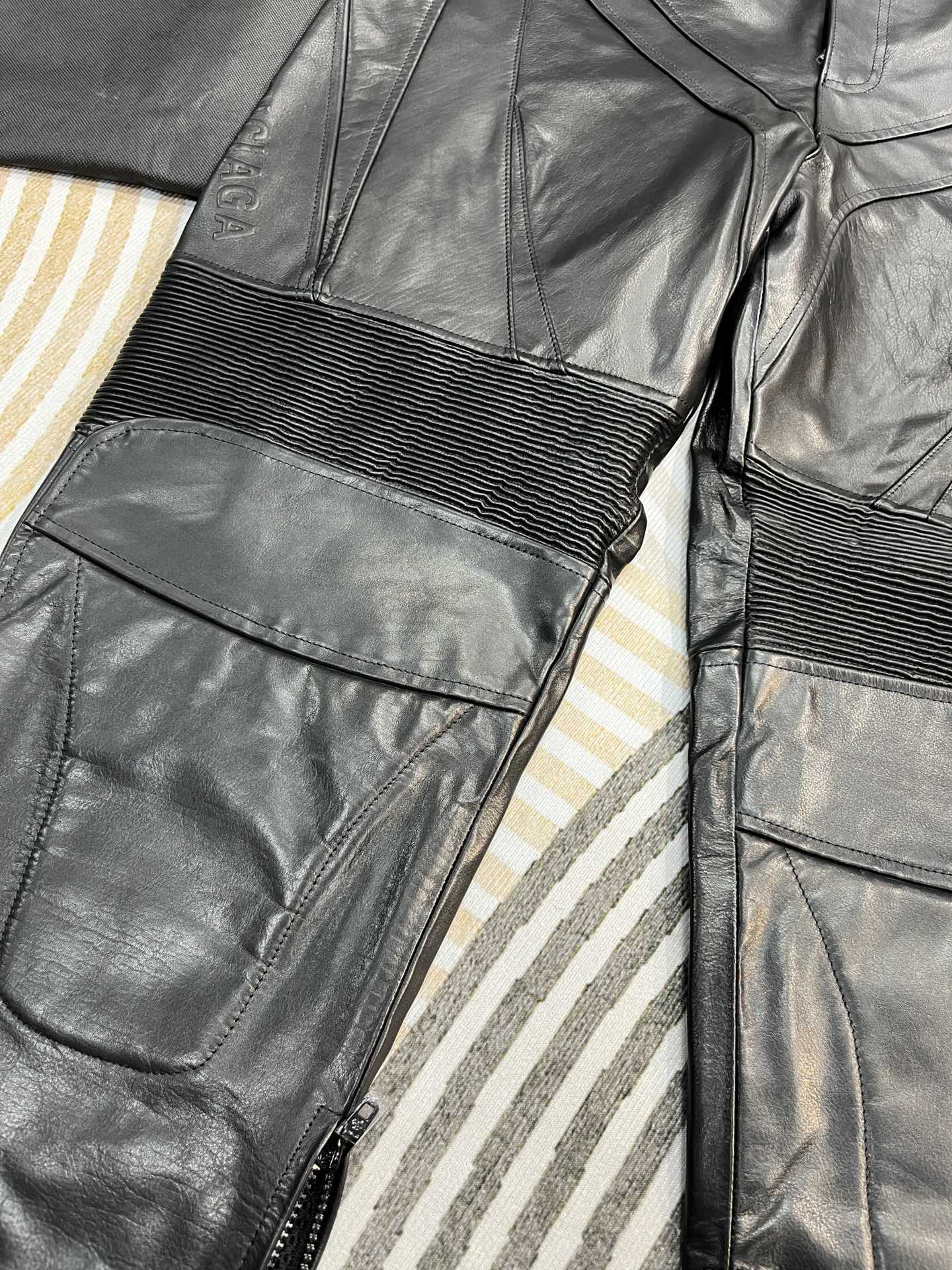 NIGO Balenciaga Men's Spring And Fall Monogrammed Black Zipper Long Sleeve Leather Biker Jacket Leather Pants Suit Set #nigo73678