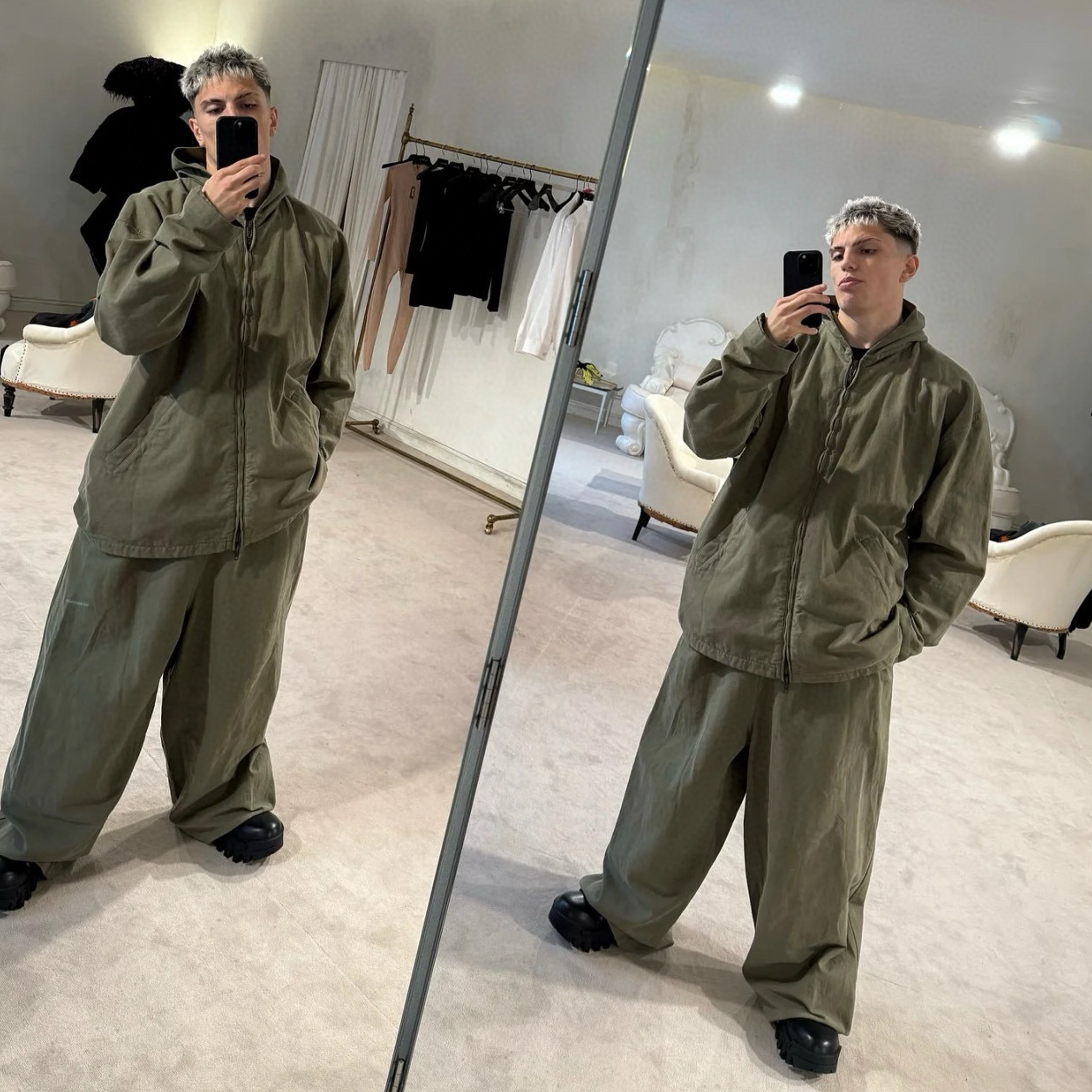 NIGO Balenciaga Men's Spring And Fall Retro Green Loose Hooded Jacket High Street Trend Straight Casual Baggy Pants Suit Set Ngvp #nigo9821