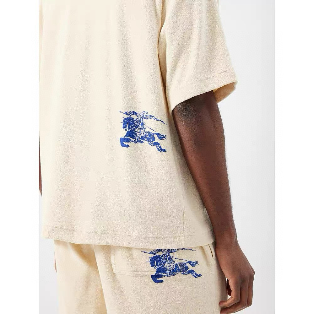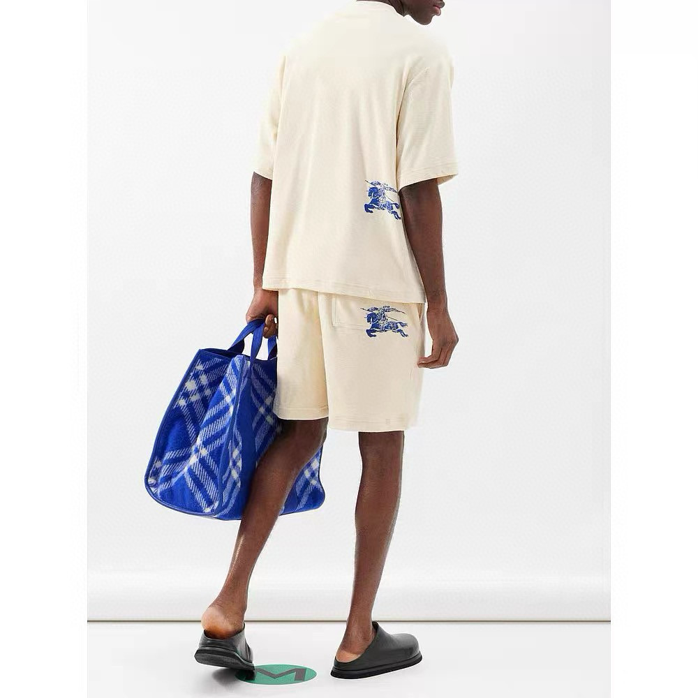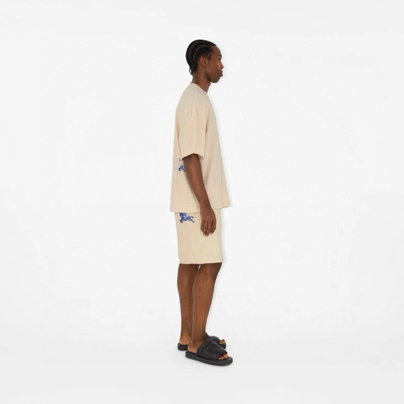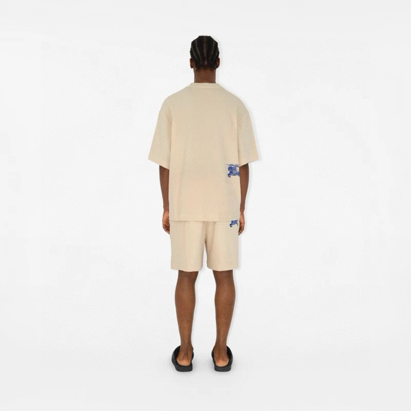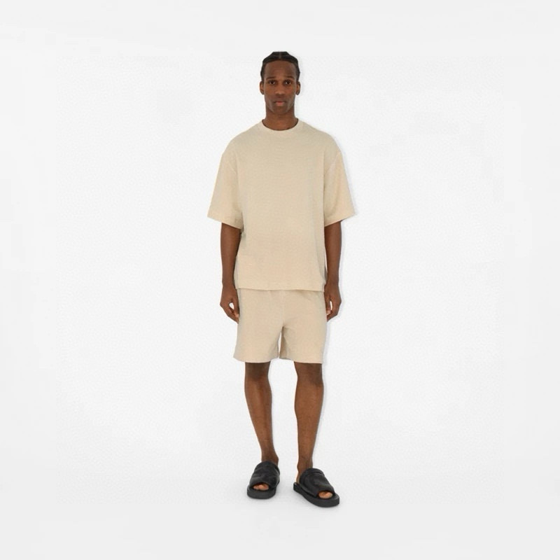 NIGO Burberry Men's Summer Beige Round Neck Cotton Short Sleeve T-Shirt Tie Elasticated Waist Shorts Suit Set #nigo99136