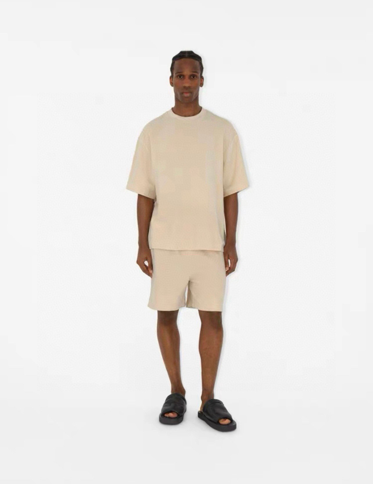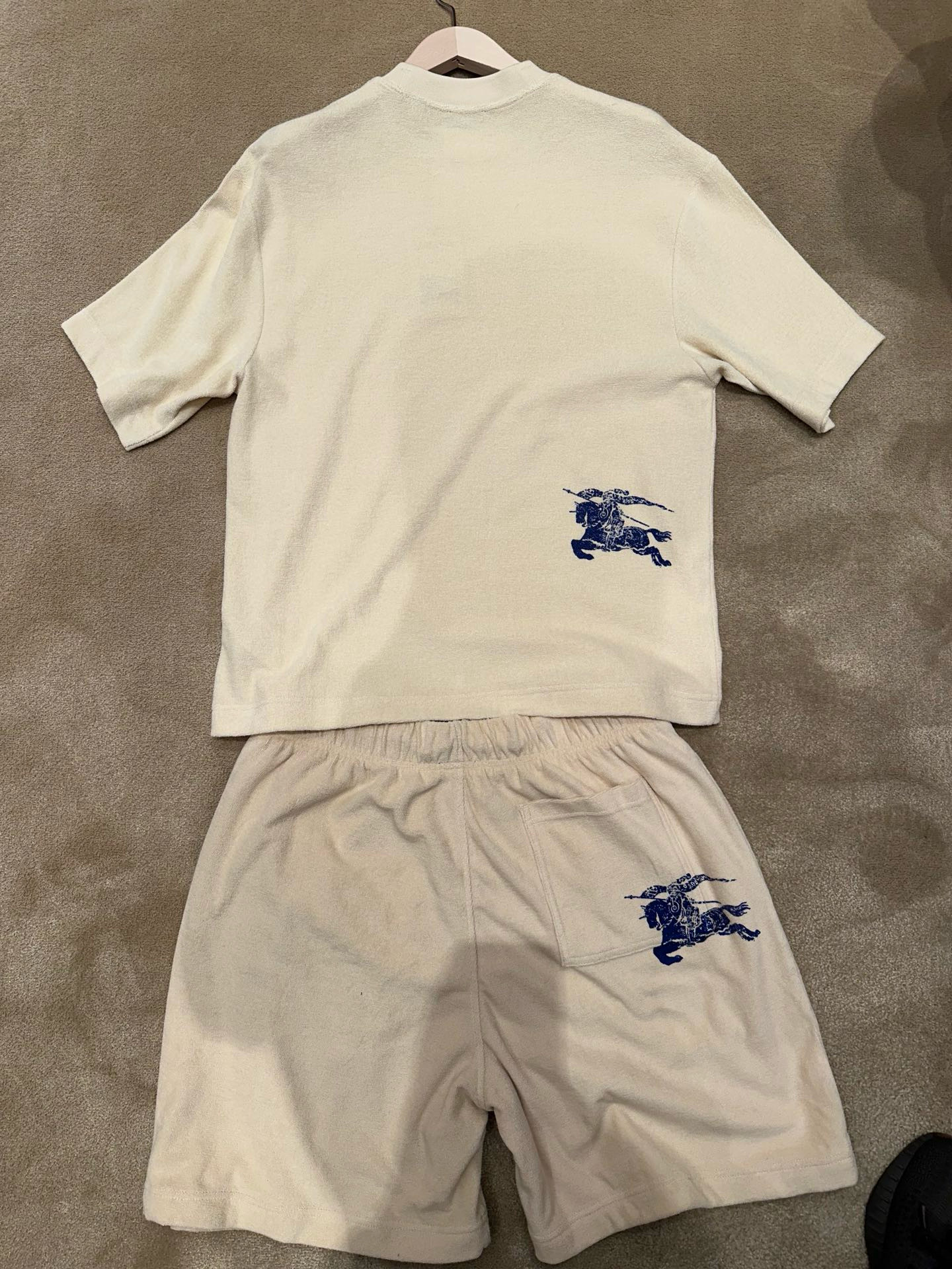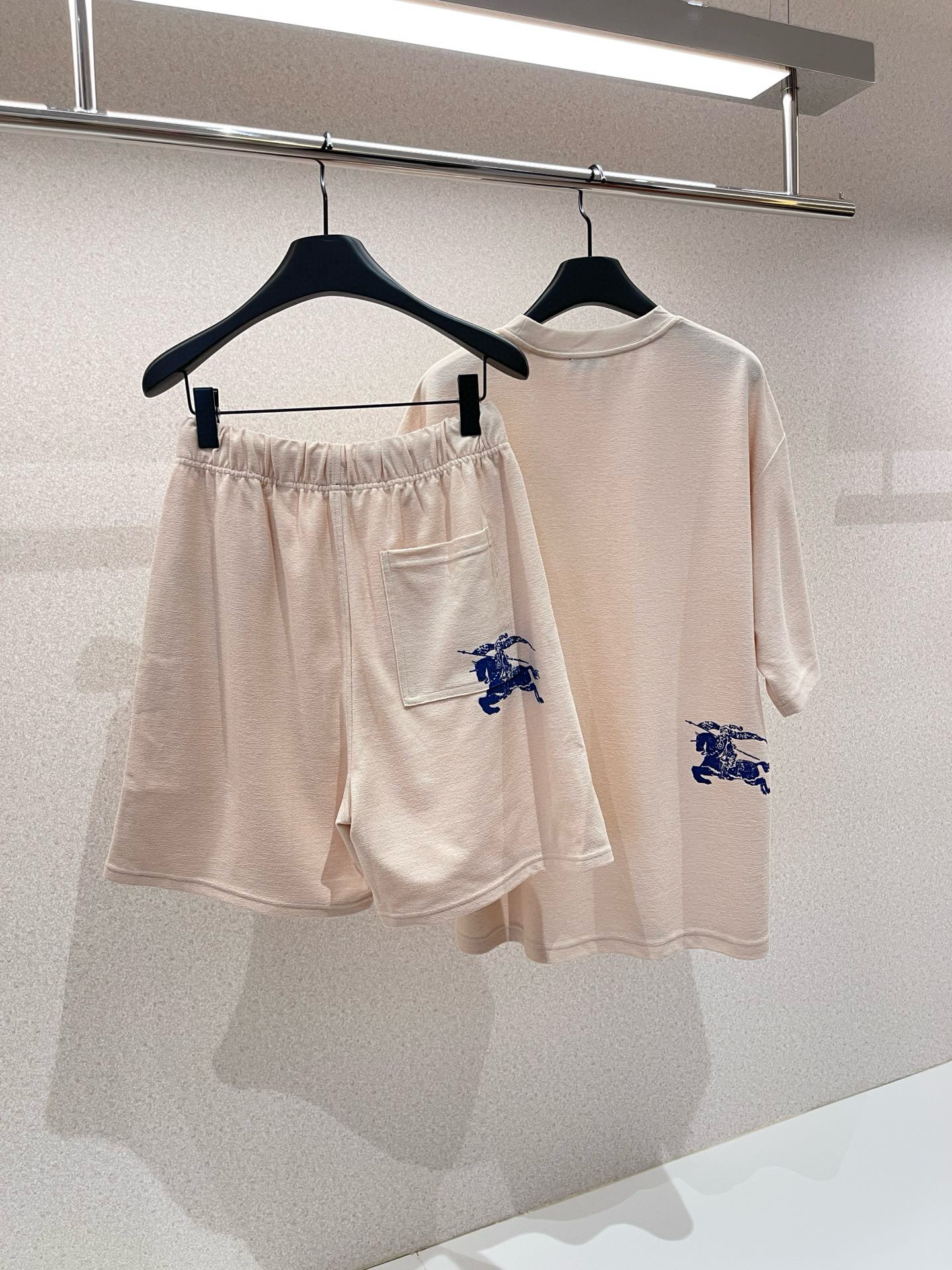NIGO Burberry Men's Summer Beige Round Neck Cotton Short Sleeve T-Shirt Tie Elasticated Waist Shorts Suit Set #nigo99136