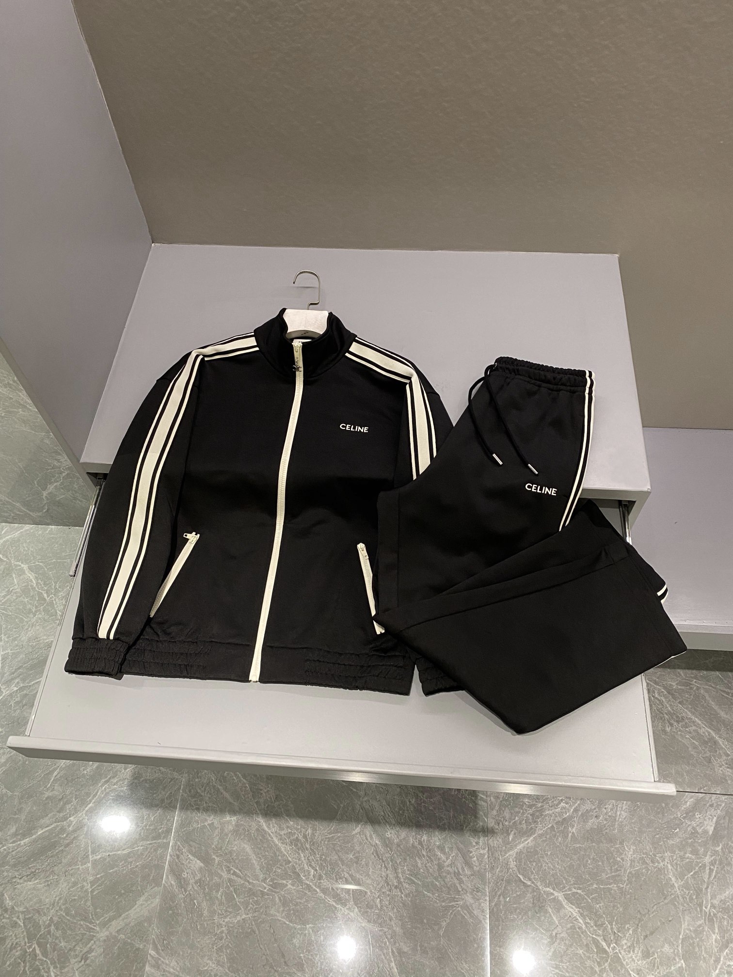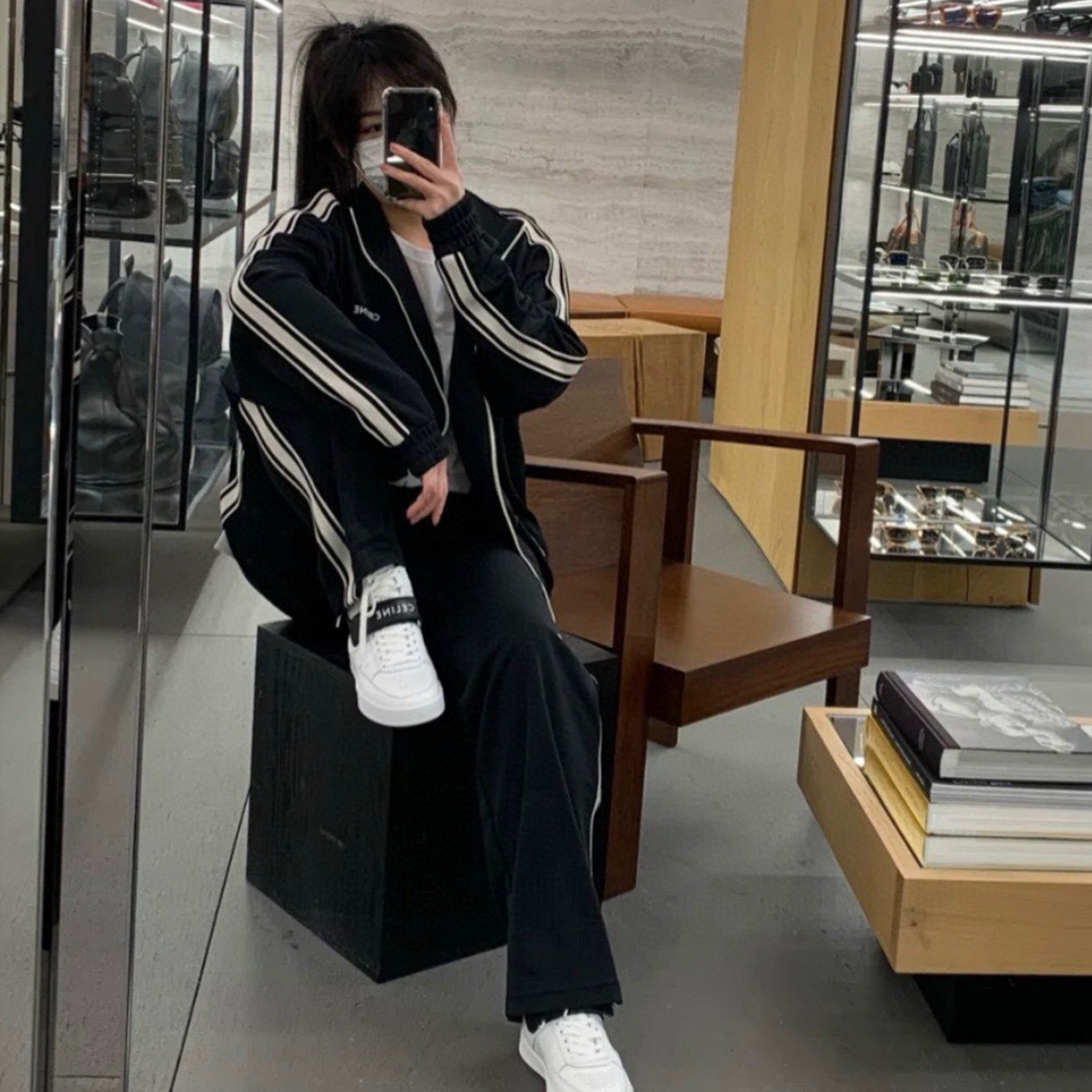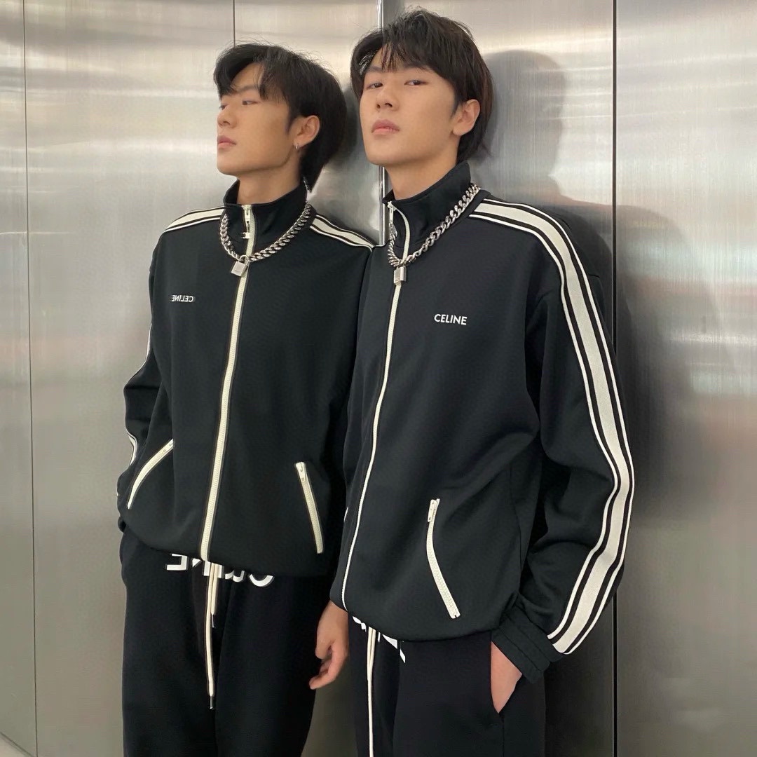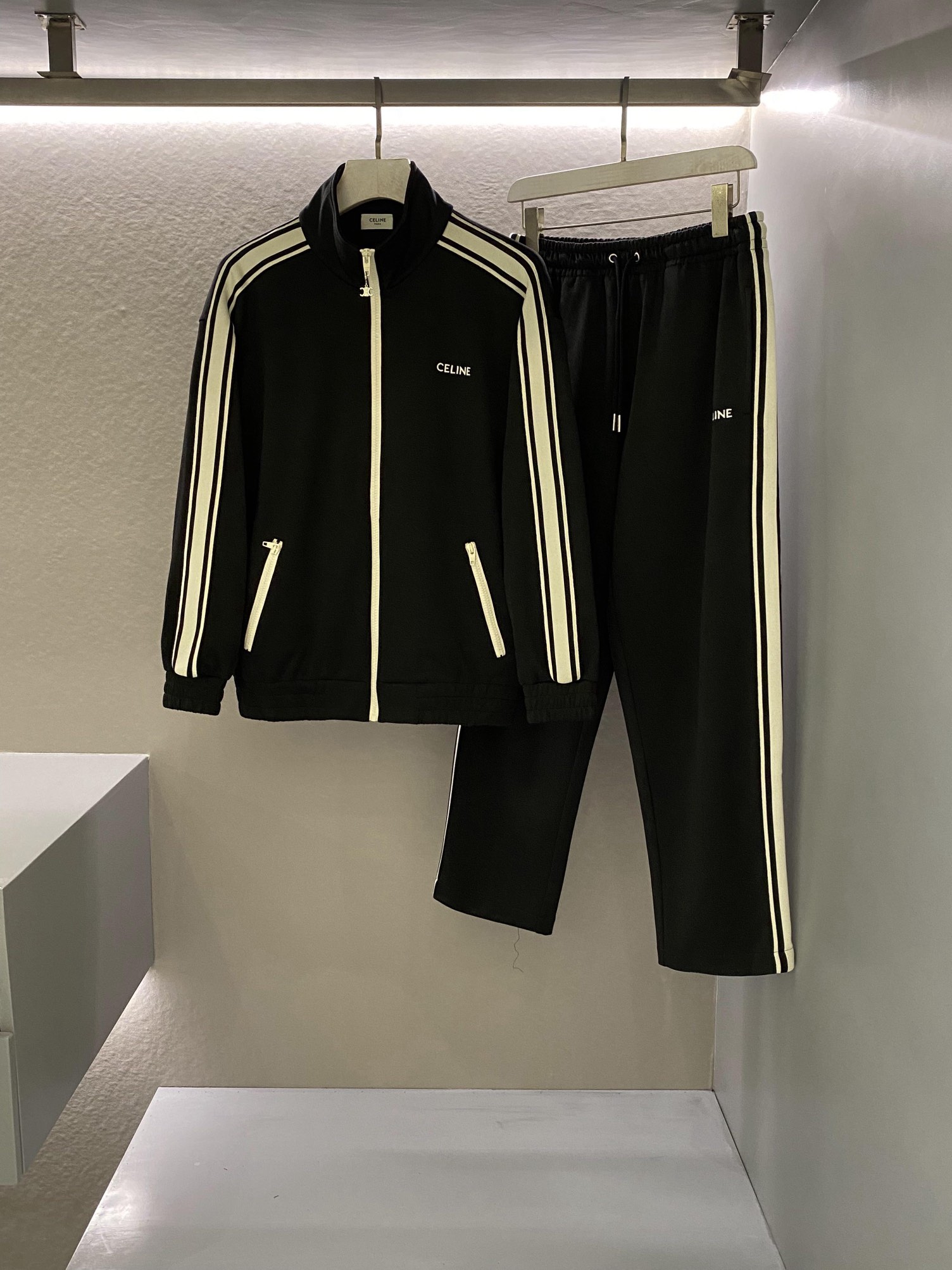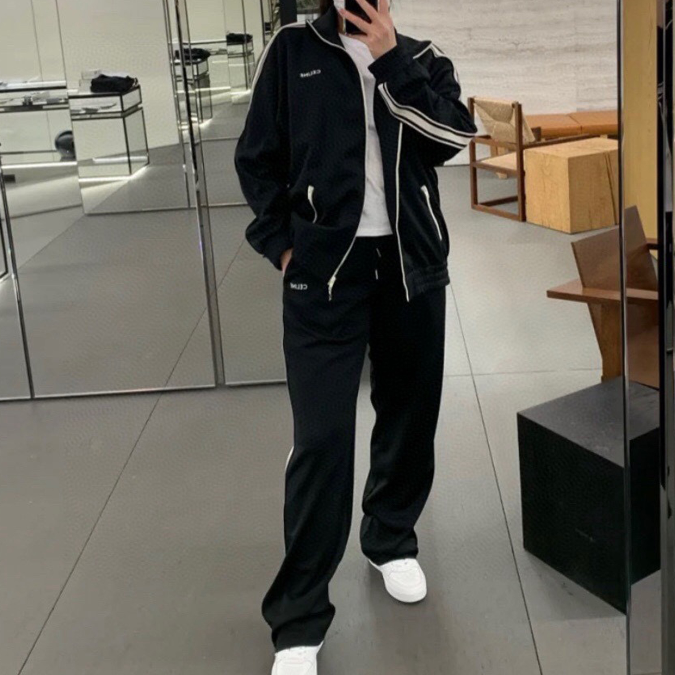 NIGO Celine Women's And Men's Spring/summer New Product Logo Sports And Casual Set Striped Letter Black Casual Loose Jacket Long Wide Leg Casual Pants #nigo99577