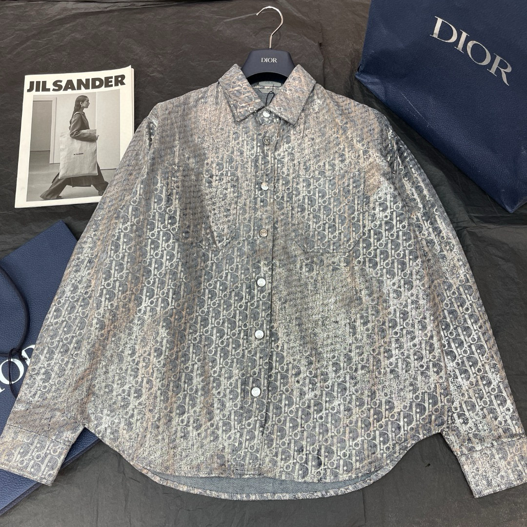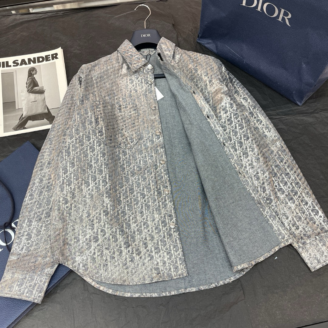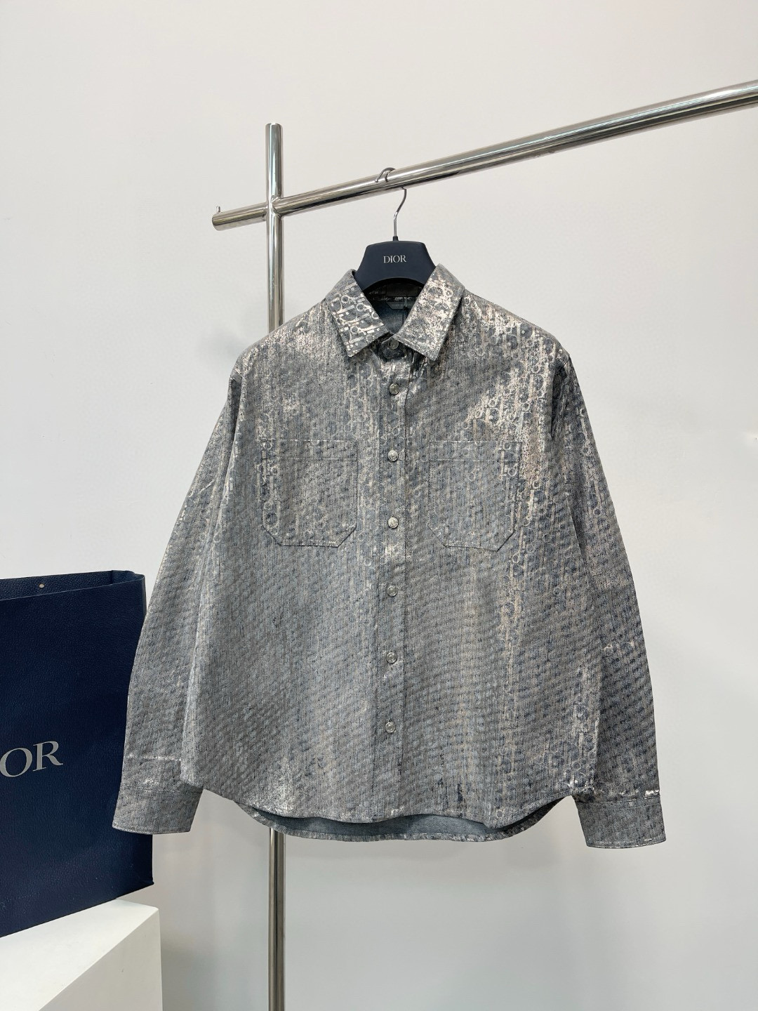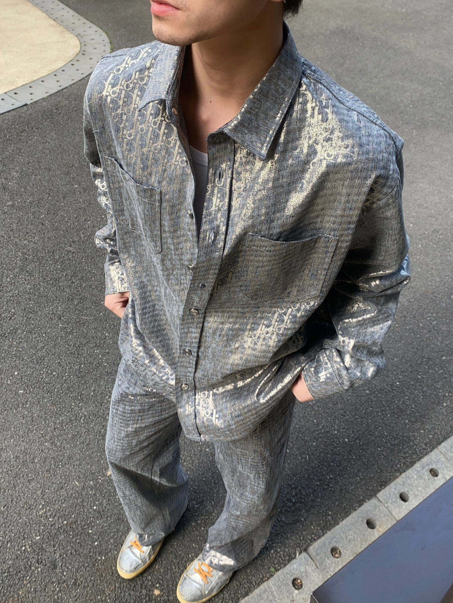 NIGO Dior Men's Autumn And Winter Grey Logo Full Print Old Single-Breasted Long-Sleeved Shirt Pants Suit Set #nigo97715