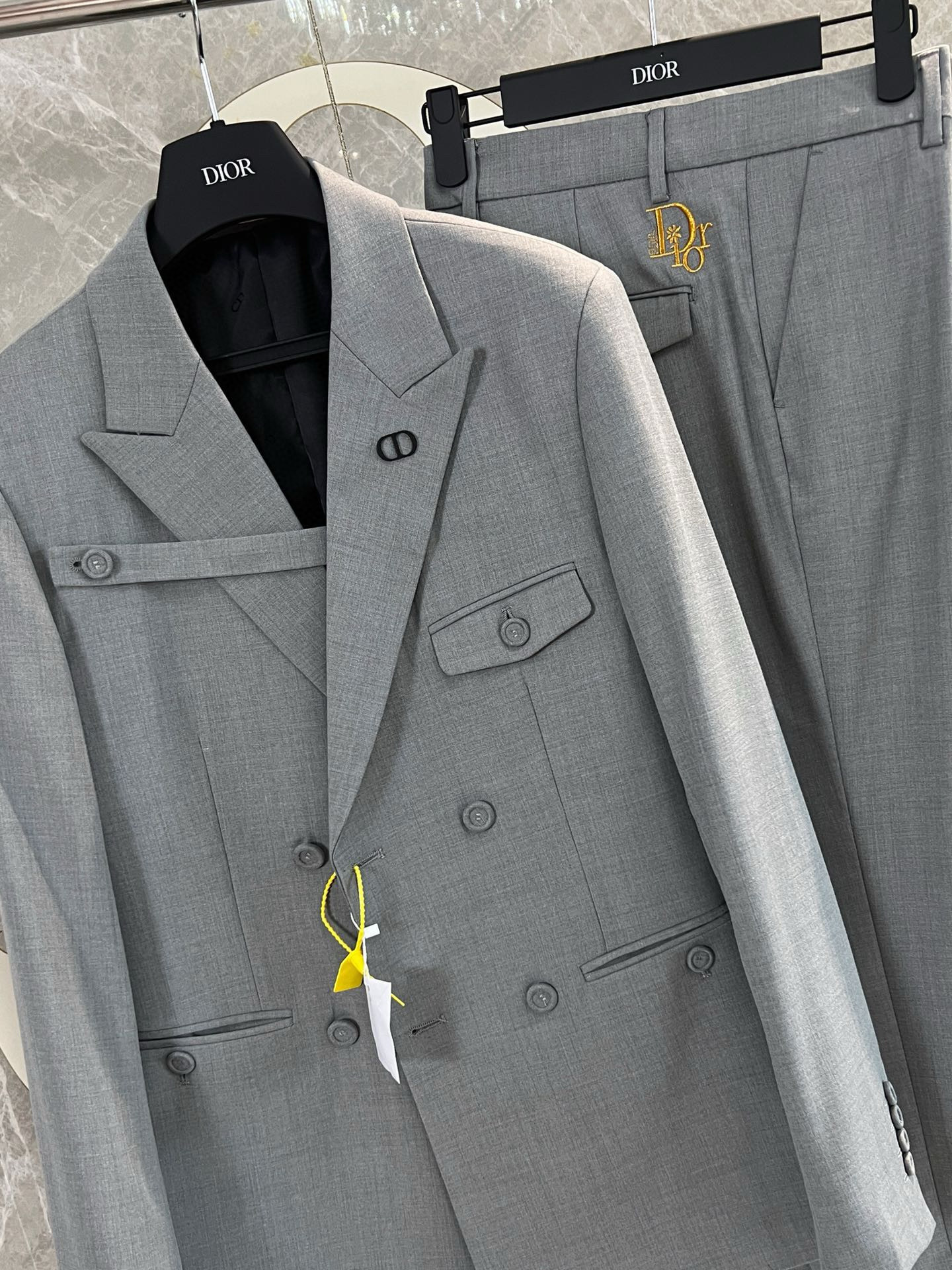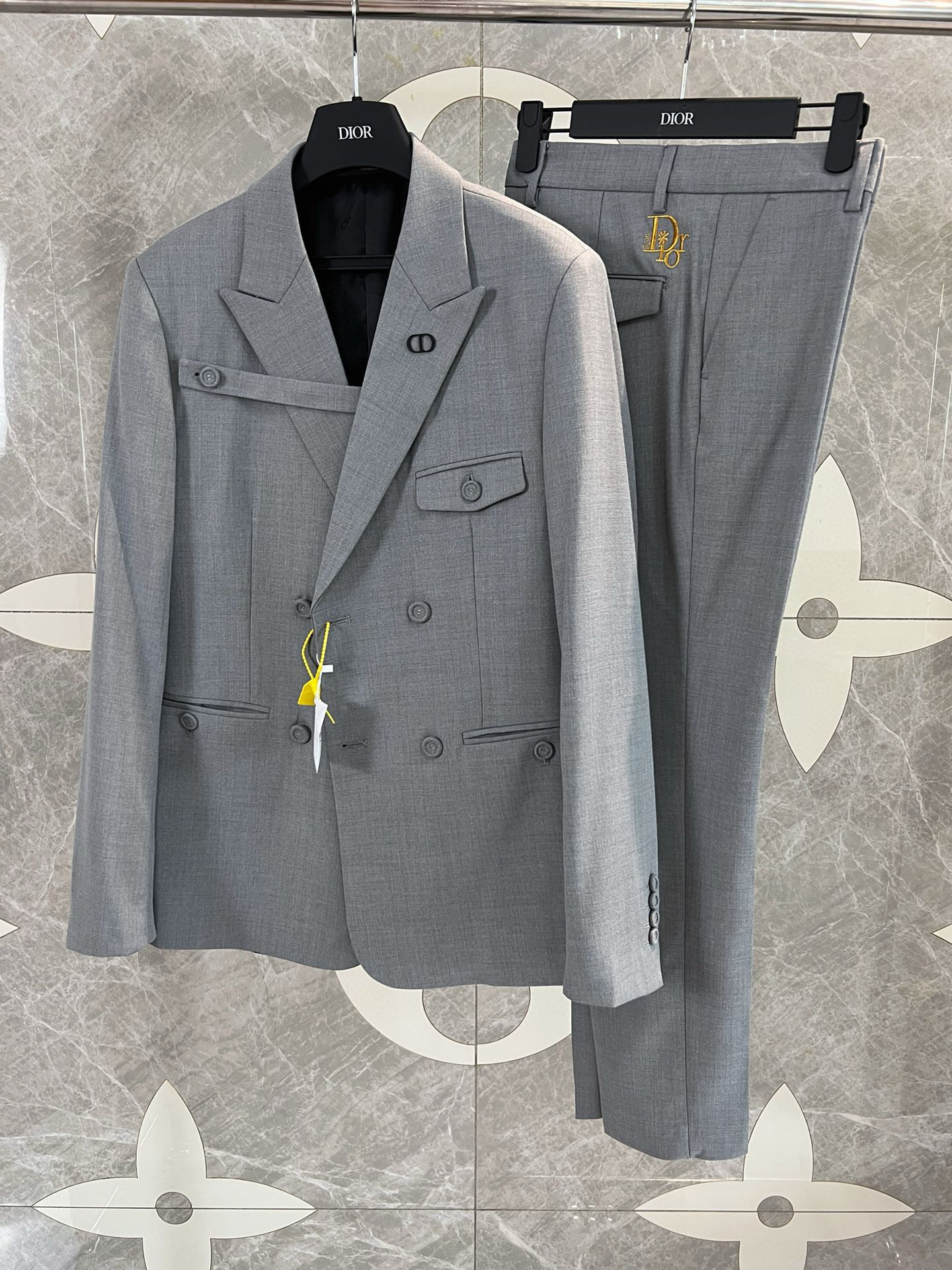 NIGO Dior Men's Spring And Autumn Gray Embroidered Wool Blend Suit Jacket With Cropped Pants Set #nigo71279