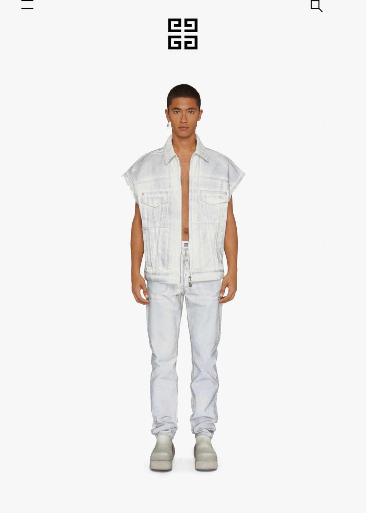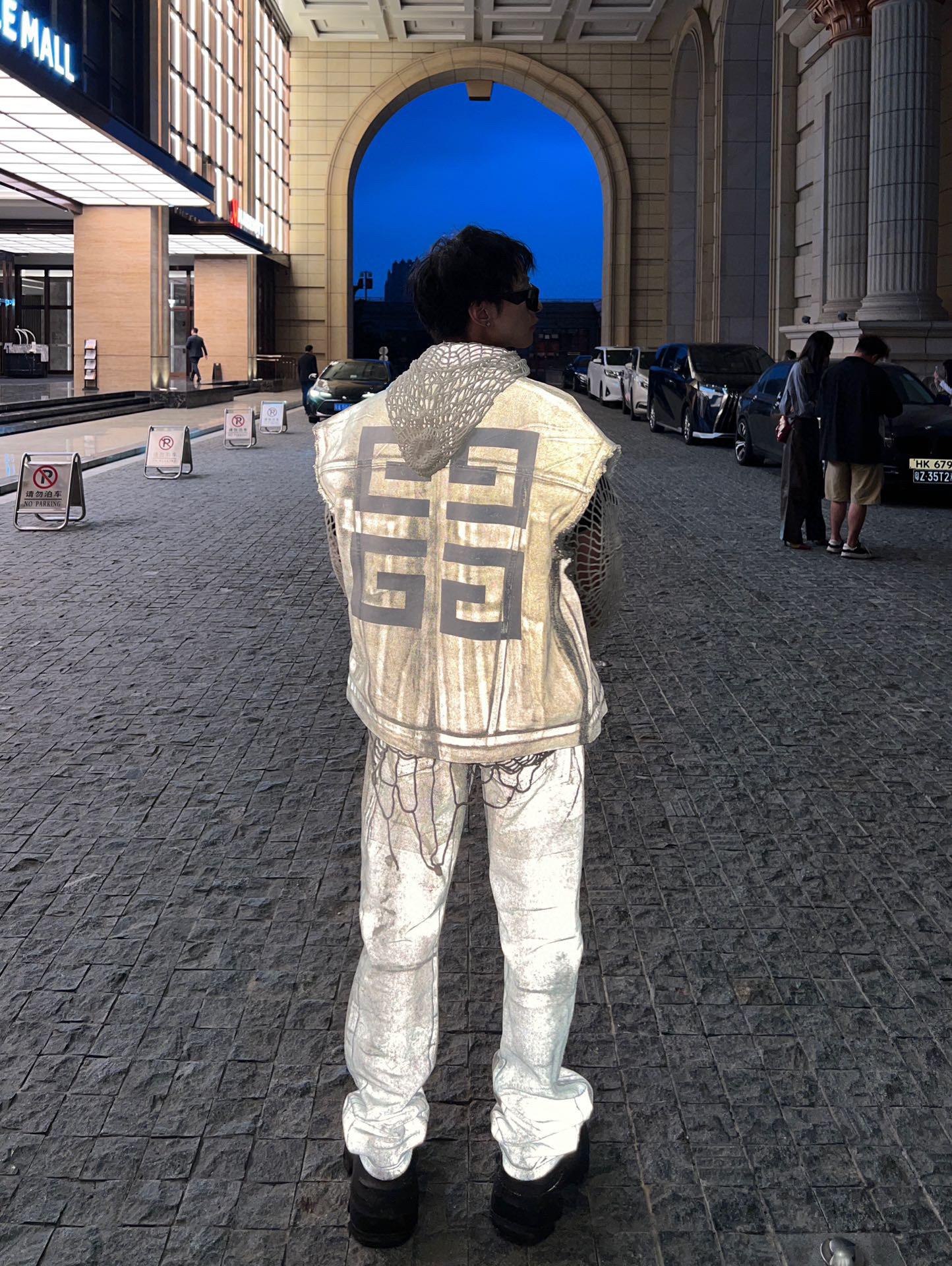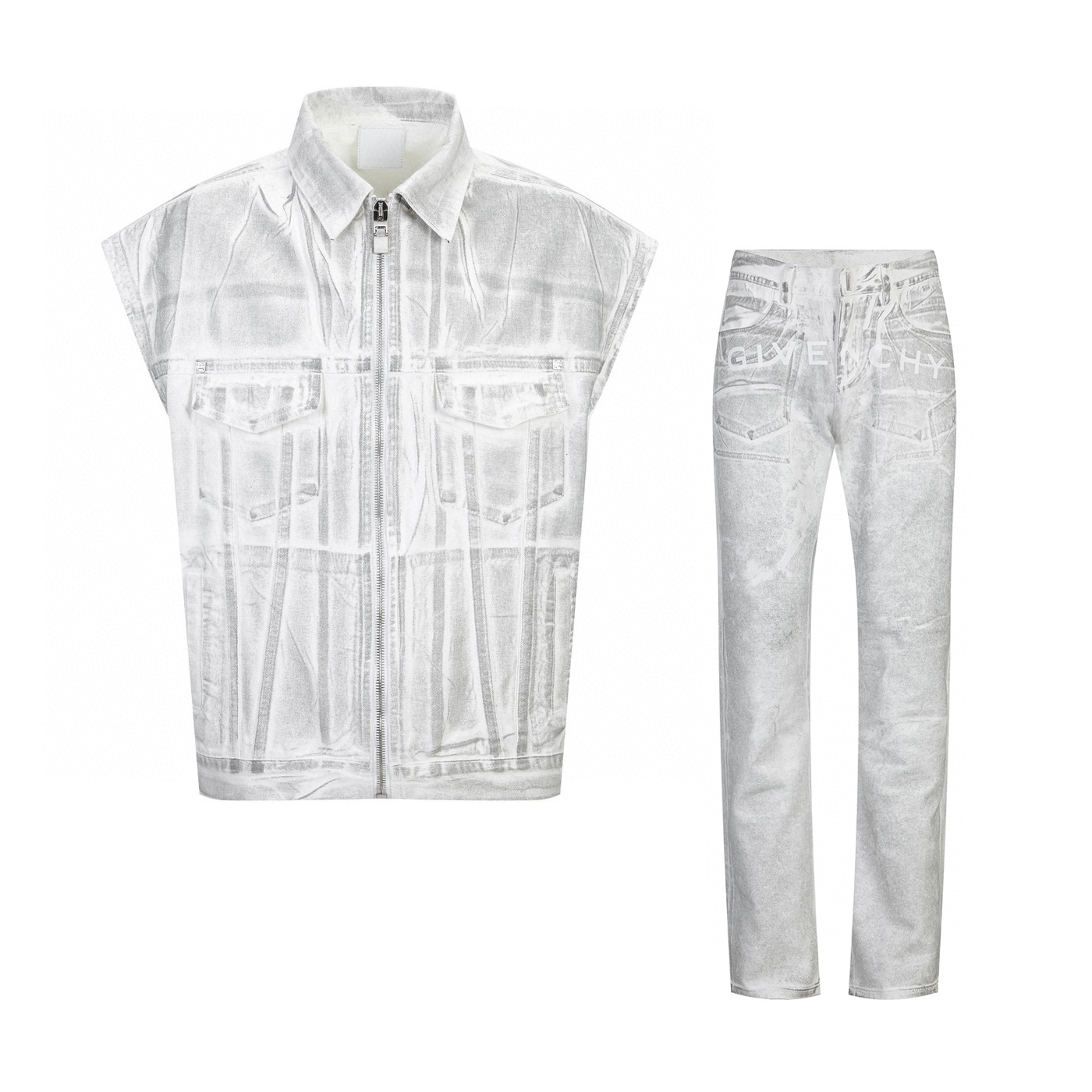 NIGO Givenchy Men's Summer Aged Reflective White Denim Vest Jeans Pants Set Suit #nigo97234