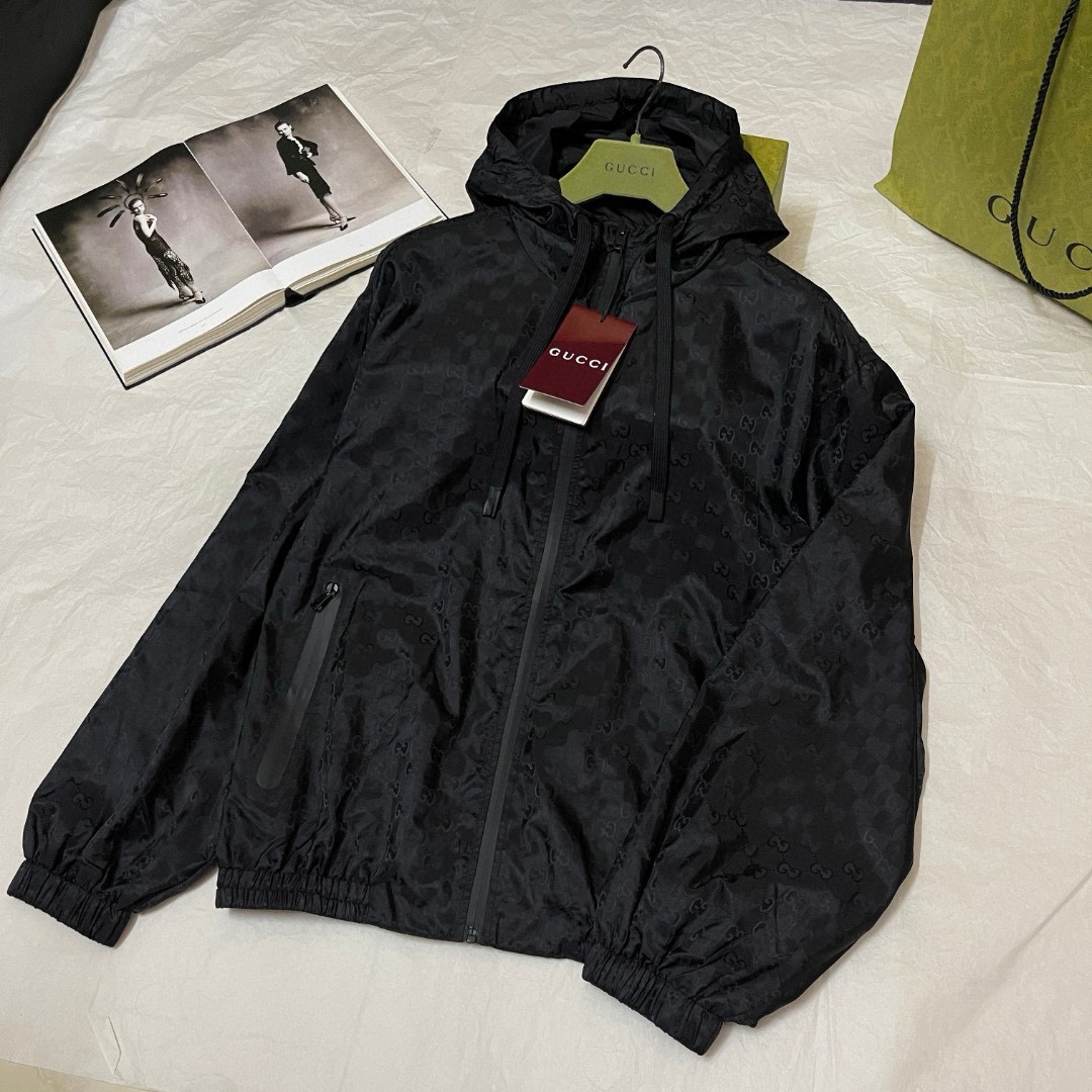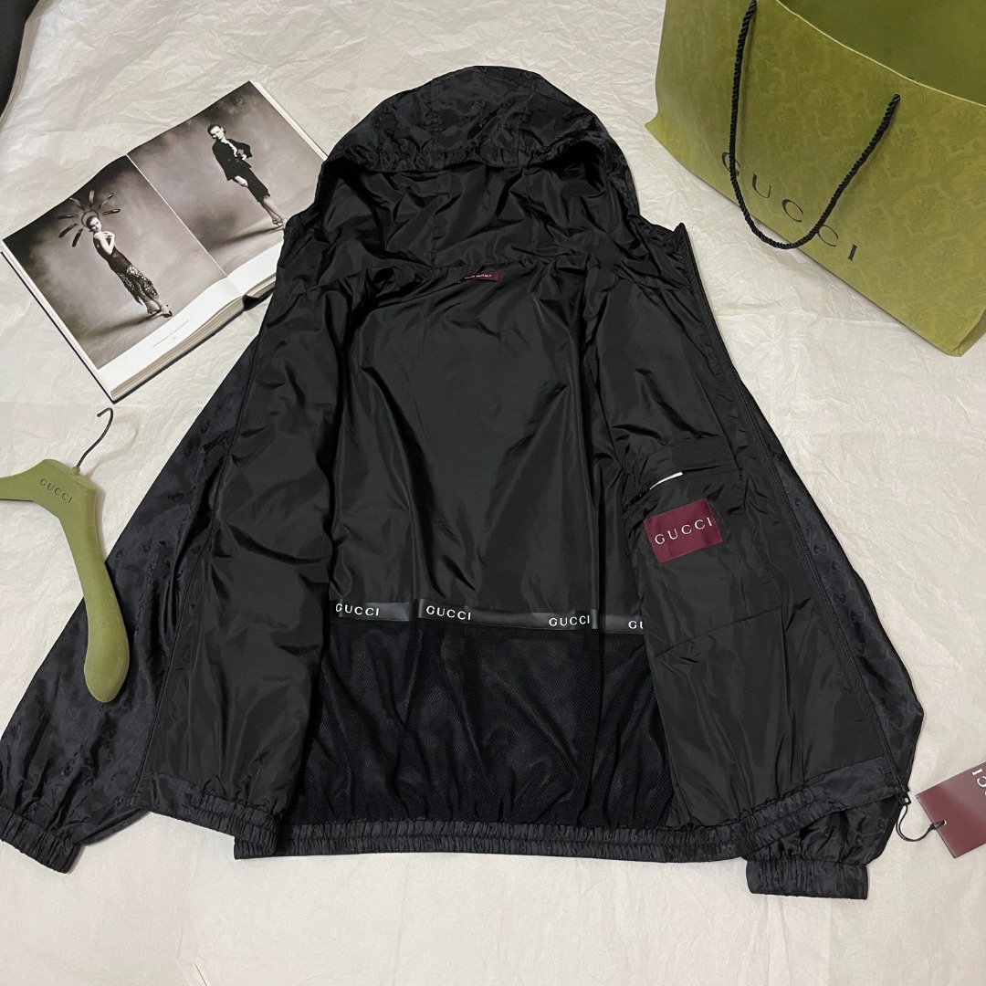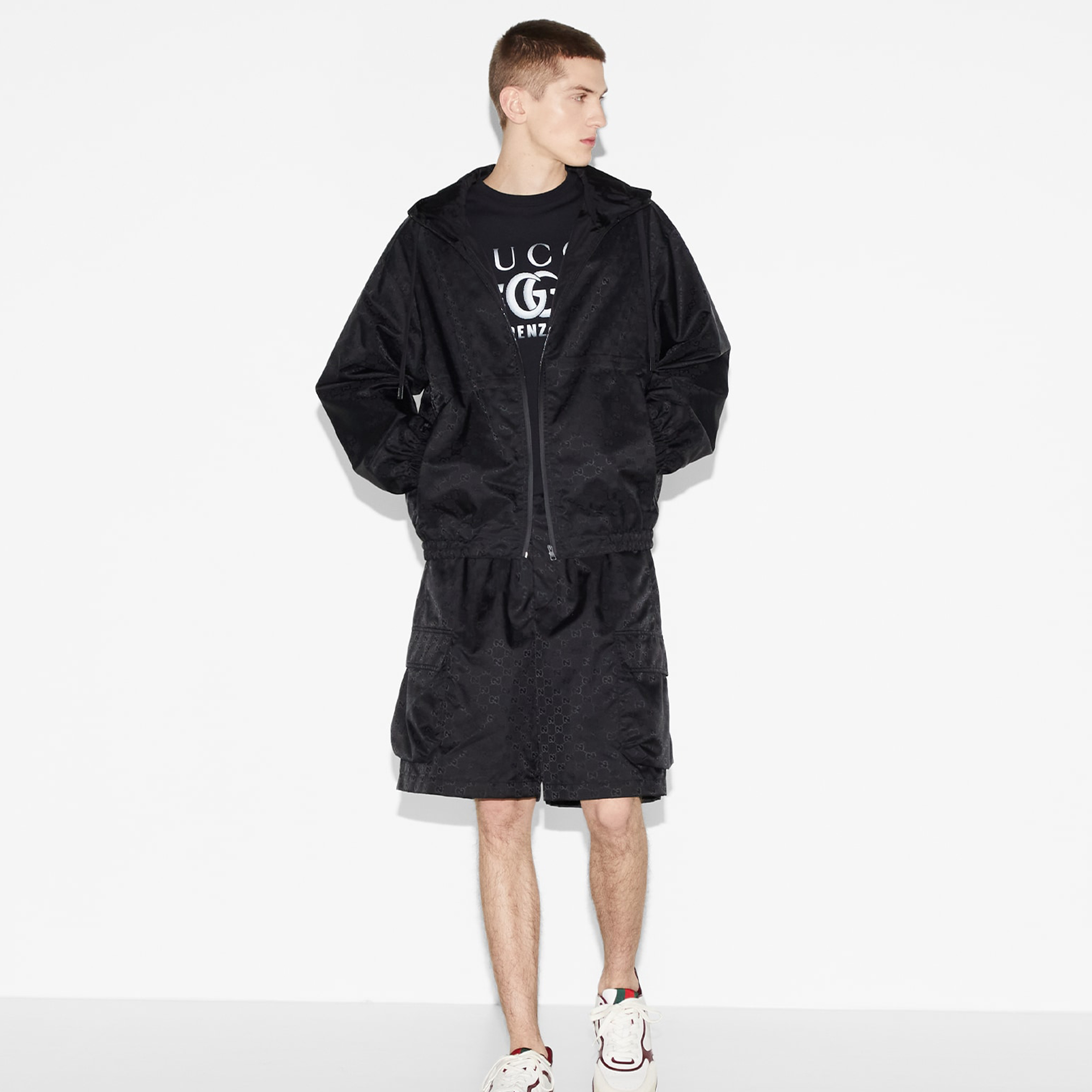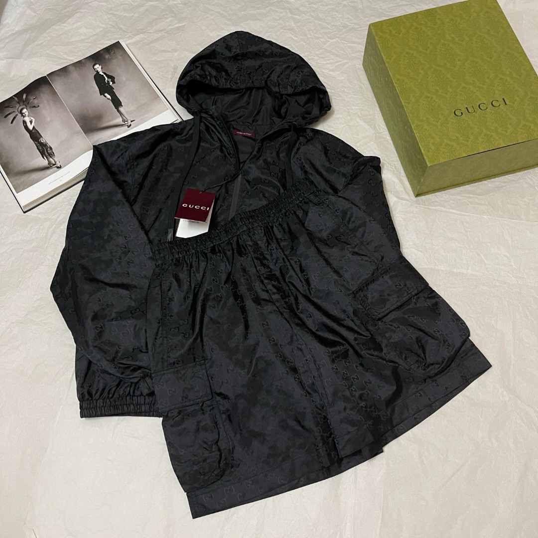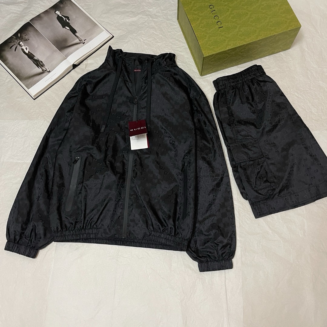 NIGO Gucci Men's Lightweight Letter Gg Logo Nylon Jacquard Zipper Hooded Jacket Fashion Work Style Shorts Suit Set #nigo71496