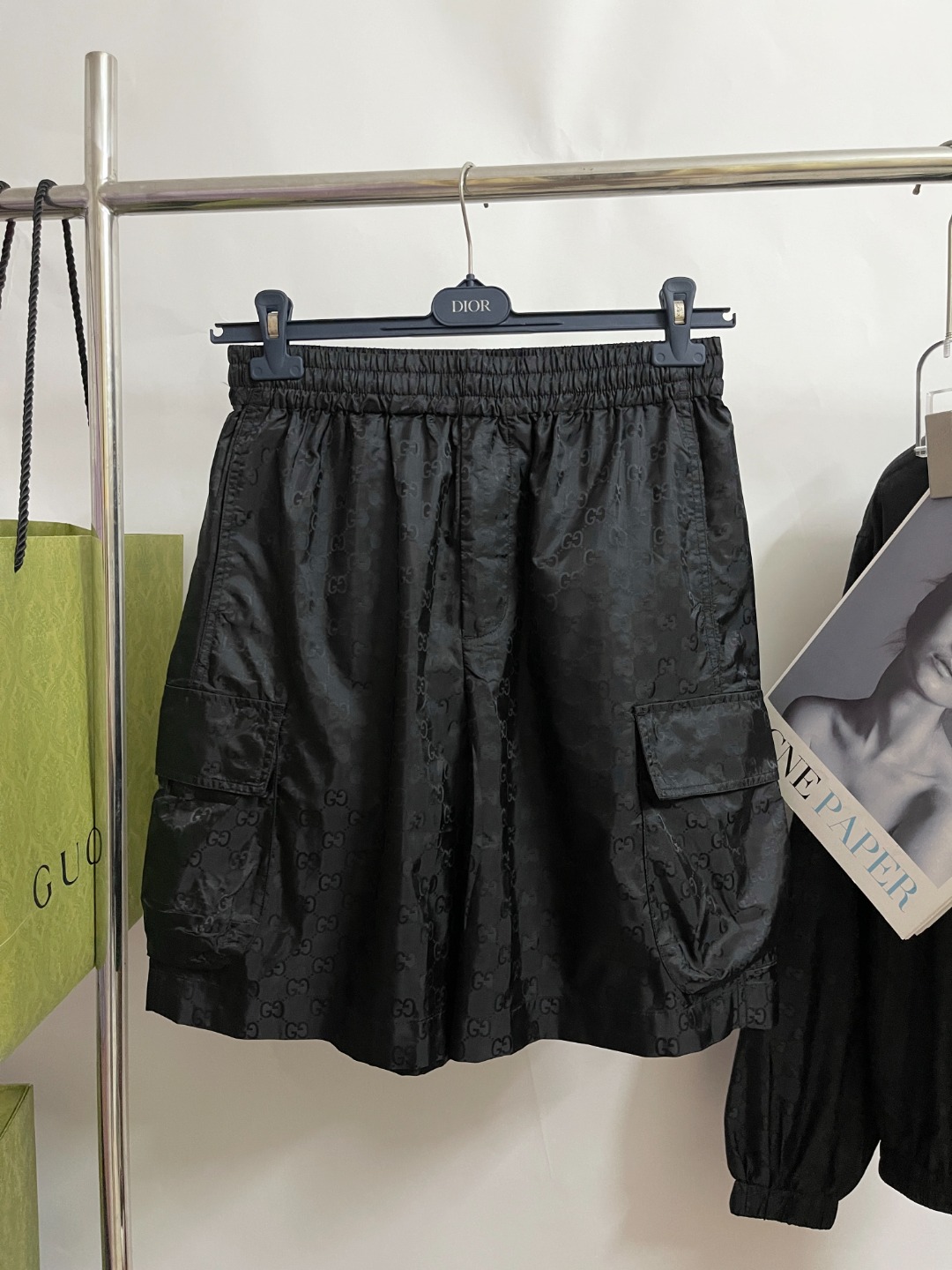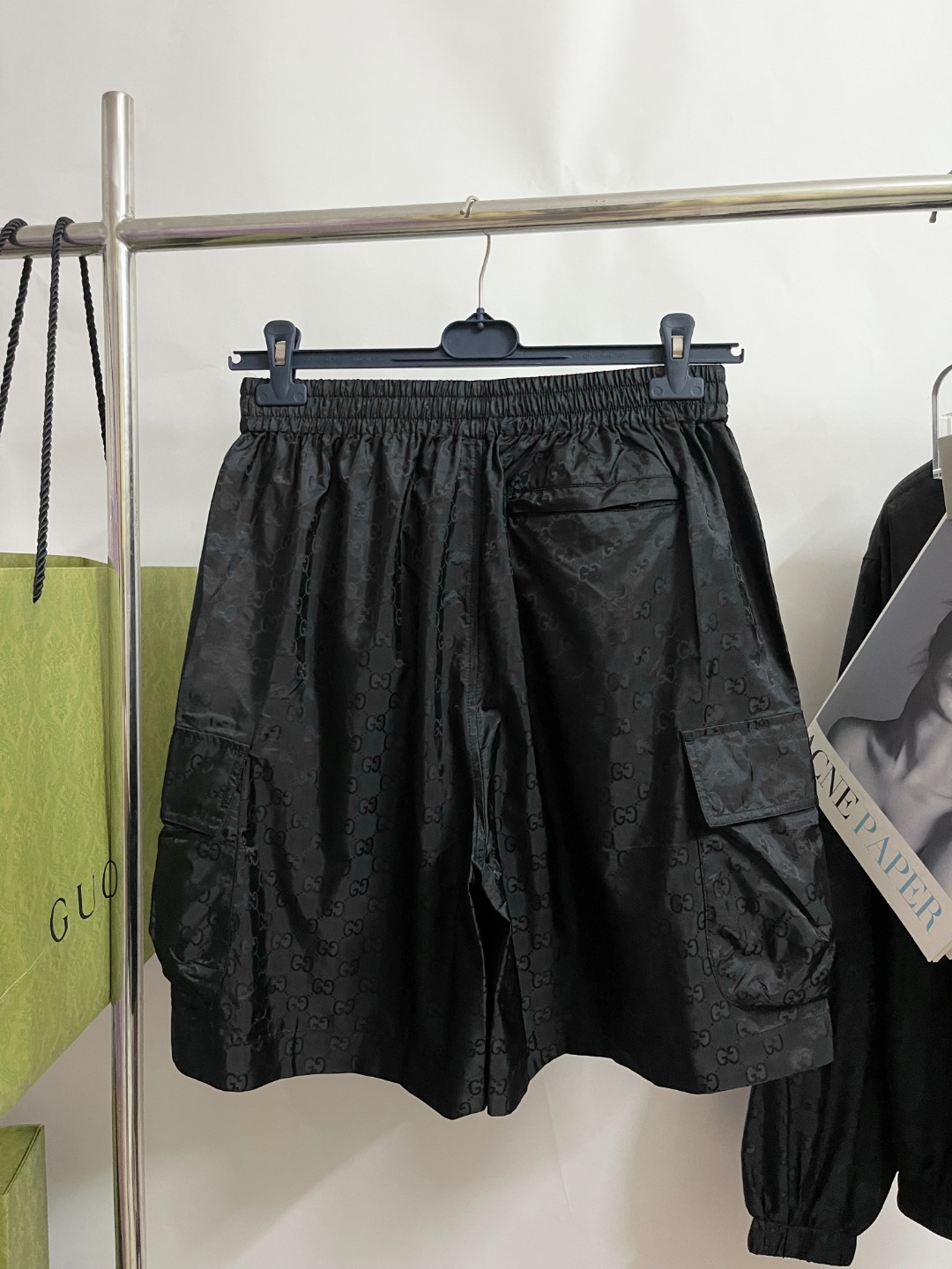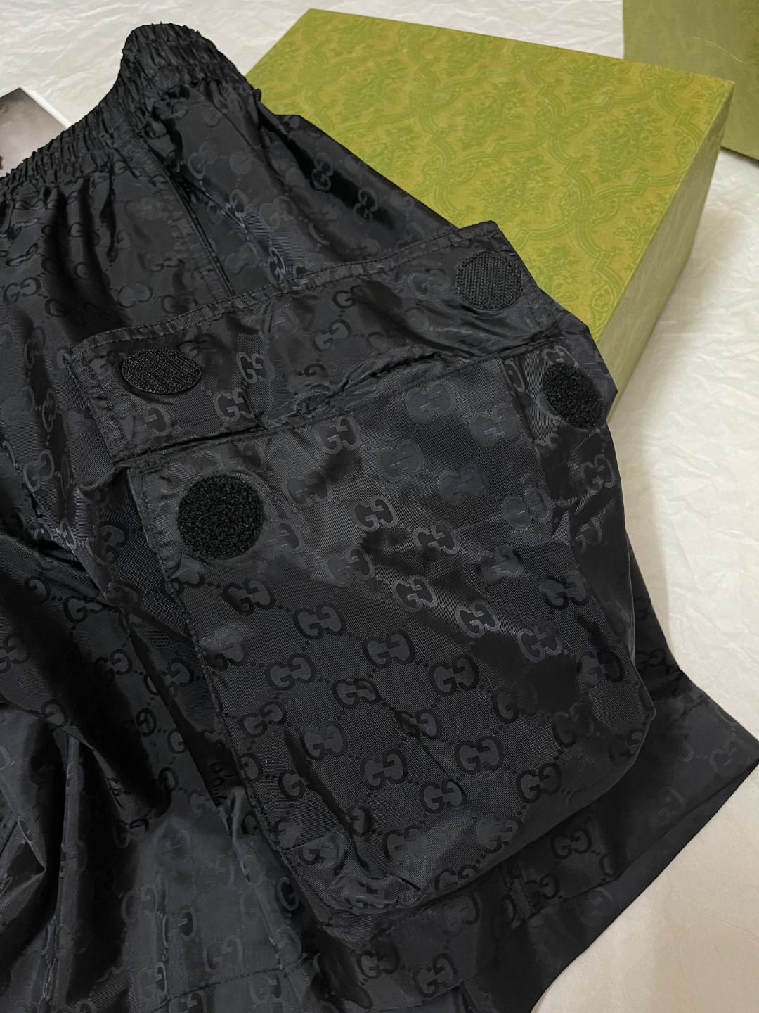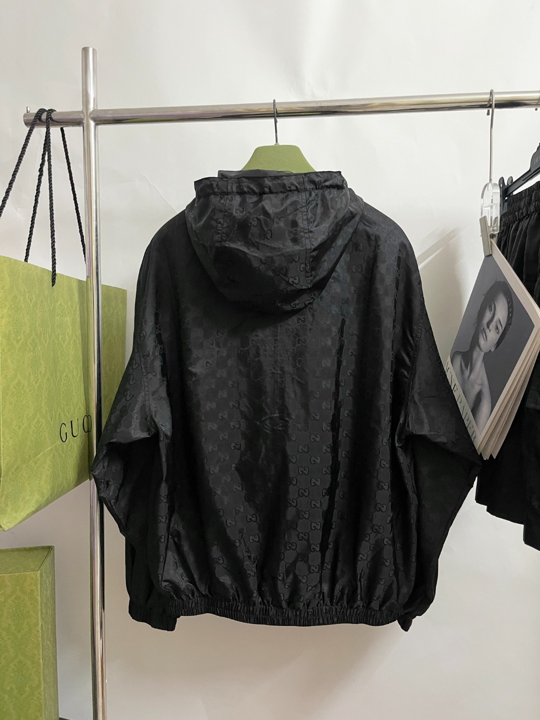 NIGO Gucci Men's Lightweight Letter Gg Logo Nylon Jacquard Zipper Hooded Jacket Fashion Work Style Shorts Suit Set #nigo71496