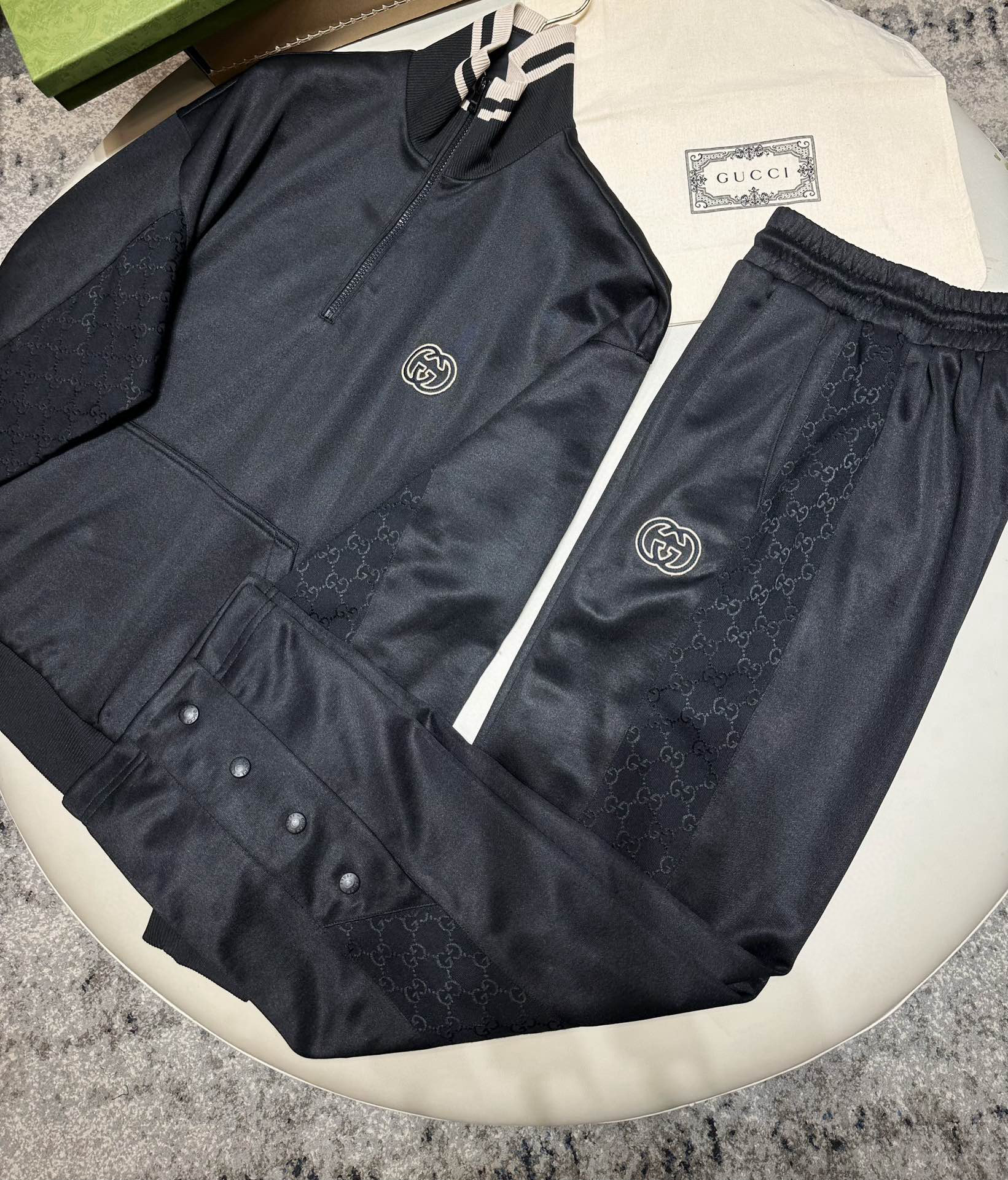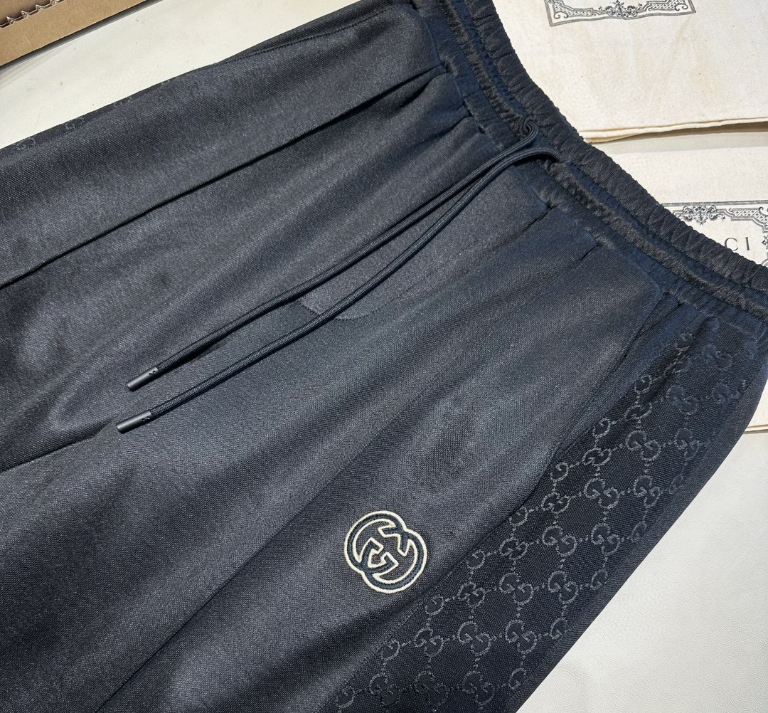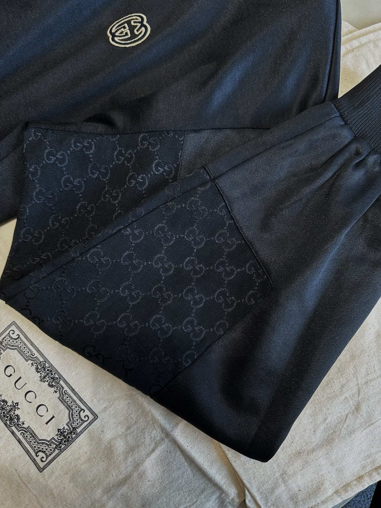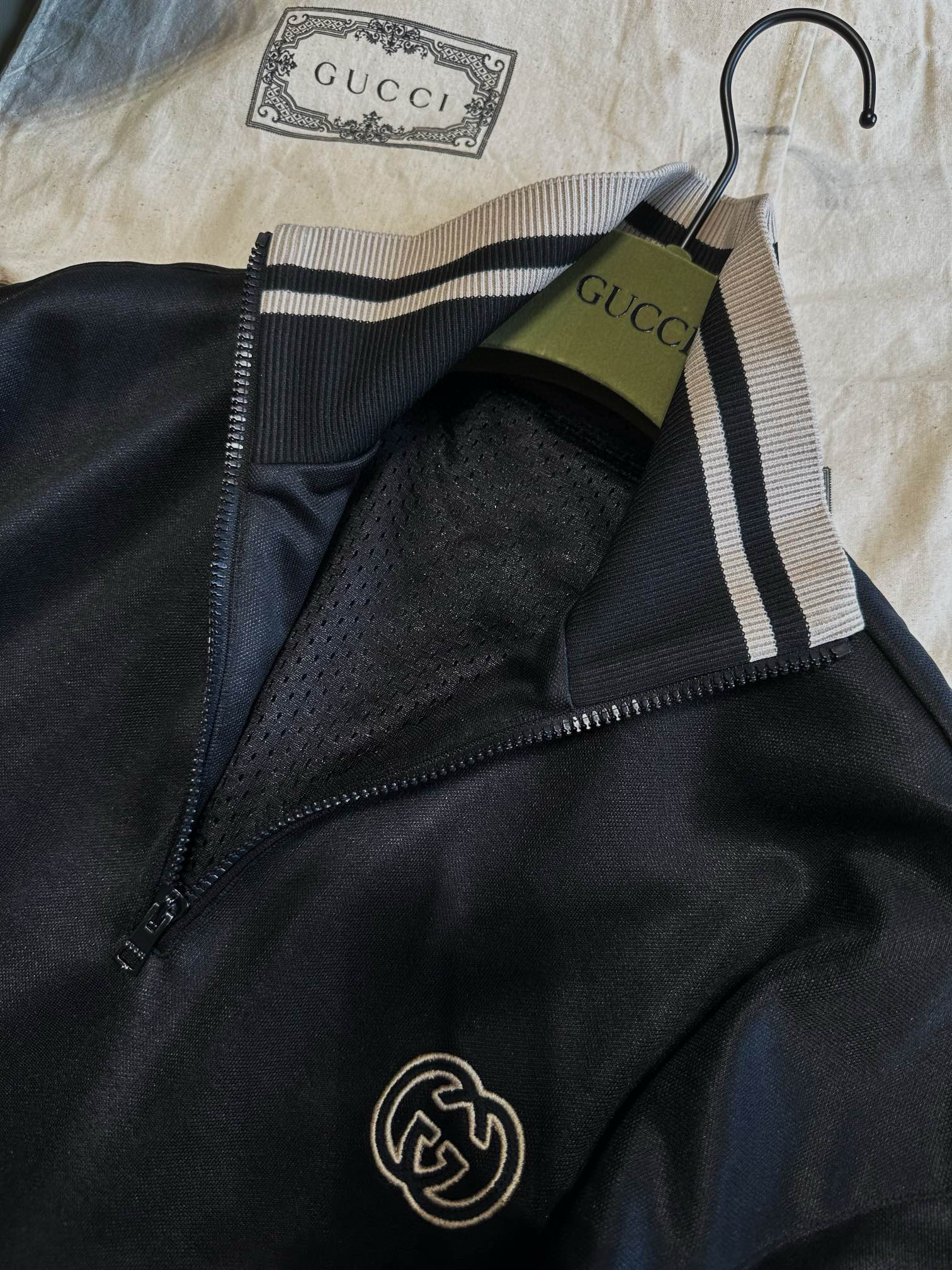 NIGO Gucci Men's Spring and Autumn Black Logo Embroidery Zipper Standing Collar Long Sleeve Jacket Elastic Knit Sweatpants Pants Suit Set #nigo98786