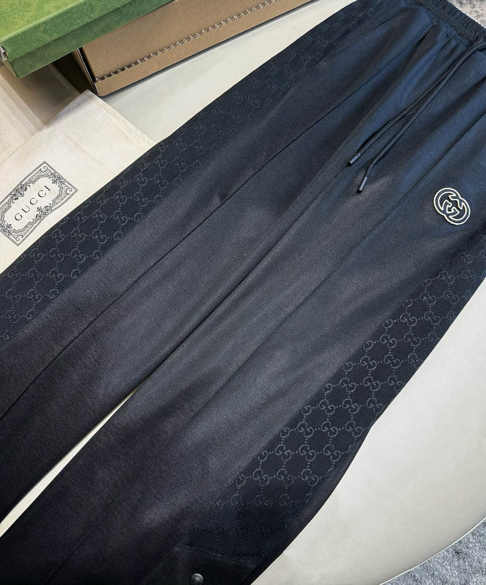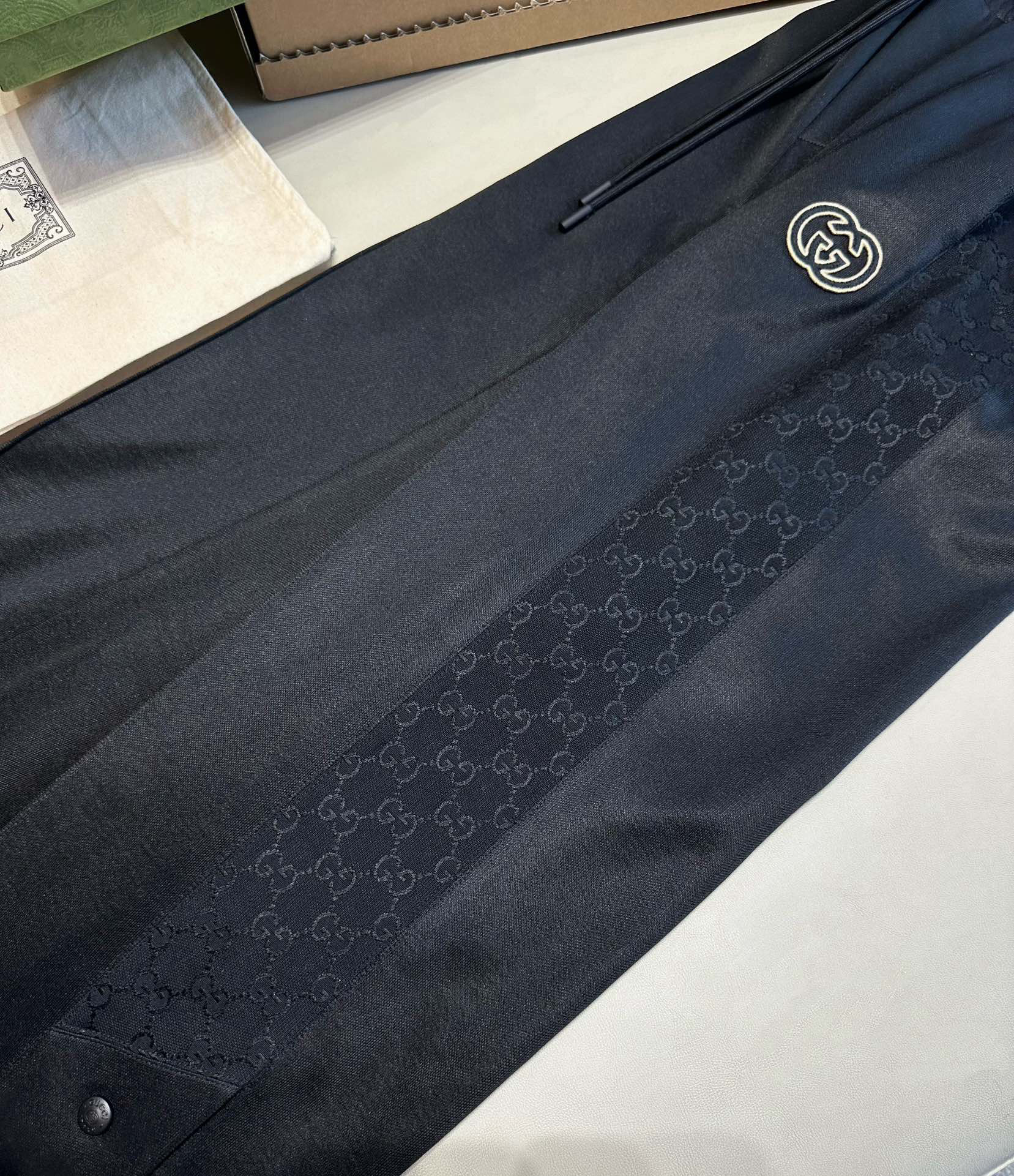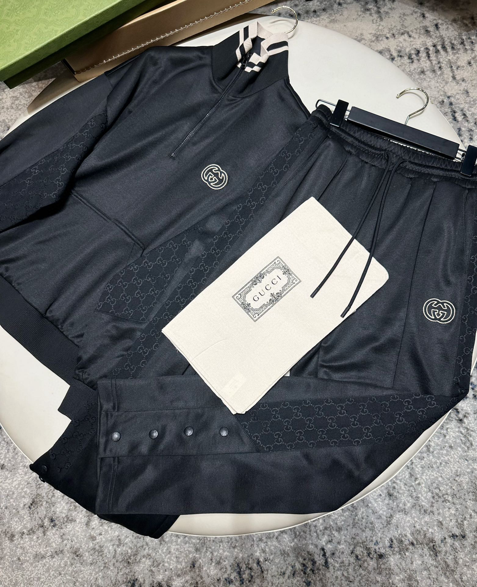 NIGO Gucci Men's Spring and Autumn Black Logo Embroidery Zipper Standing Collar Long Sleeve Jacket Elastic Knit Sweatpants Pants Suit Set #nigo98786