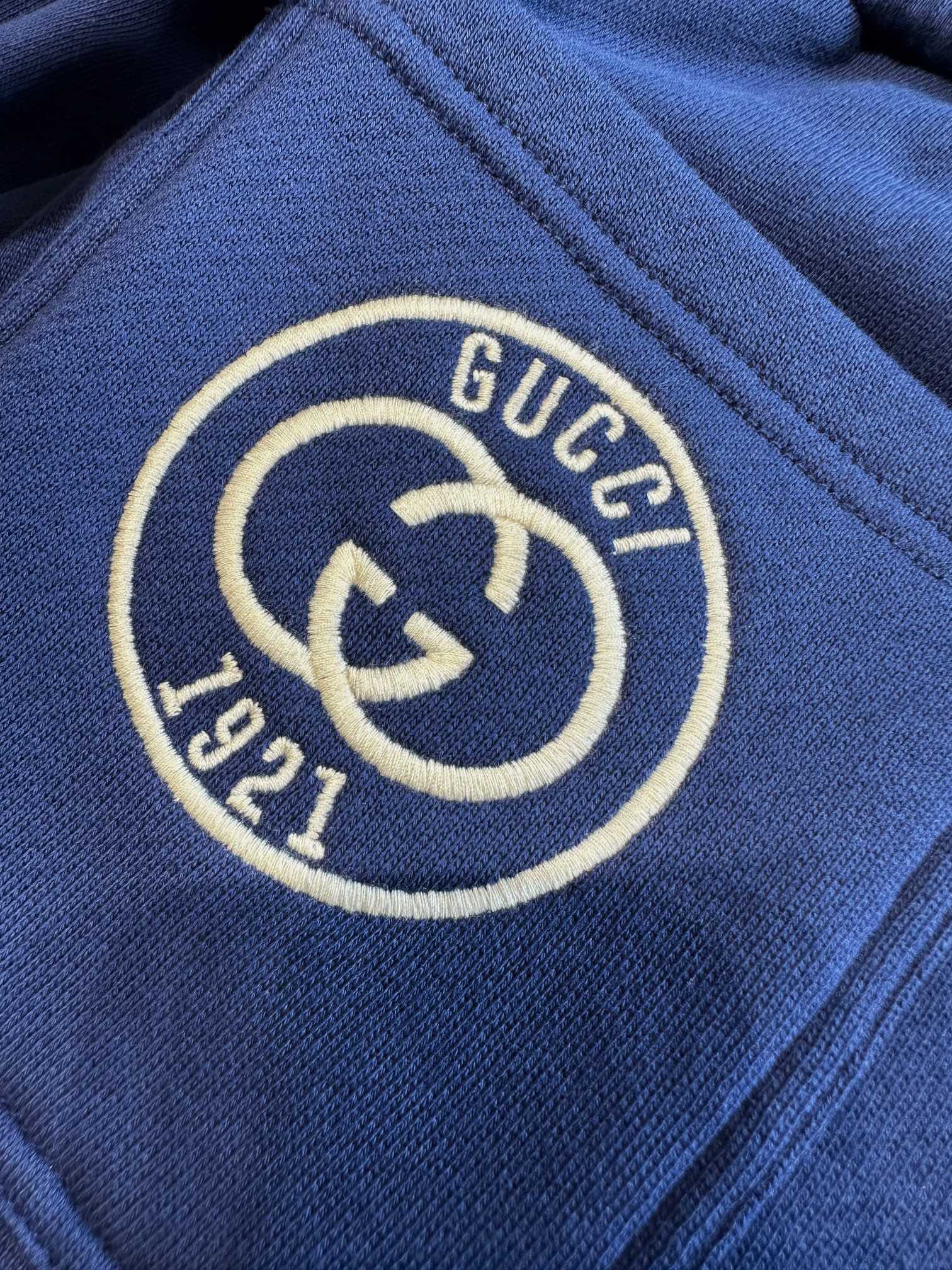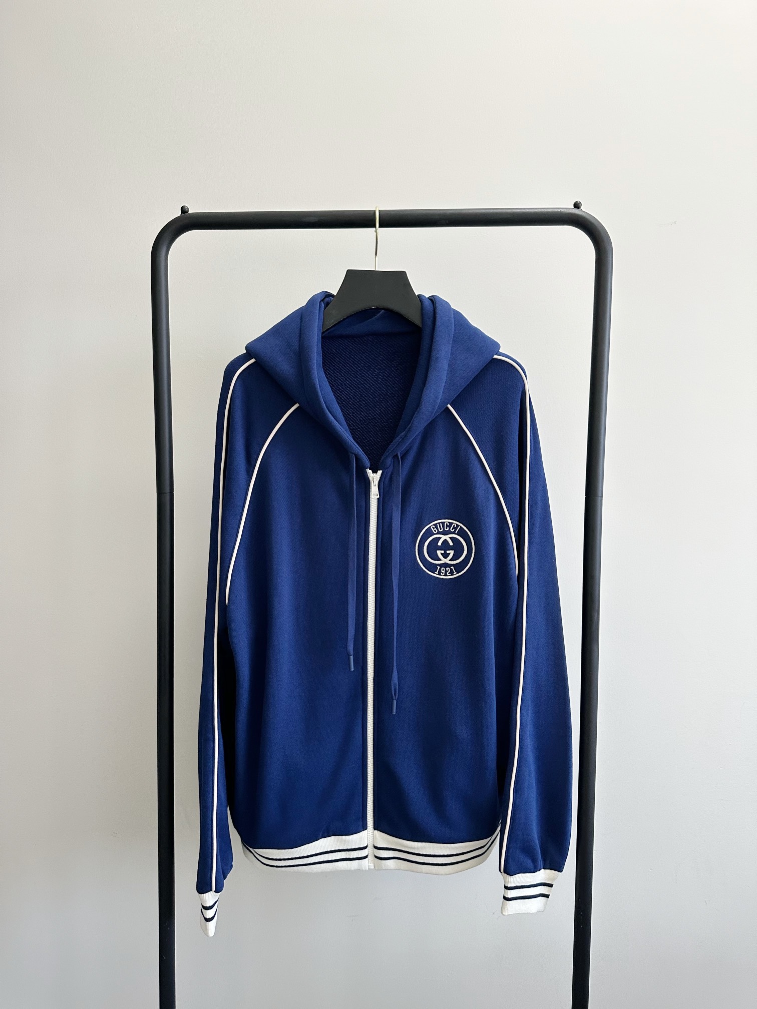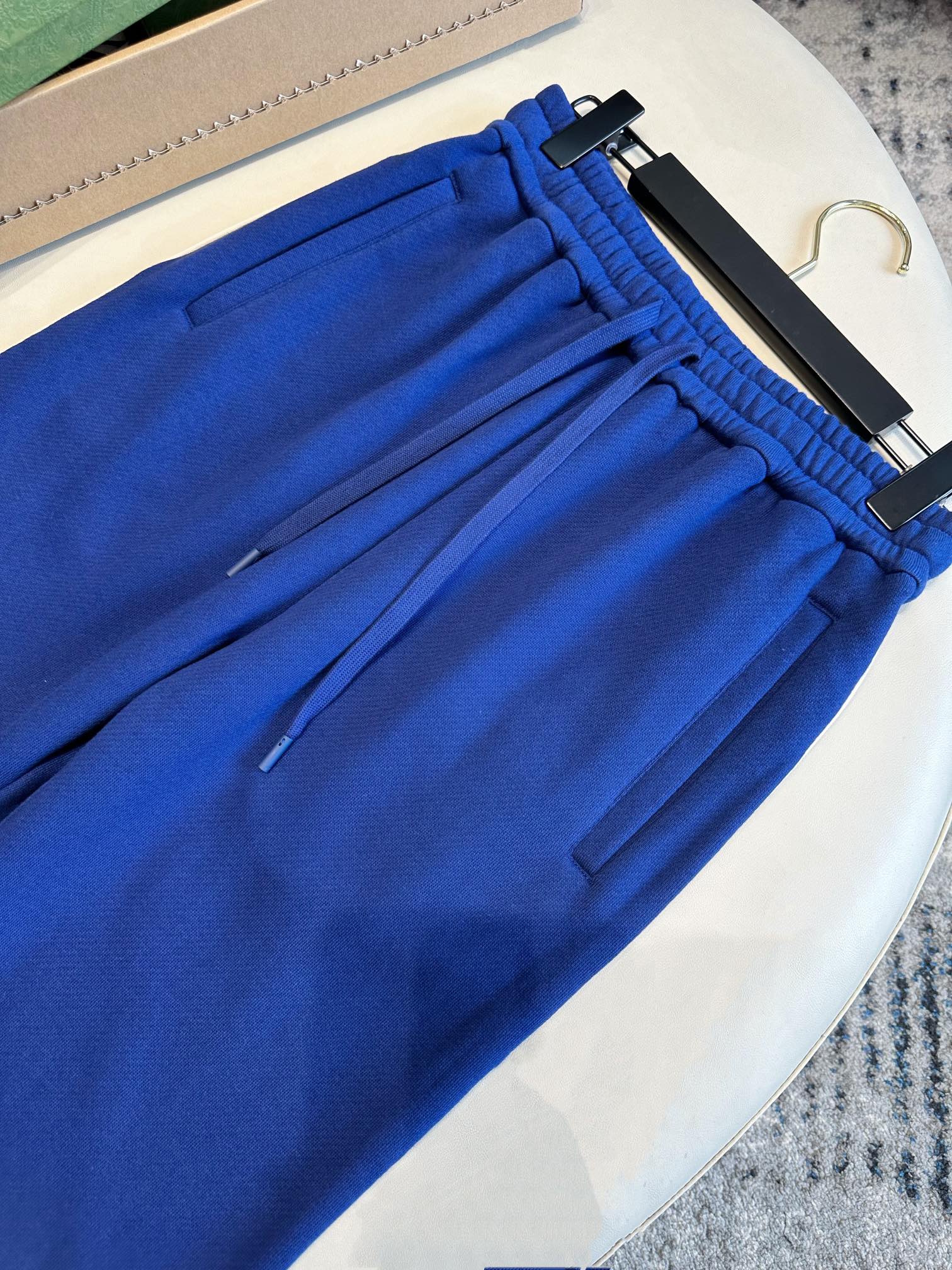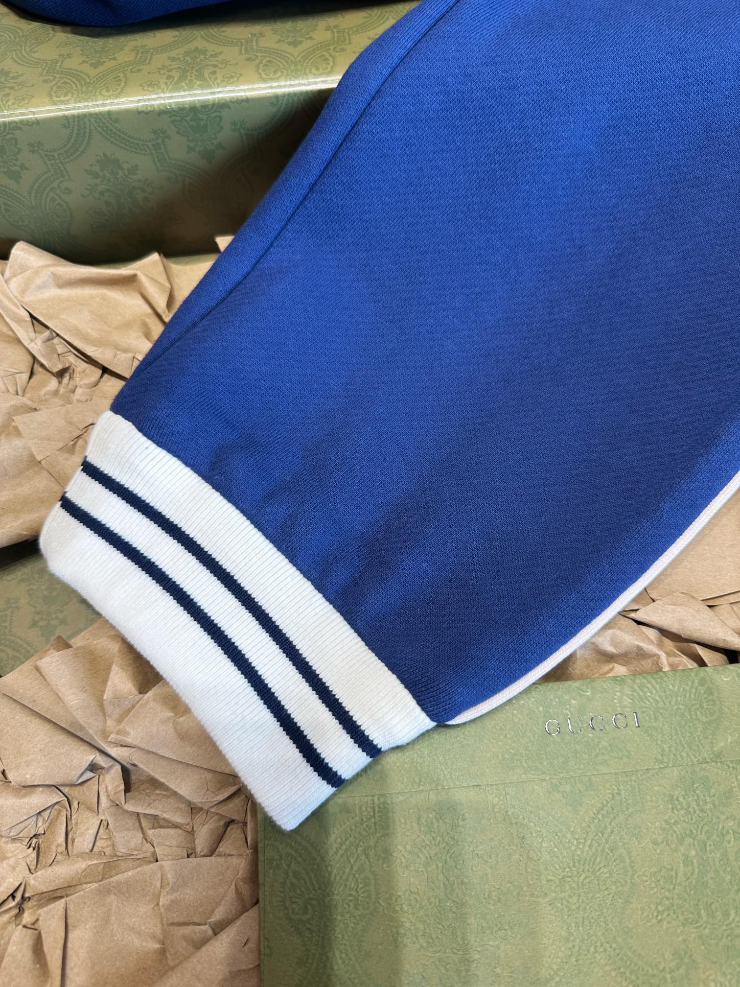 NIGO Gucci Men's Spring and Autumn Blue Applique Cotton Plain Knit Hooded Zipper Sport Sweatshirt Jacket Elastic Mid Waist Drawstring Pants Set Suit #nigo72829