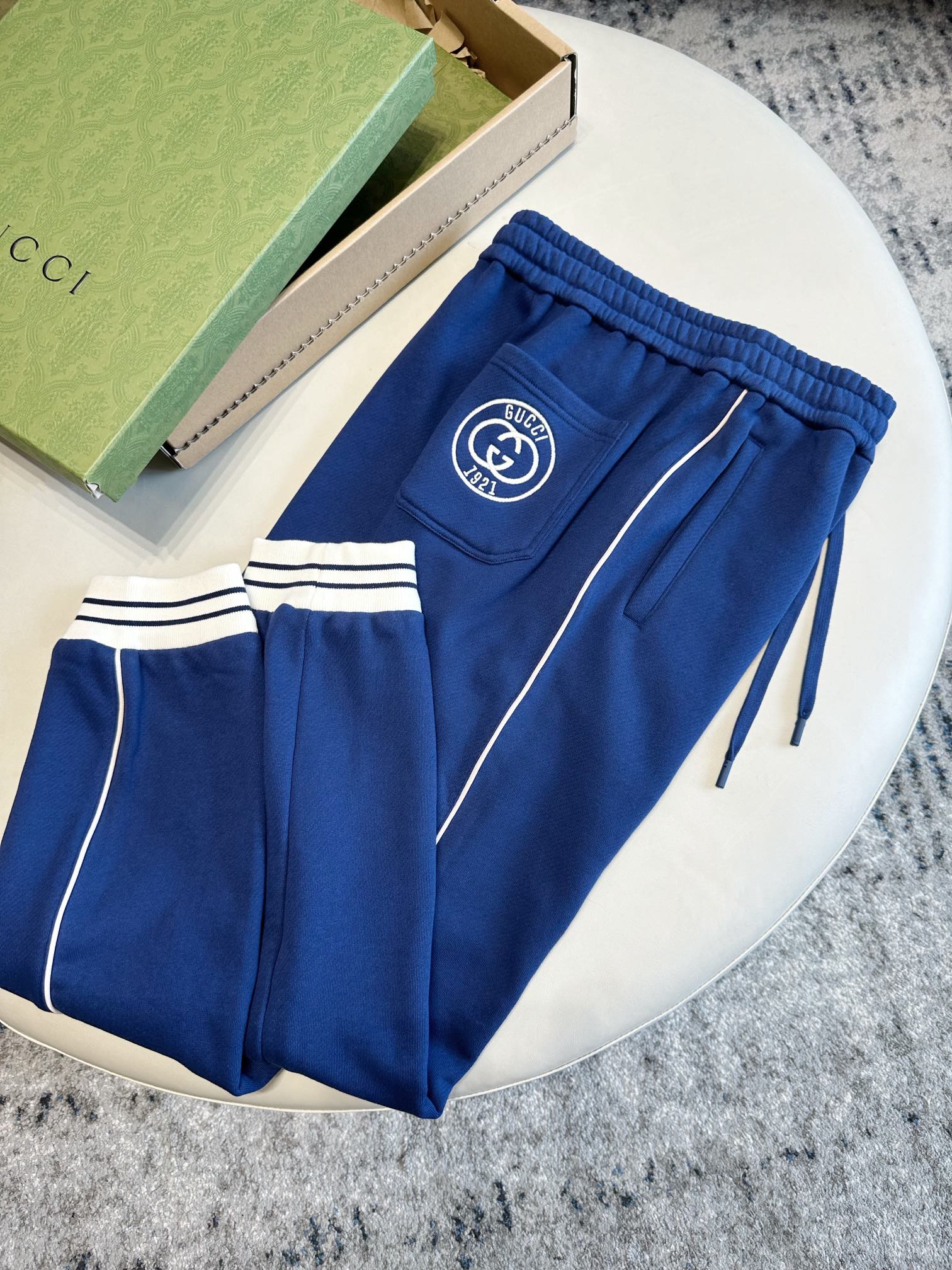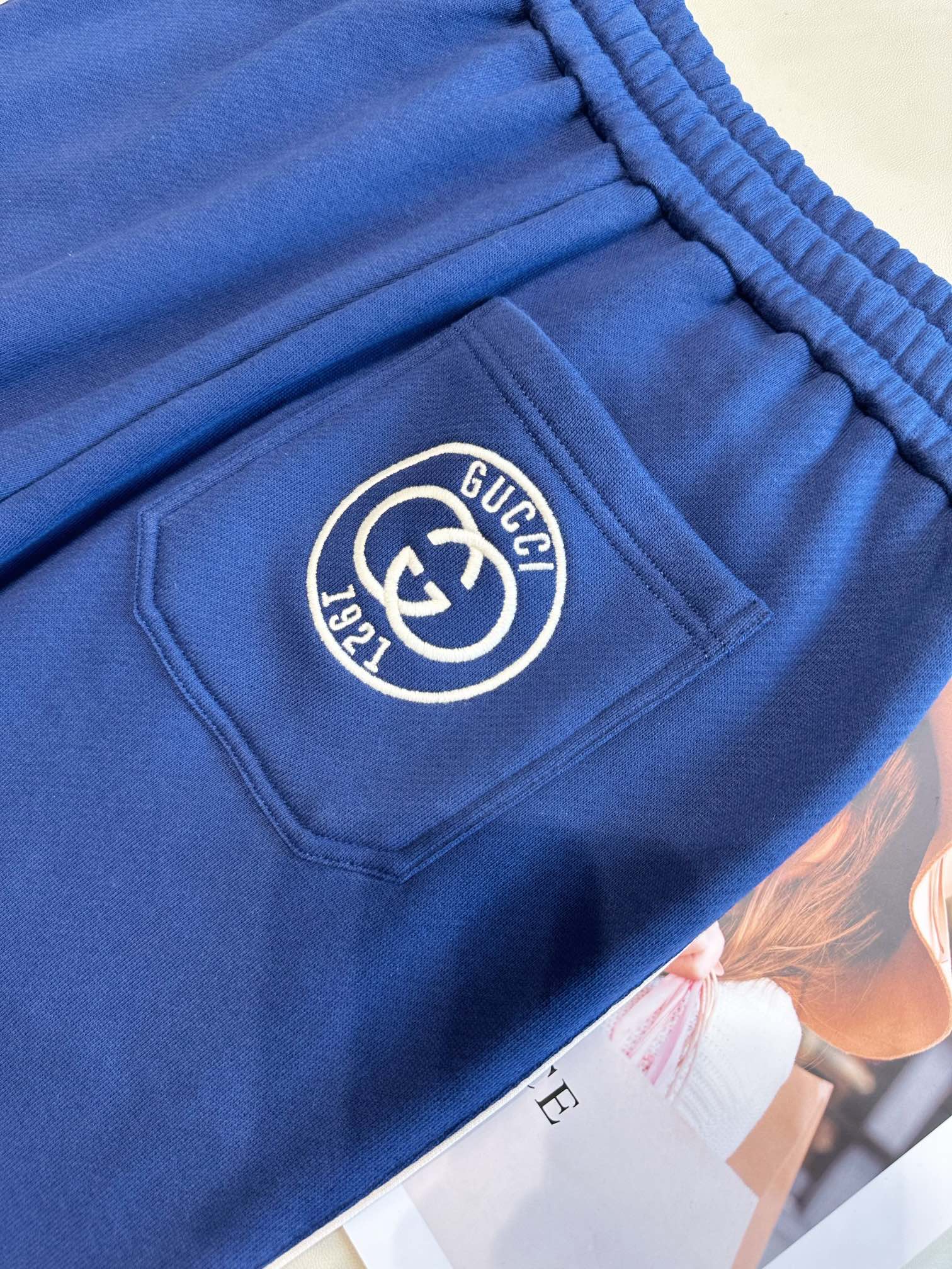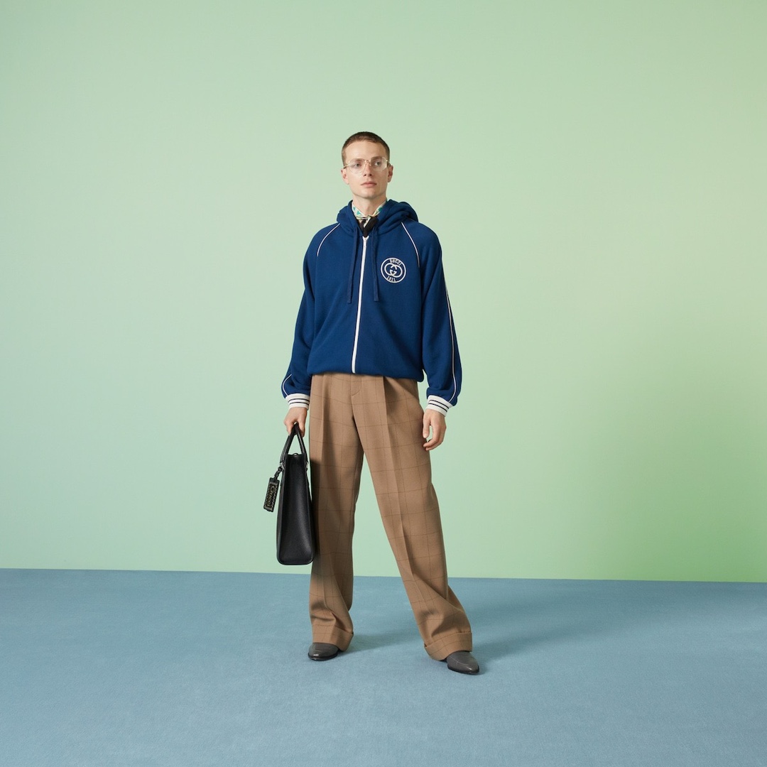 NIGO Gucci Men's Spring and Autumn Blue Applique Cotton Plain Knit Hooded Zipper Sport Sweatshirt Jacket Elastic Mid Waist Drawstring Pants Set Suit #nigo72829