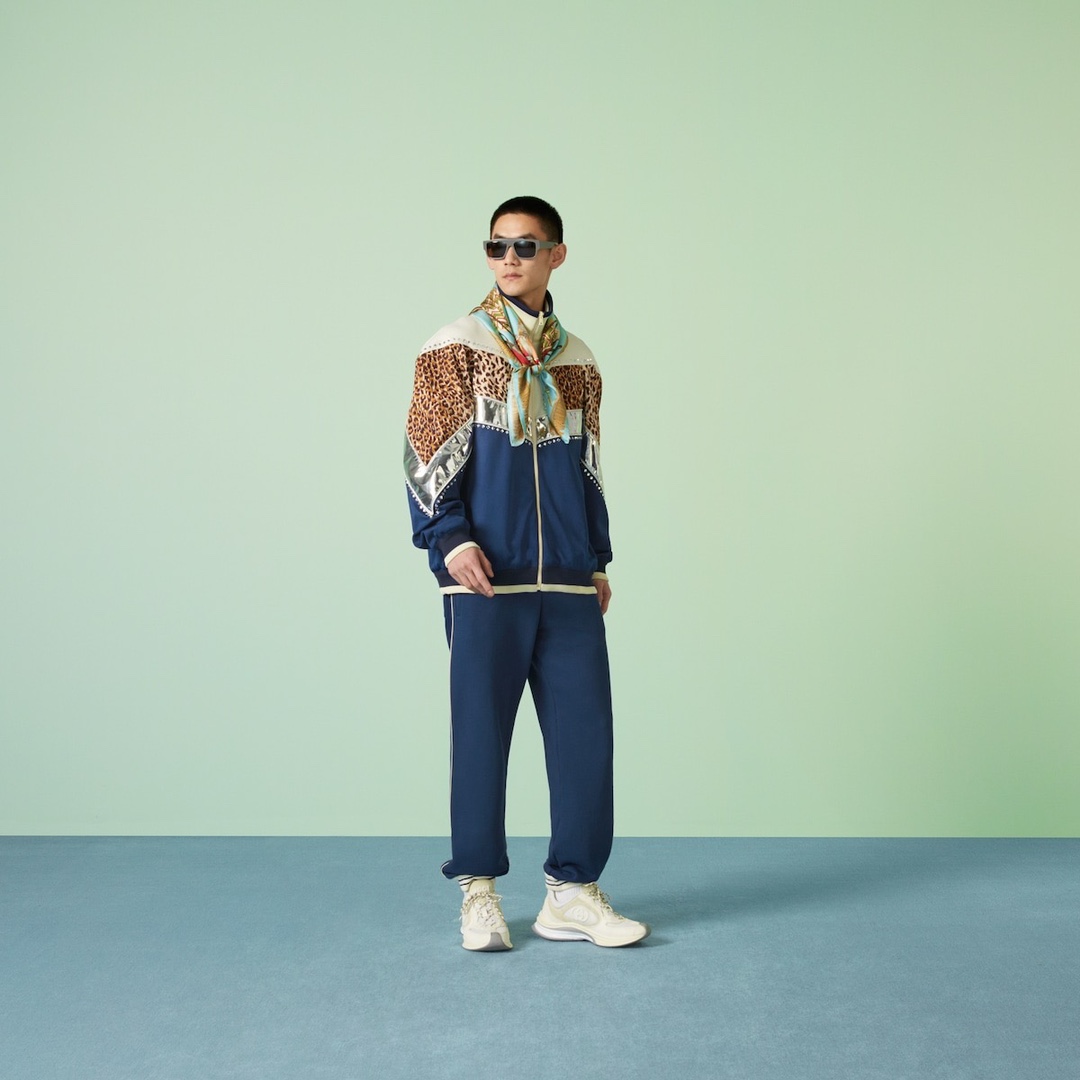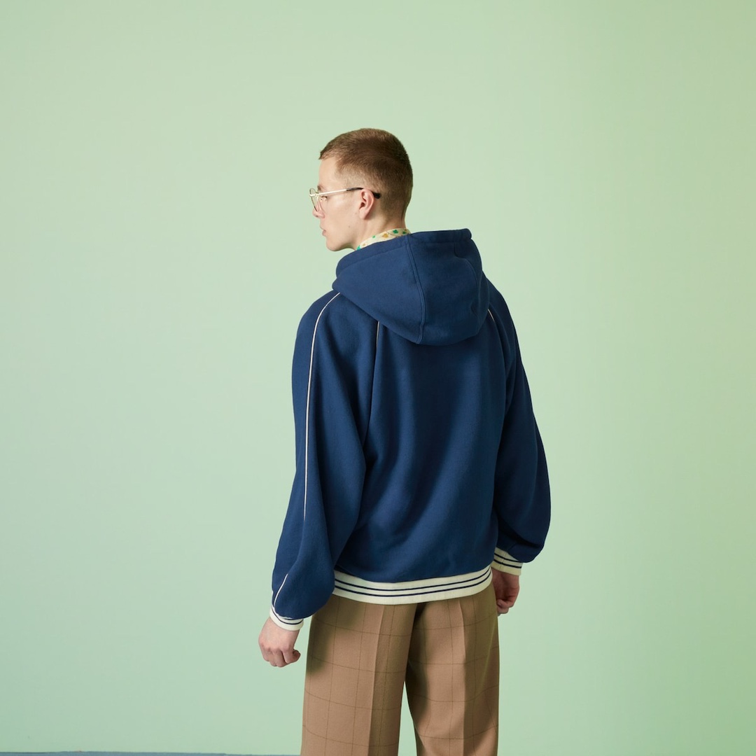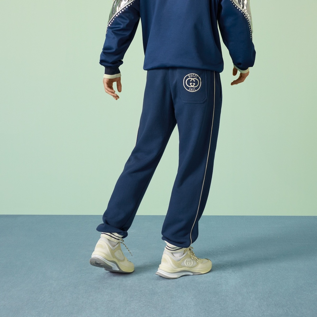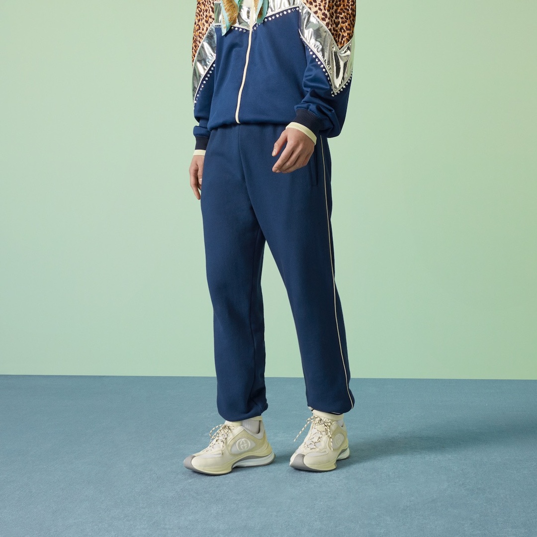 NIGO Gucci Men's Spring and Autumn Blue Applique Cotton Plain Knit Hooded Zipper Sport Sweatshirt Jacket Elastic Mid Waist Drawstring Pants Set Suit #nigo72829