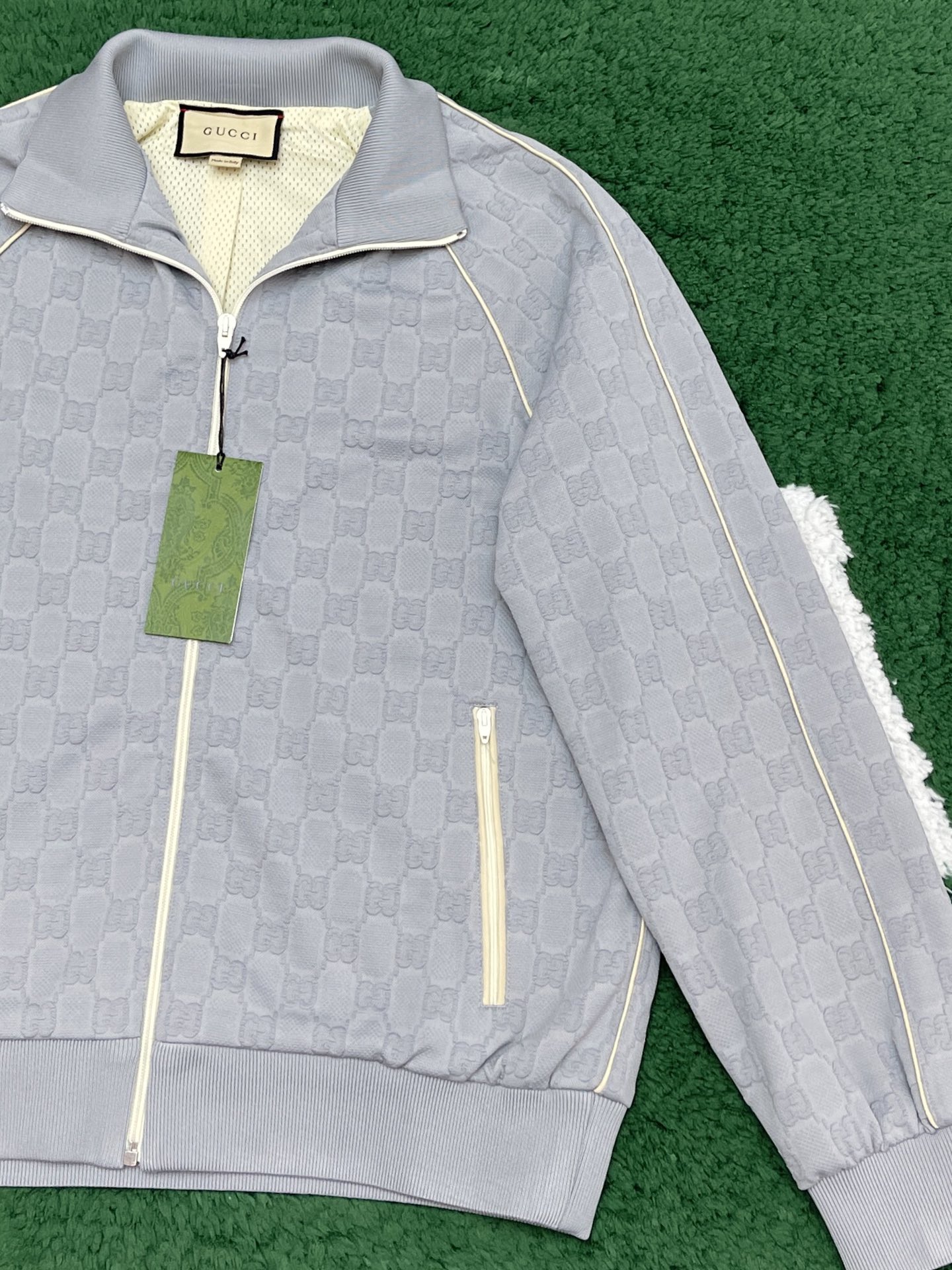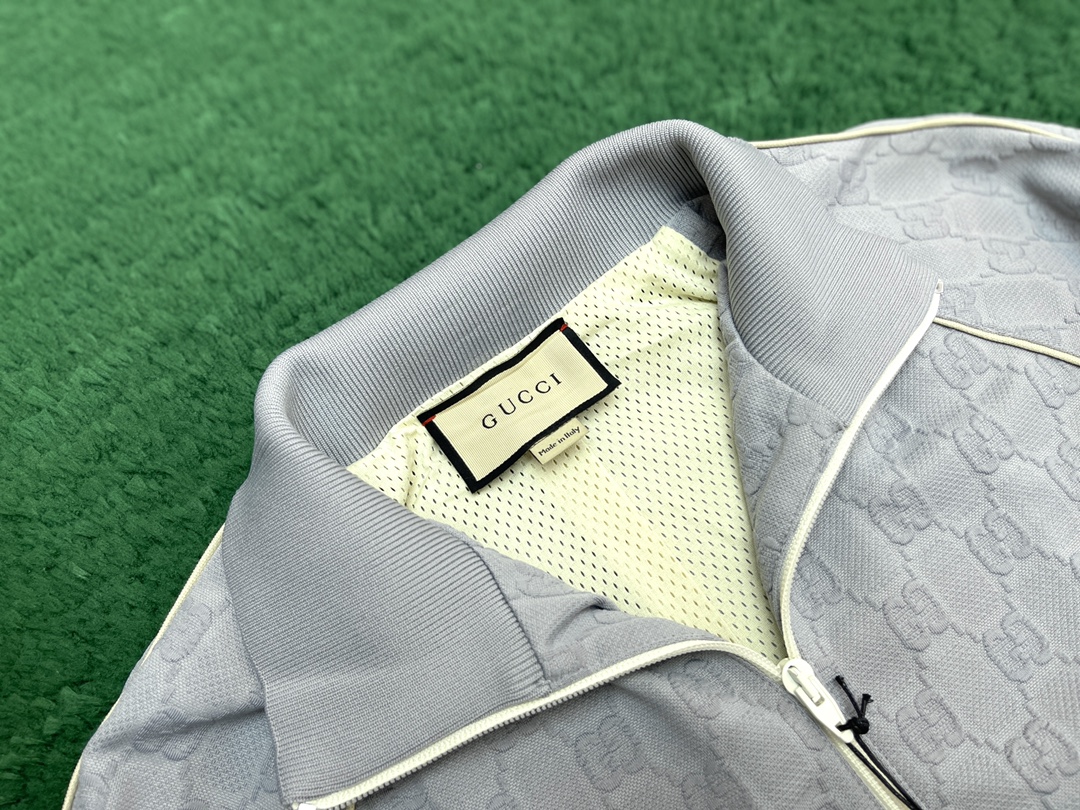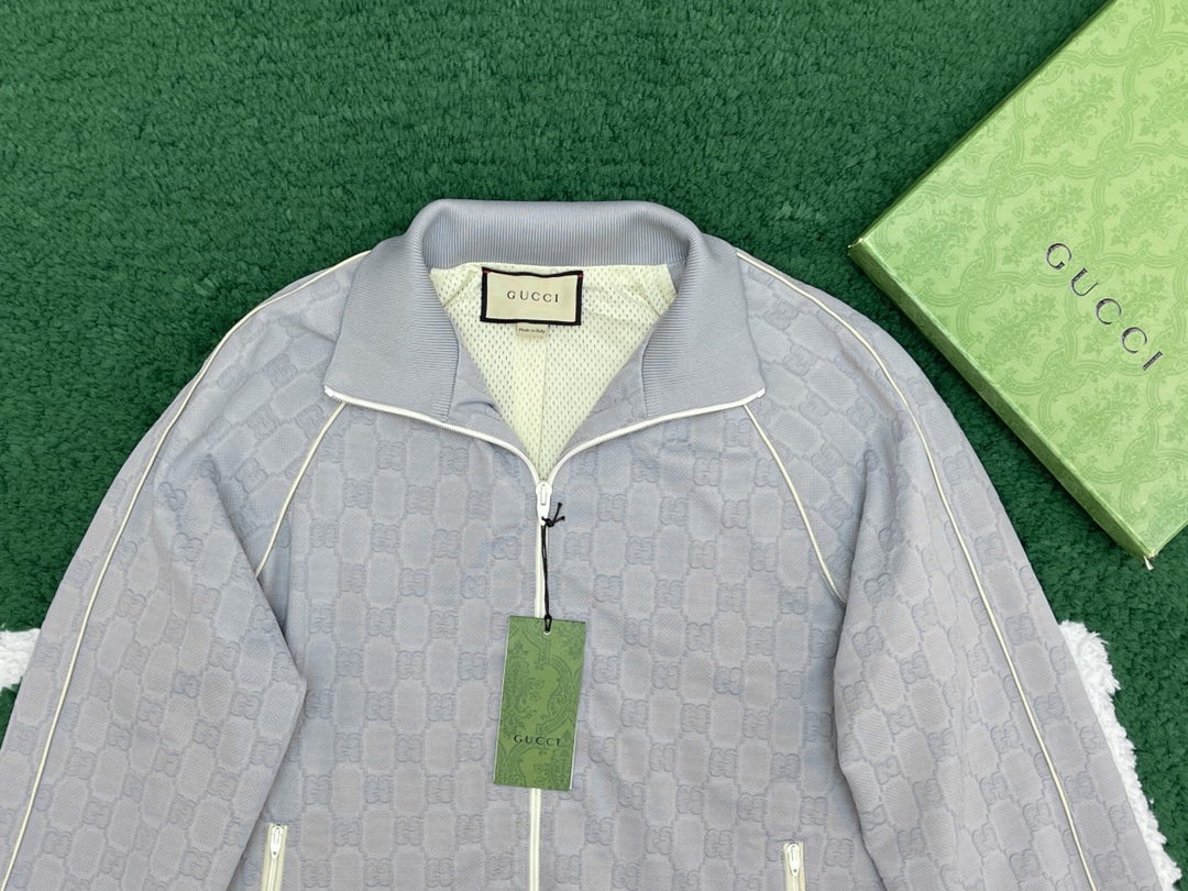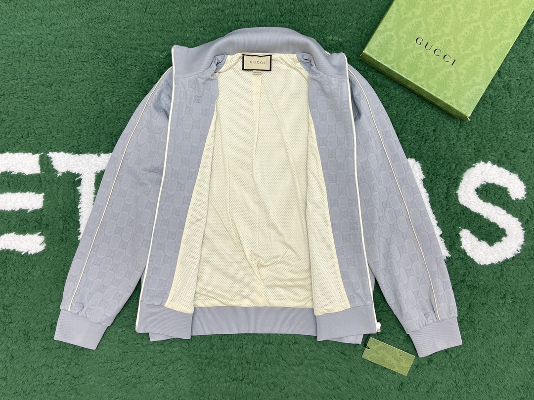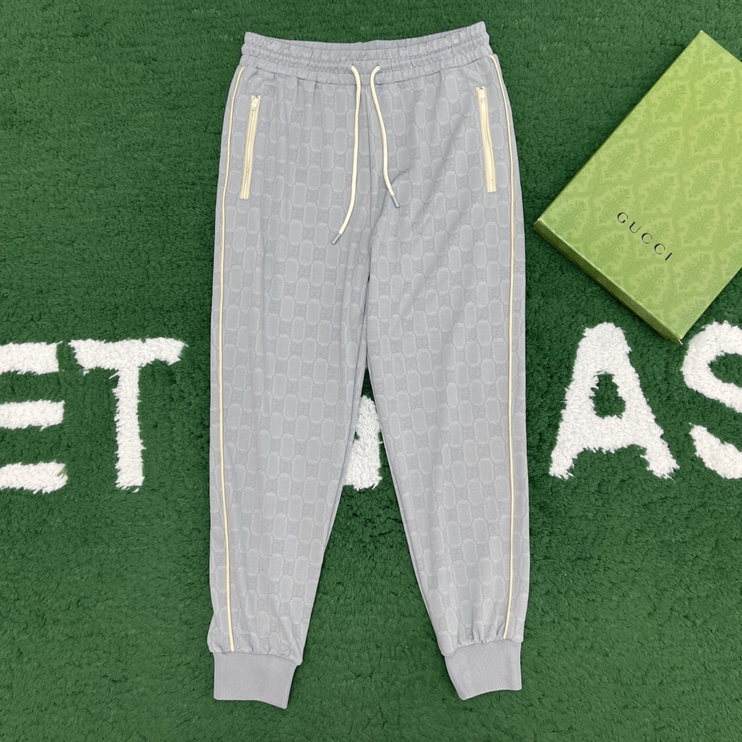 NIGO Gucci Men's Spring and Autumn Gray Letter Logo Full Print Zipper Long Sleeve Jacket Drawstring Tie Sweatpants Pants Suit Set #nigo72978