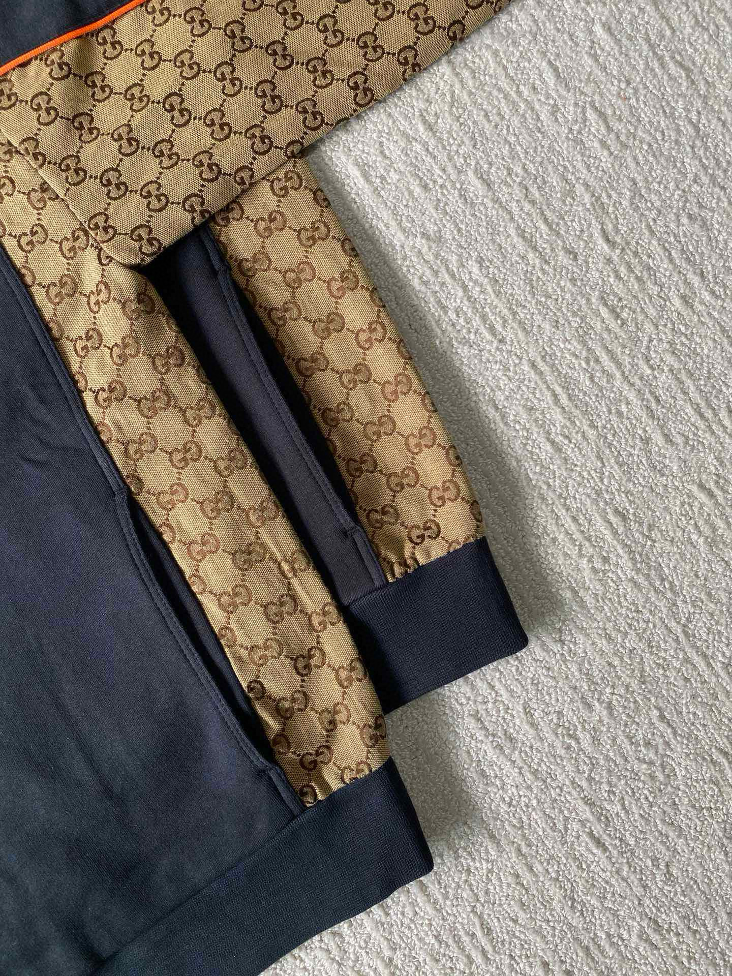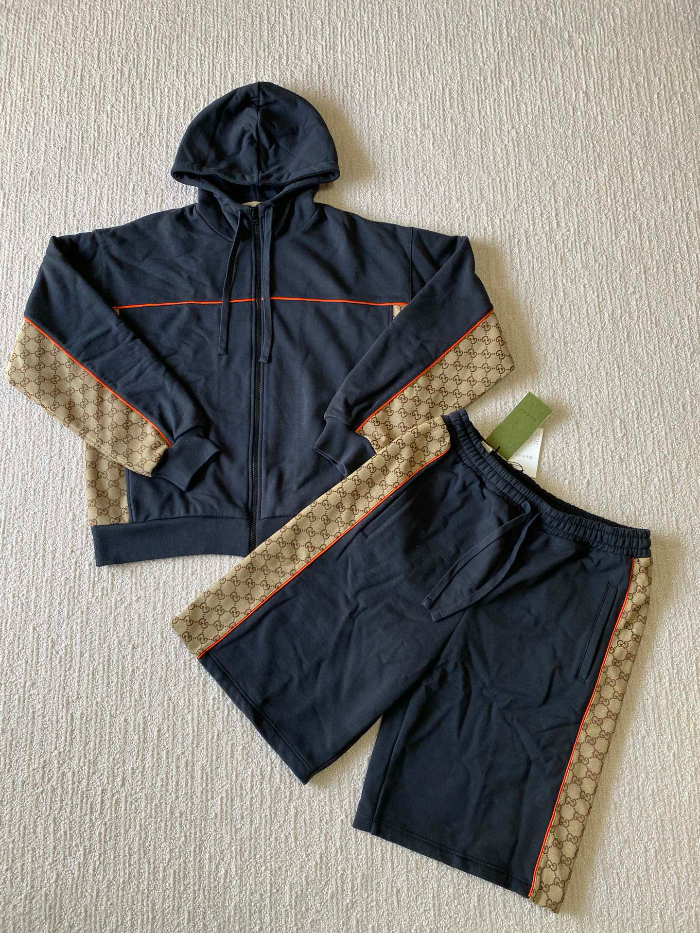 NIGO Gucci Men's Spring and Autumn Patchwork Logo Jacquard Zipper Hooded Long Sleeve Jacket Lace-Up Casual Shorts Pants Suit Set #nigo98839
