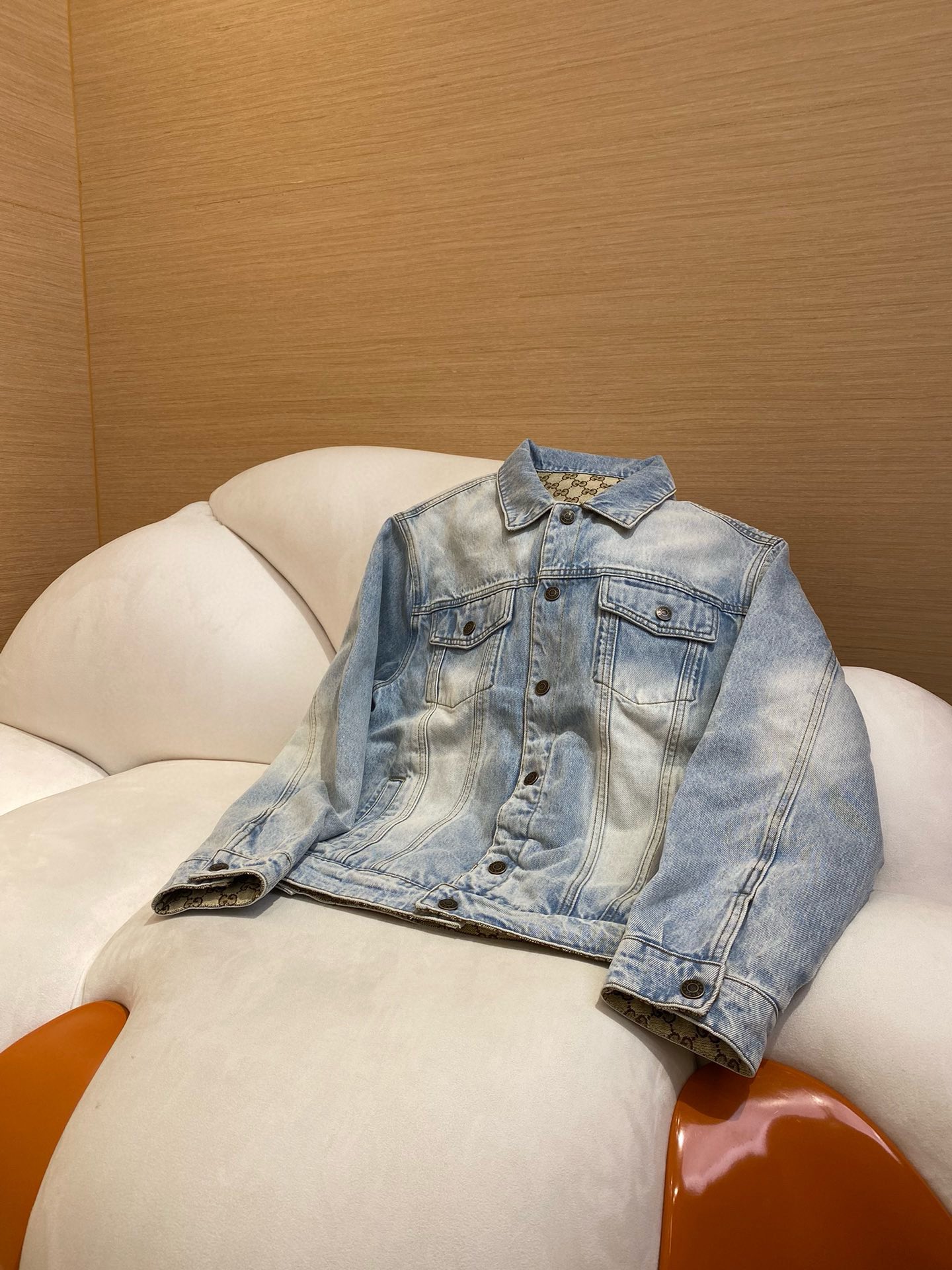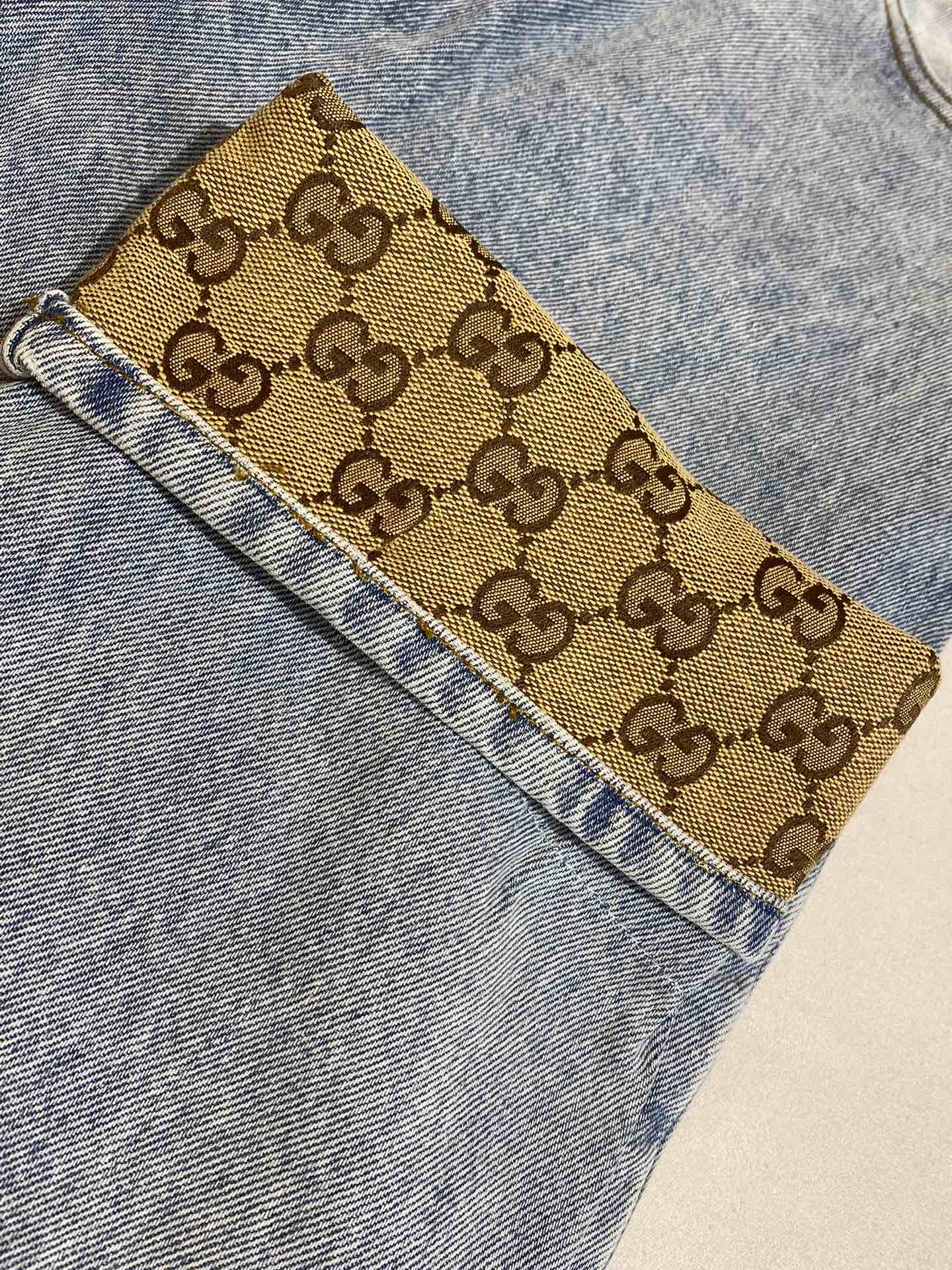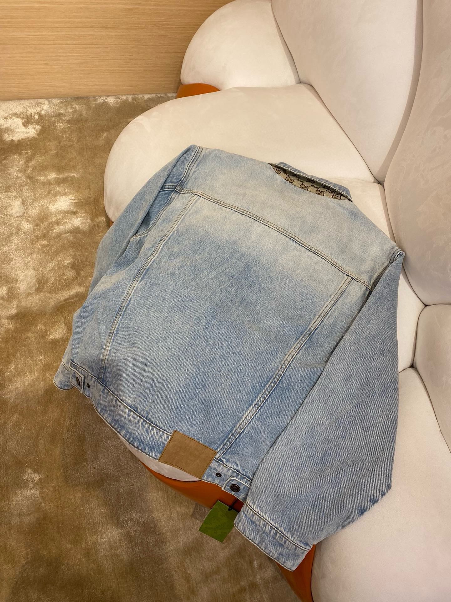 NIGO Gucci Men's Spring And Fall Light Blue Reversible Denim Single Breasted Double Pockets Lapel Long Sleeve Jacket Zipper Jeans Pants Set Suit #nigo72516