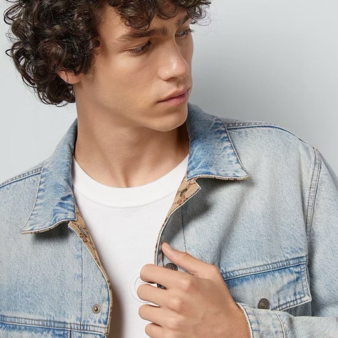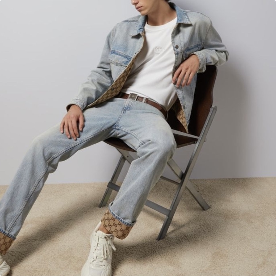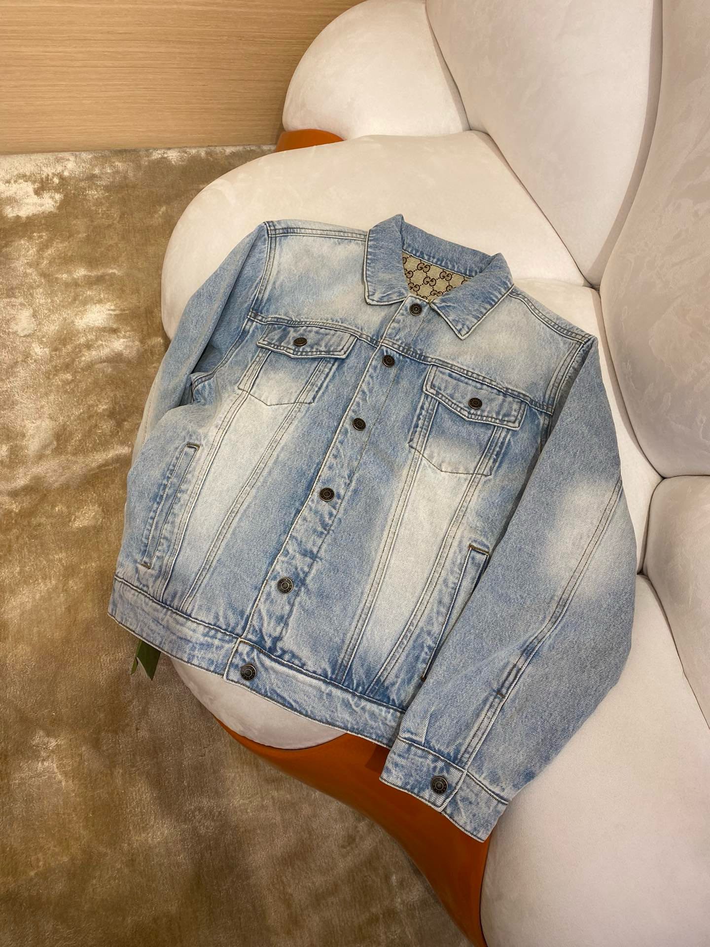 NIGO Gucci Men's Spring And Fall Light Blue Reversible Denim Single Breasted Double Pockets Lapel Long Sleeve Jacket Zipper Jeans Pants Set Suit #nigo72516