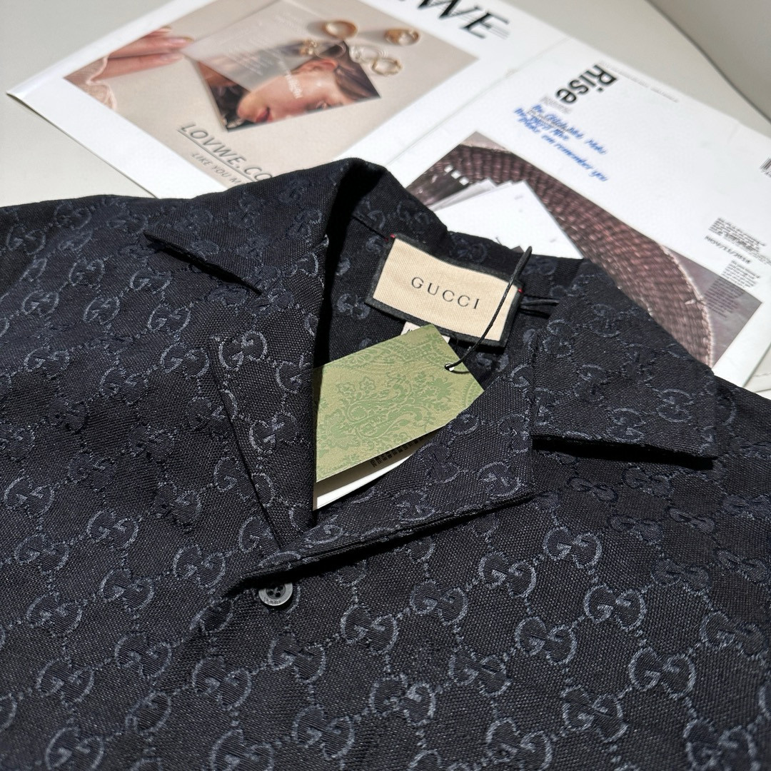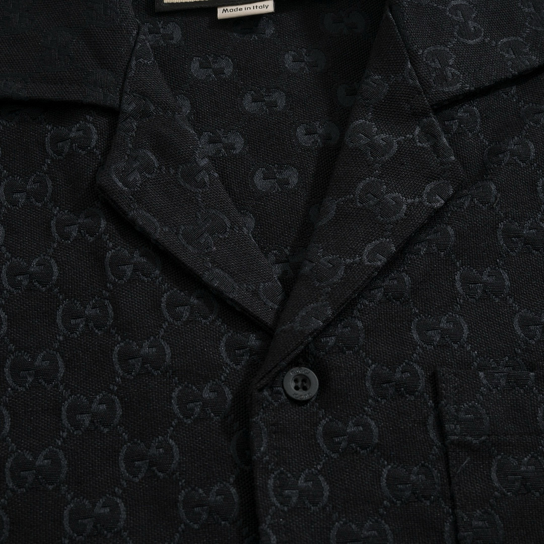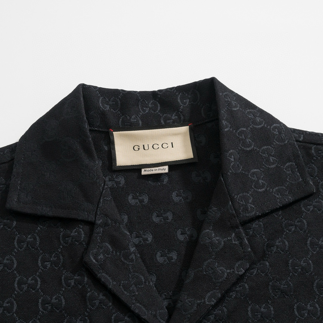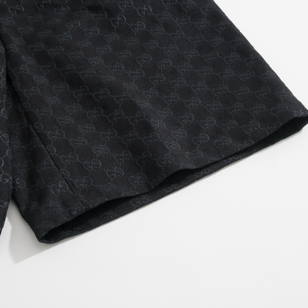NIGO Gucci Men's Summer Black Full Printed Linen Short Sleeve Lapel Cotton Shirt Stretch Shorts Suit Set #nigo98562