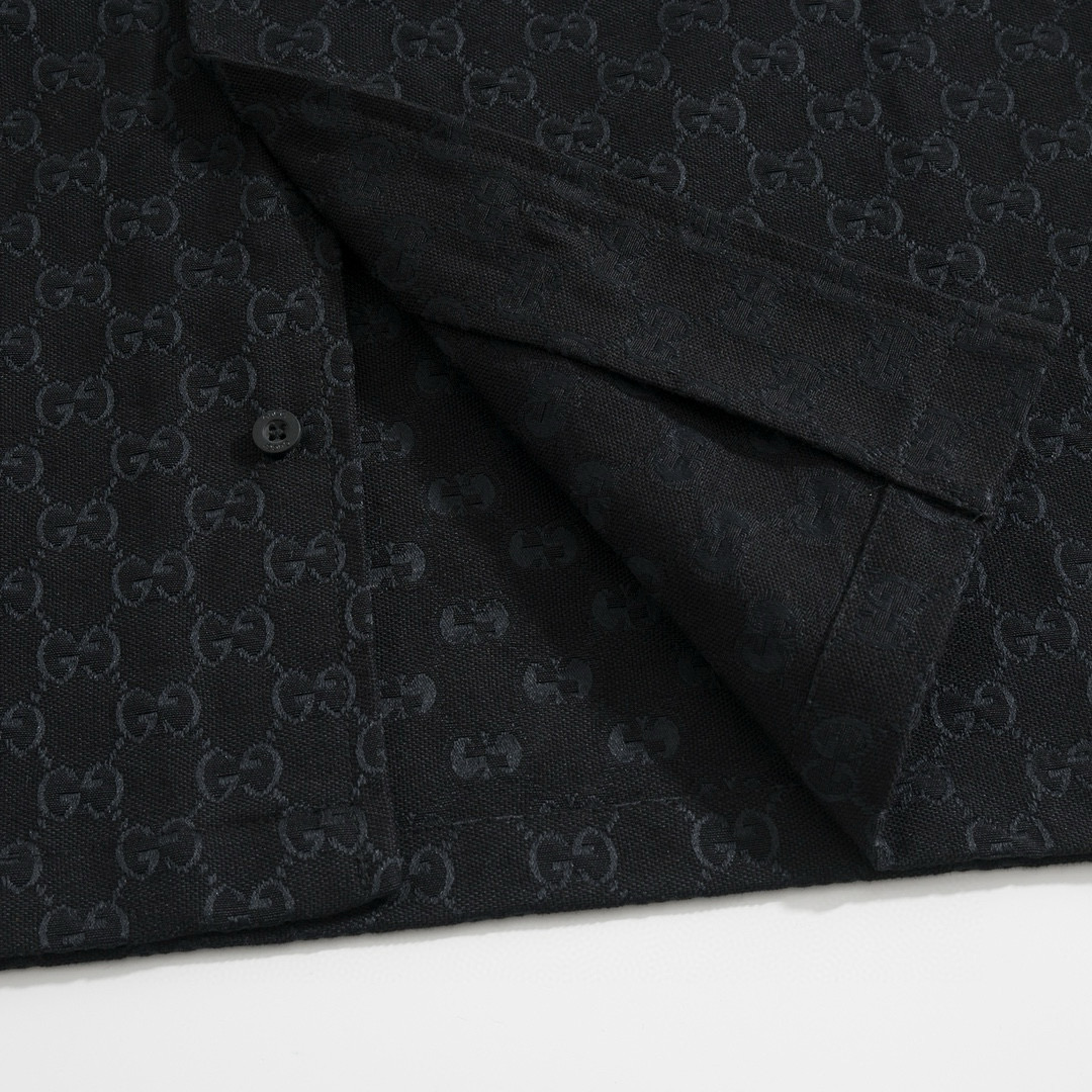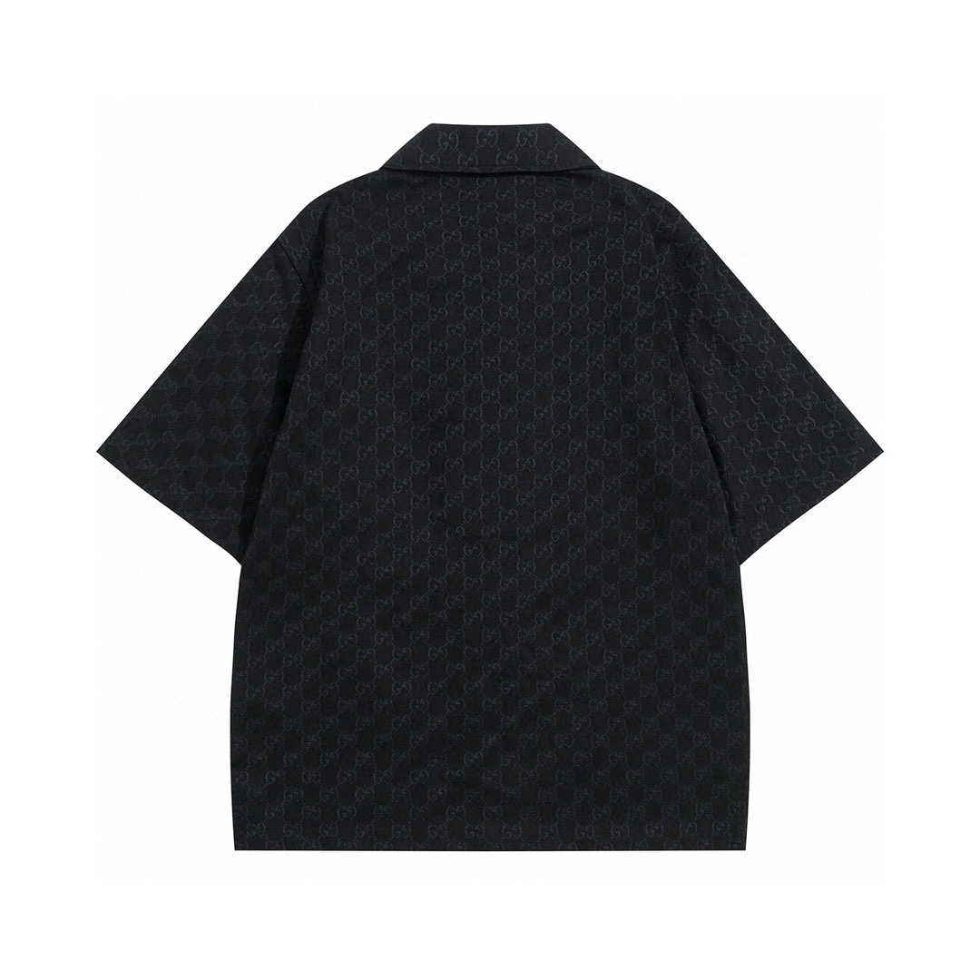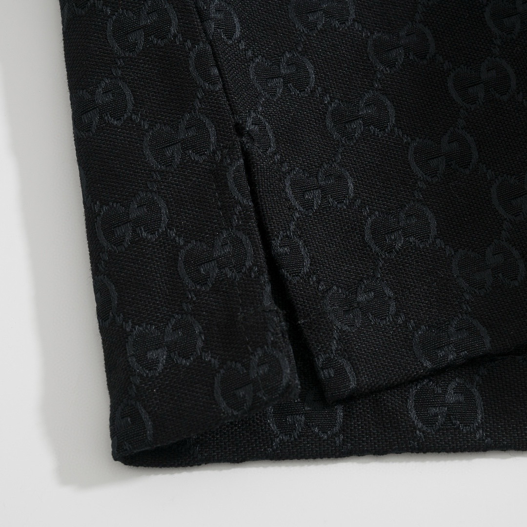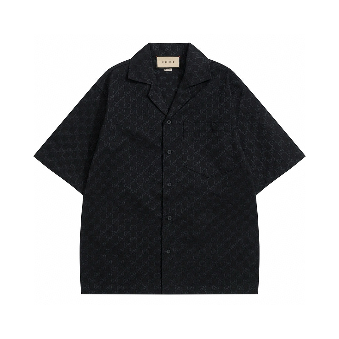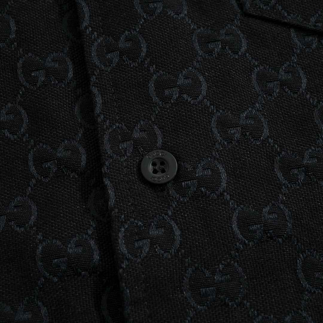 NIGO Gucci Men's Summer Black Full Printed Linen Short Sleeve Lapel Cotton Shirt Stretch Shorts Suit Set #nigo98562