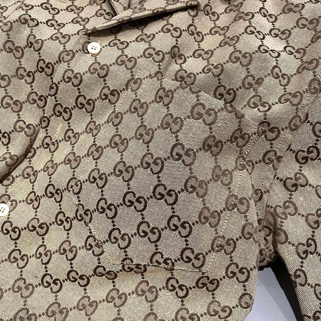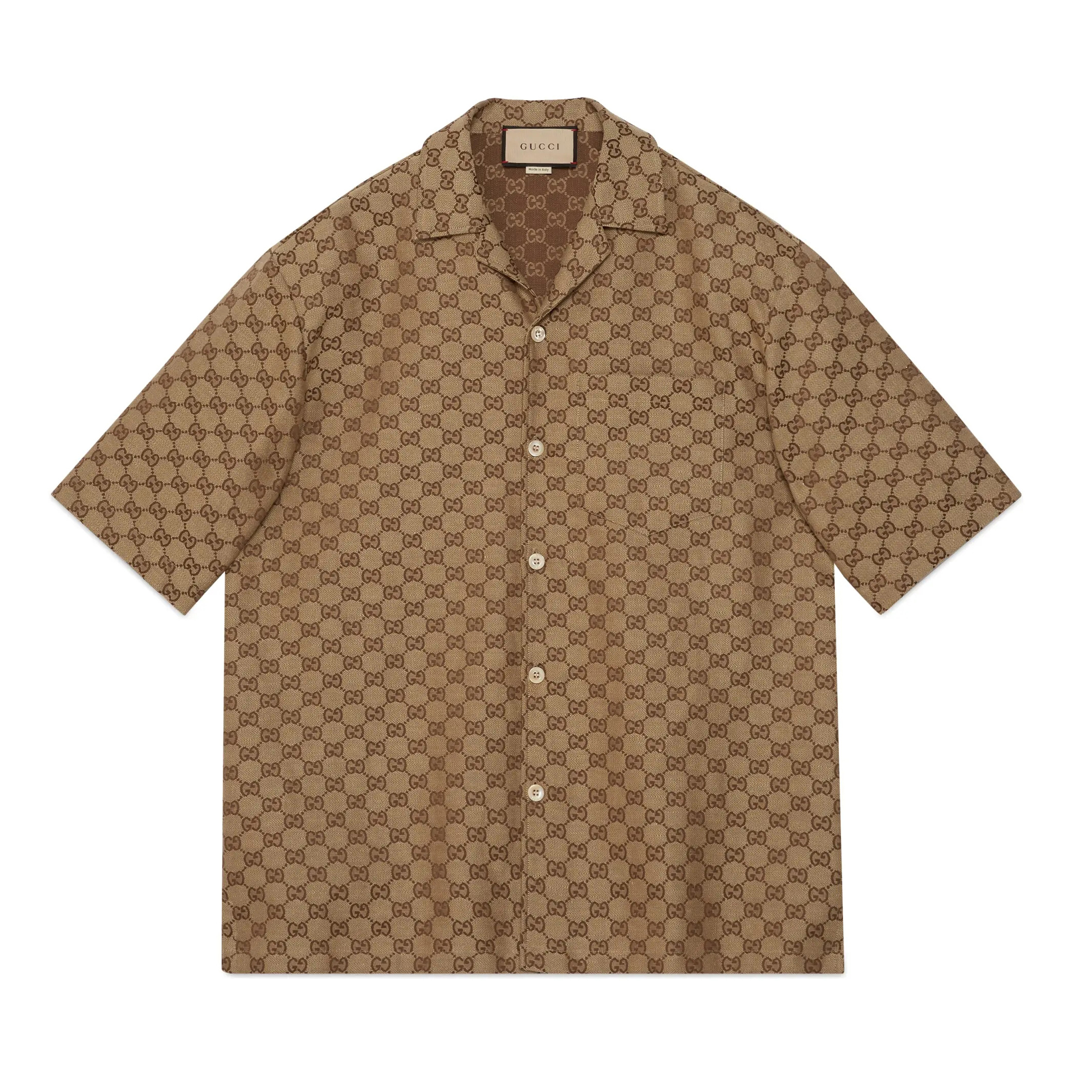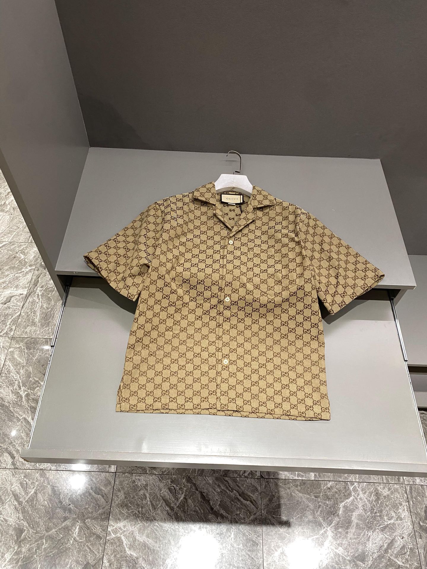 NIGO Gucci Men's Summer Blue Logo Pattern Full Print Single Breasted Short Sleeve Shirt Elastic Waist Shorts Set Suit #nigo72712