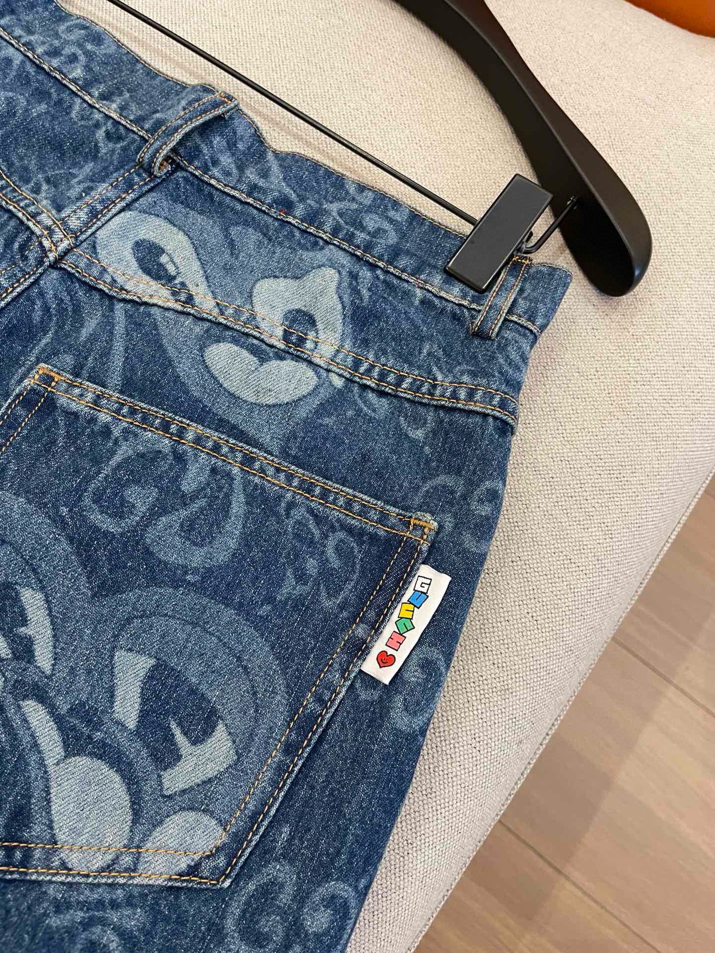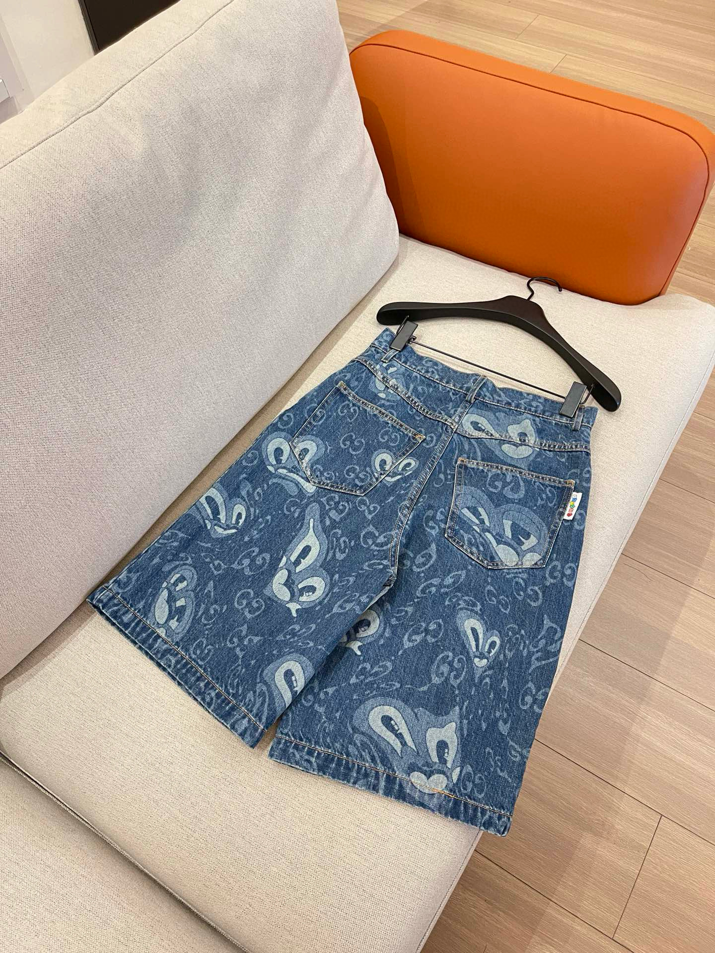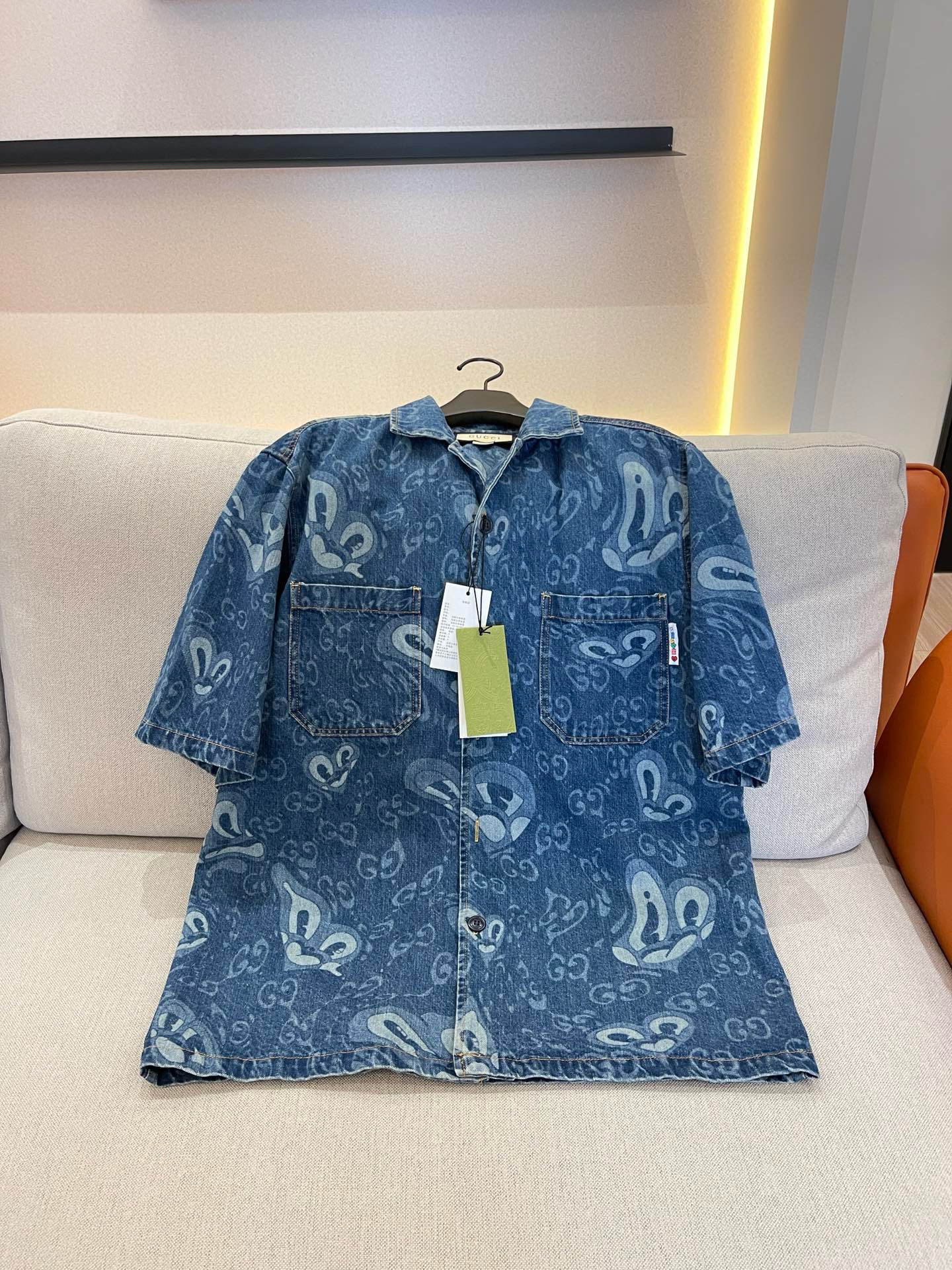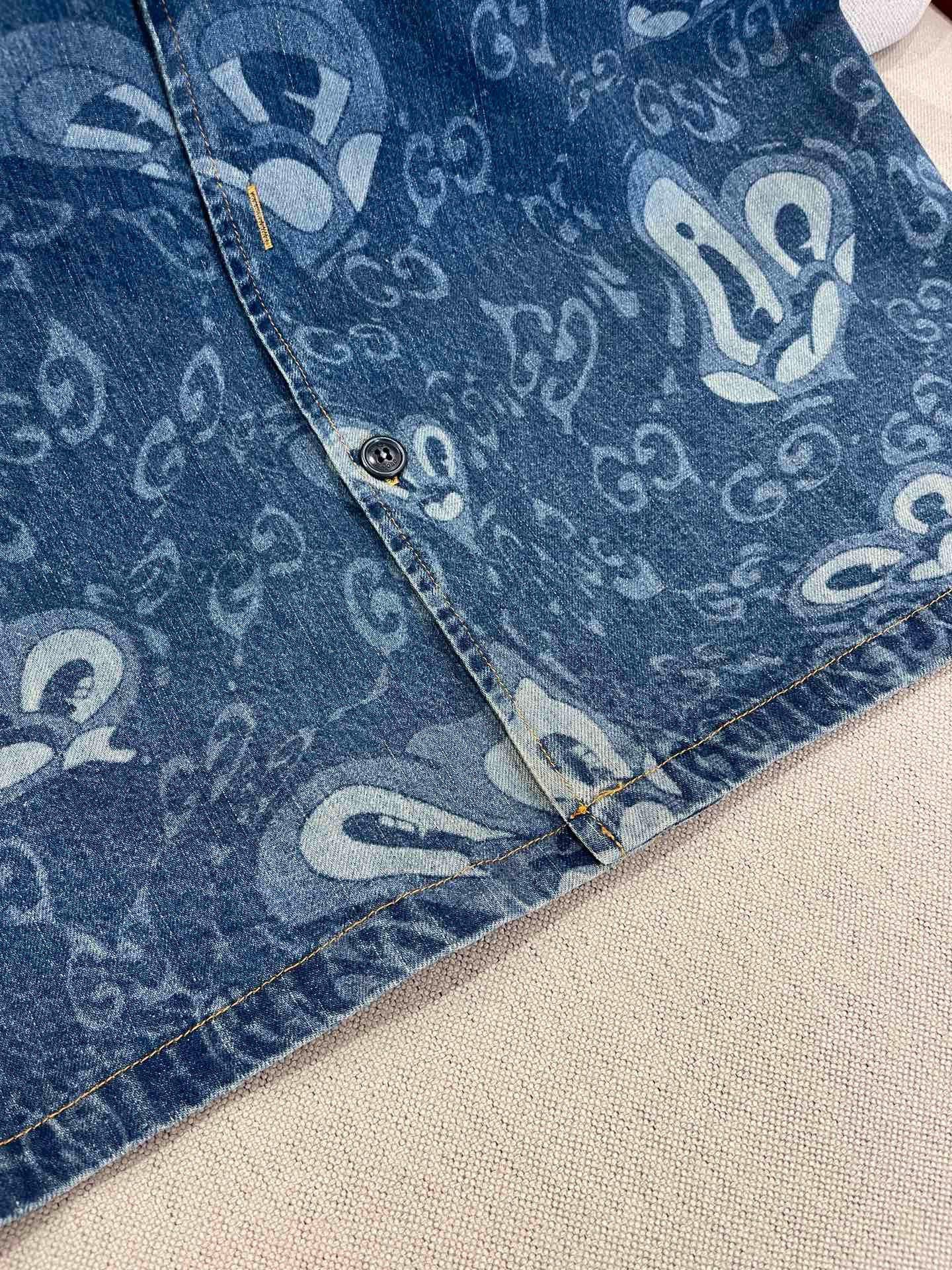 NIGO Gucci Men's Summer Pattern Printed Lapel Single Breasted Denim Short Sleeve Shirt Shorts Pants Set Suit #nigo99327