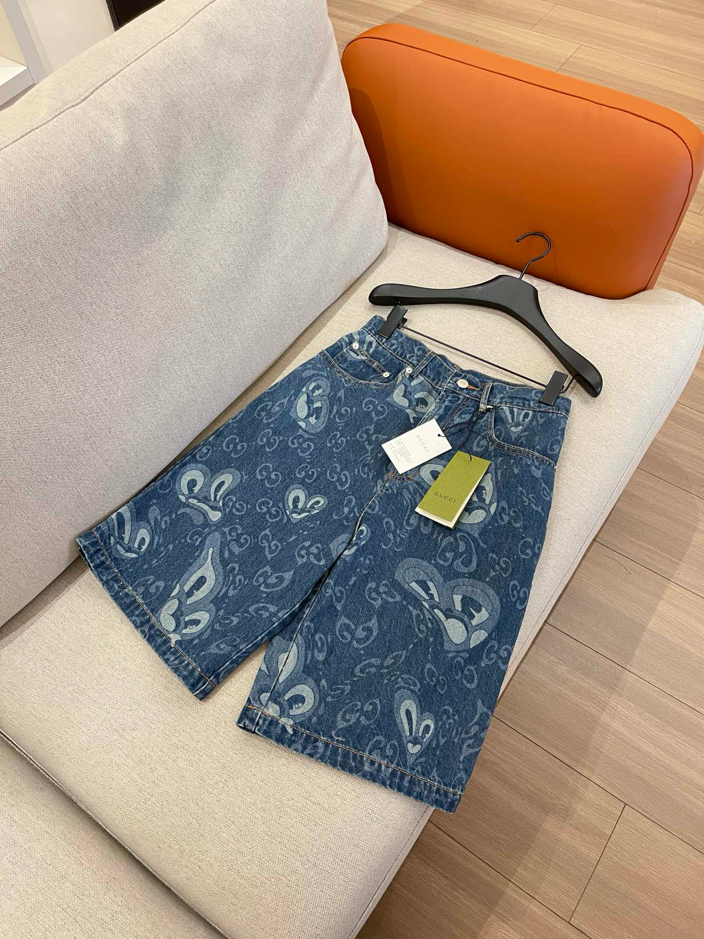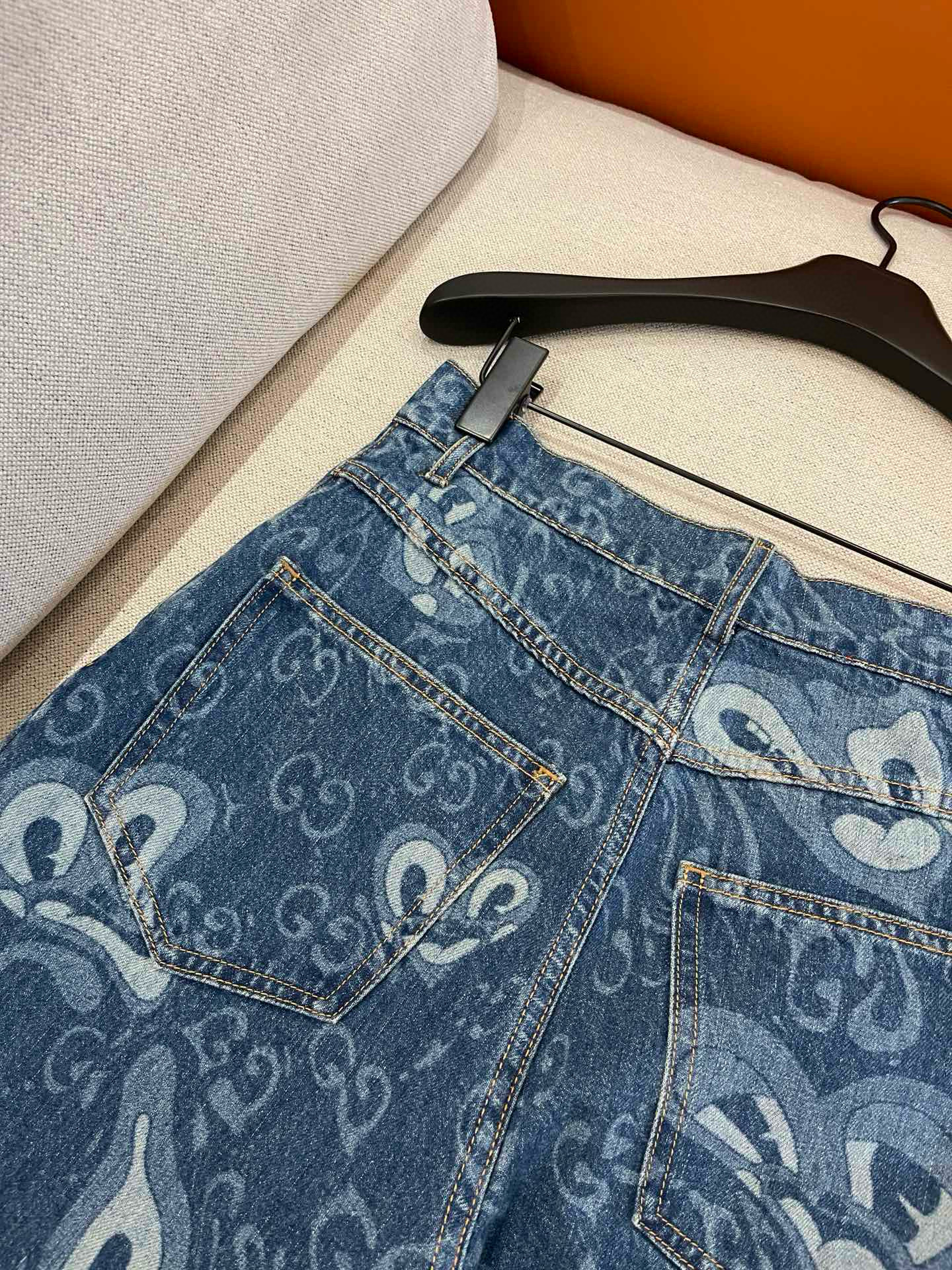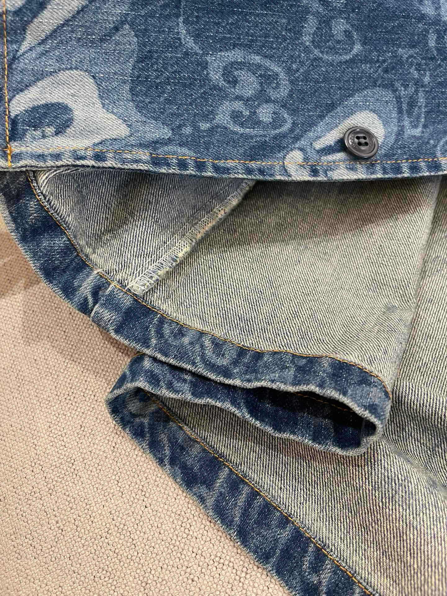 NIGO Gucci Men's Summer Pattern Printed Lapel Single Breasted Denim Short Sleeve Shirt Shorts Pants Set Suit #nigo99327
