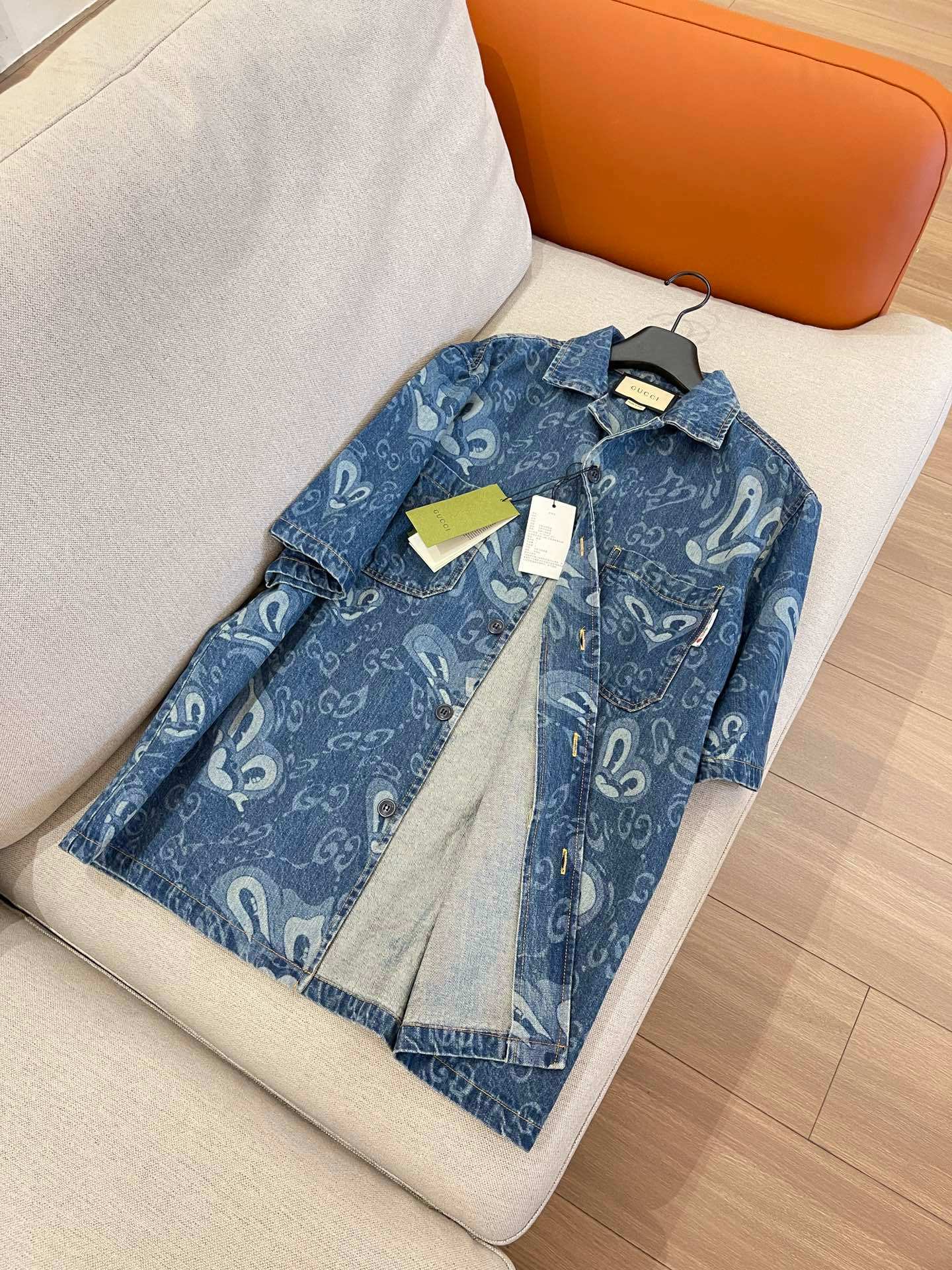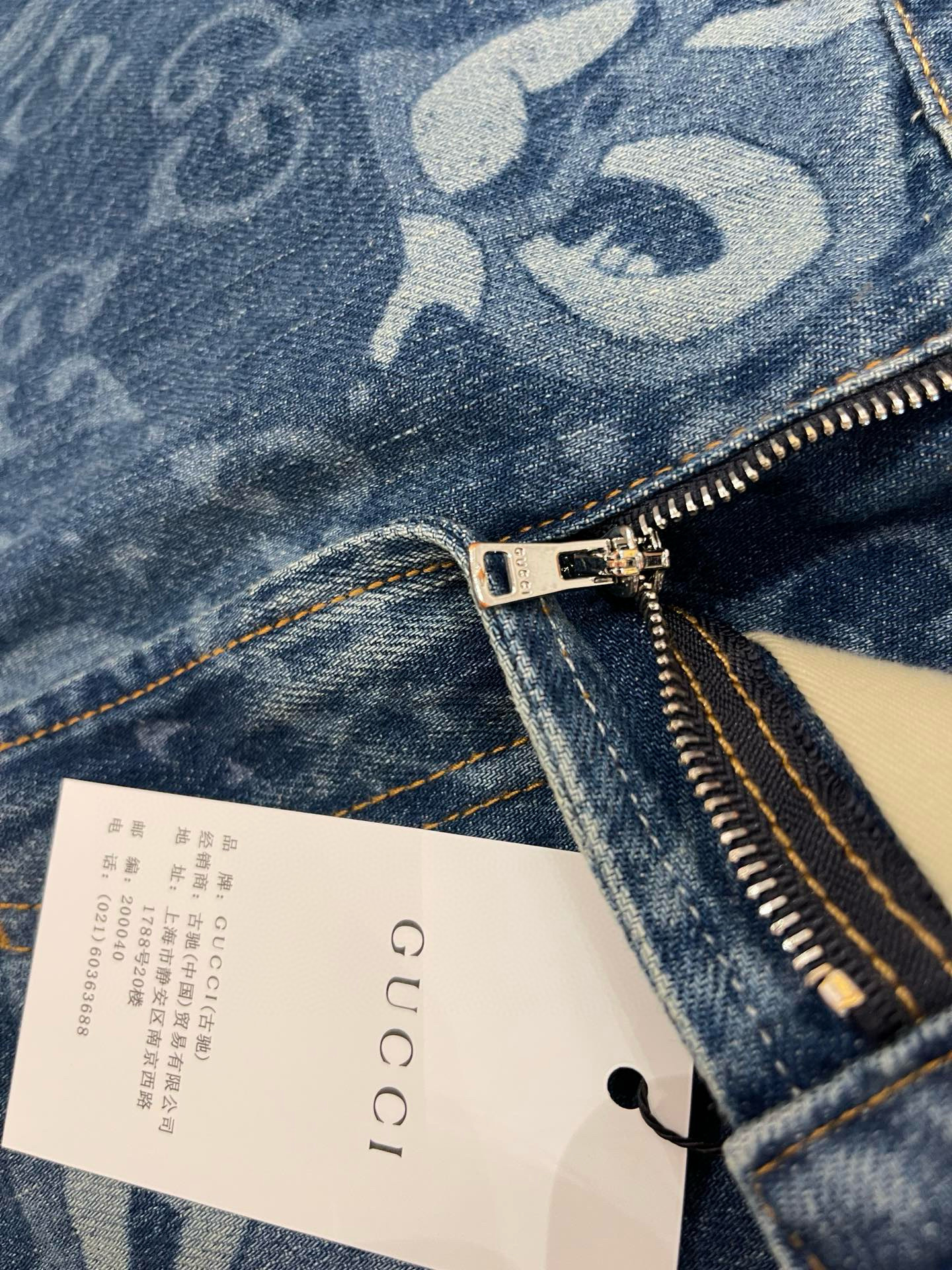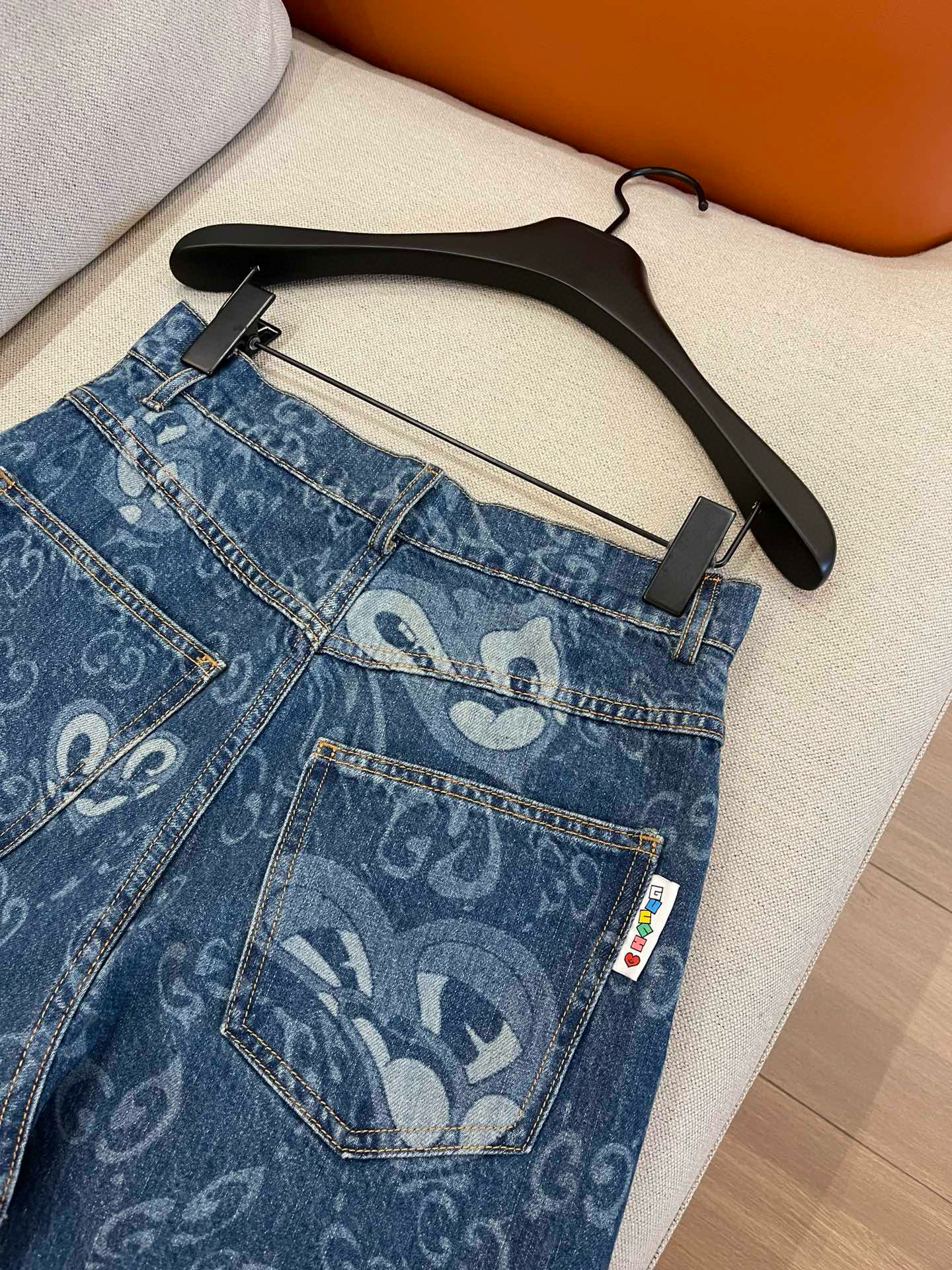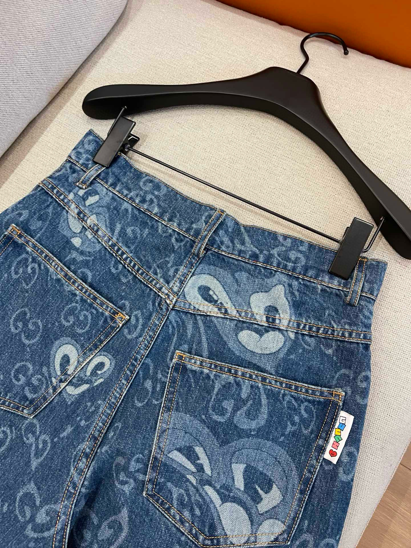 NIGO Gucci Men's Summer Pattern Printed Lapel Single Breasted Denim Short Sleeve Shirt Shorts Pants Set Suit #nigo99327