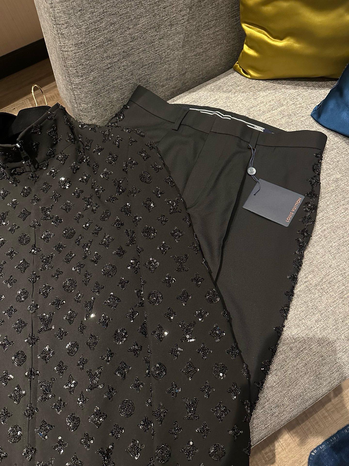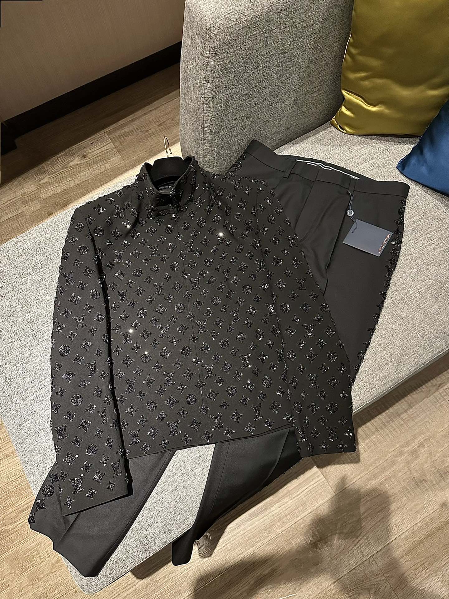 NIGO Louis Vuitton Men's Spring and Autumn Black Evening Drawstring Zipper Standing Collar Jacket Casual Pants Suit Set #nigo72849