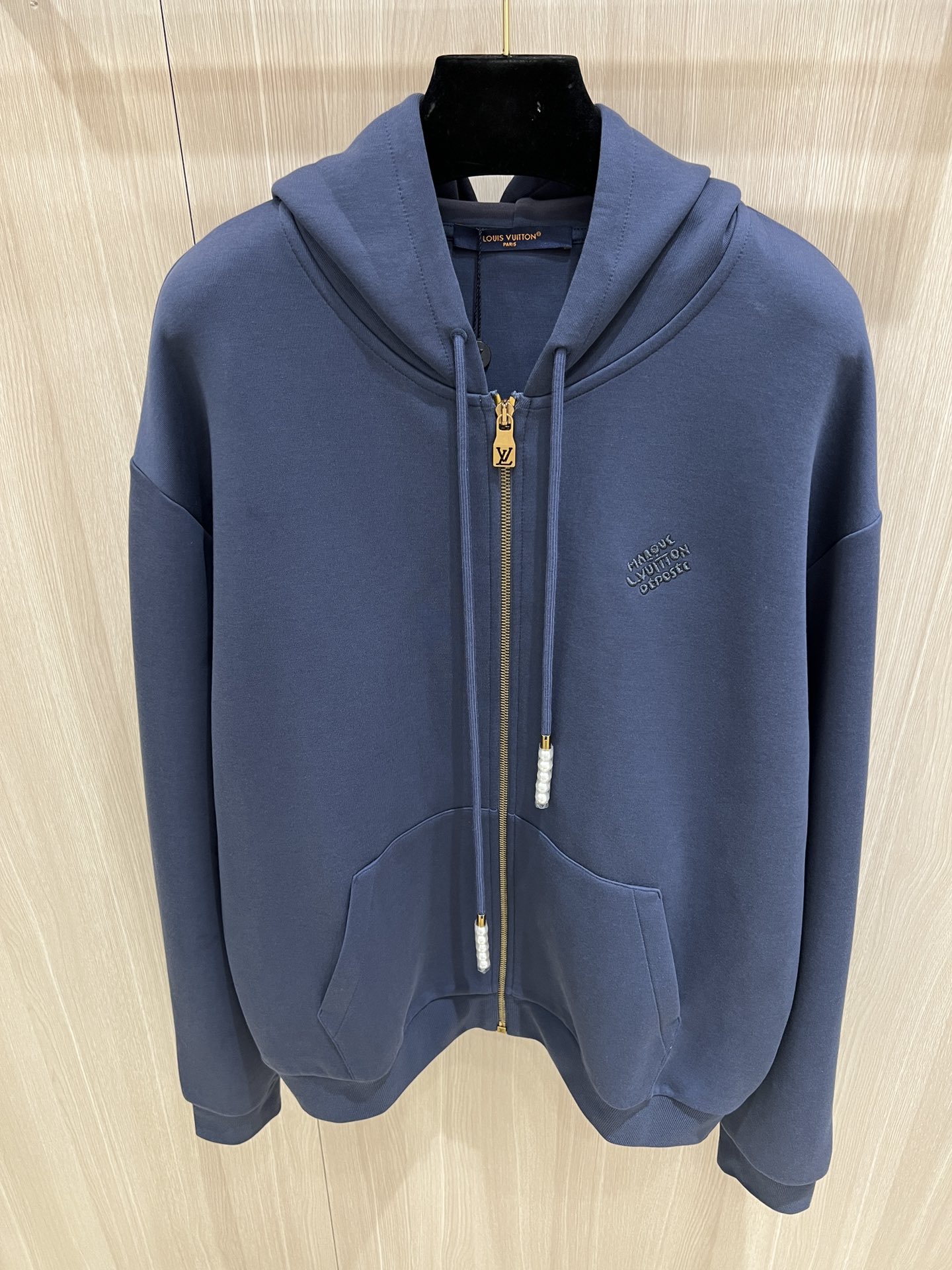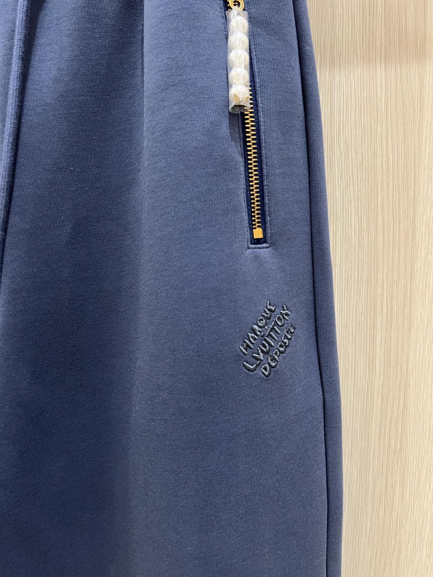 NIGO Louis Vuitton Men's Spring and Autumn Blue Embroidery Letter Logo Pearl Pendant Hooded Zipper Jacket Lace-Up Trousers Pants Set Suit #nigo99763