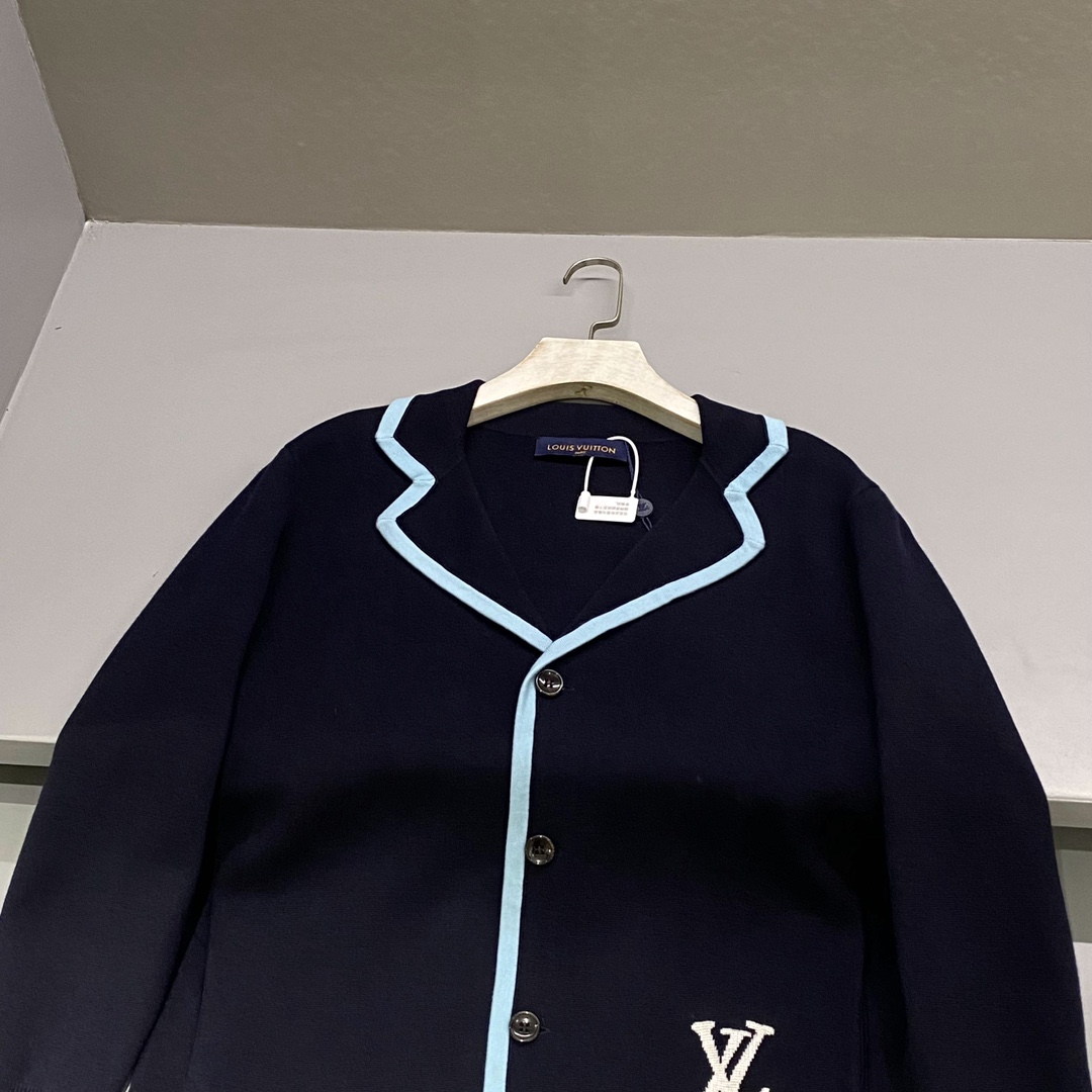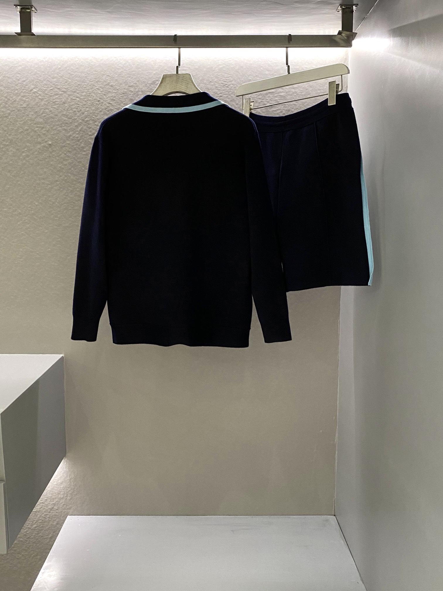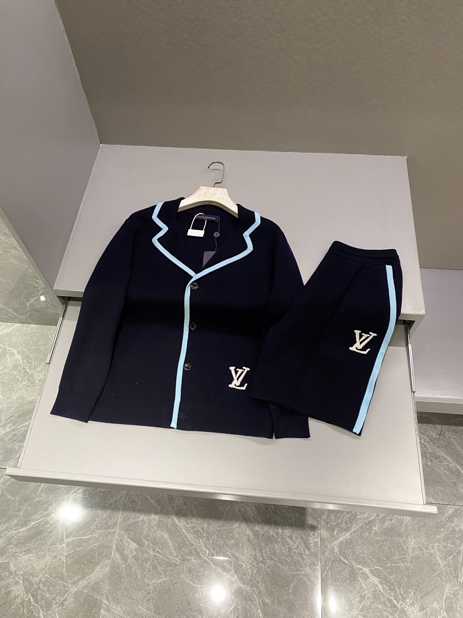 NIGO Louis Vuitton Men's Spring and Autumn Navy Logo Applique Single Breasted Long Sleeve Knit Shirt Jacket High Waisted Loose Shorts Set Suit #nigo99639