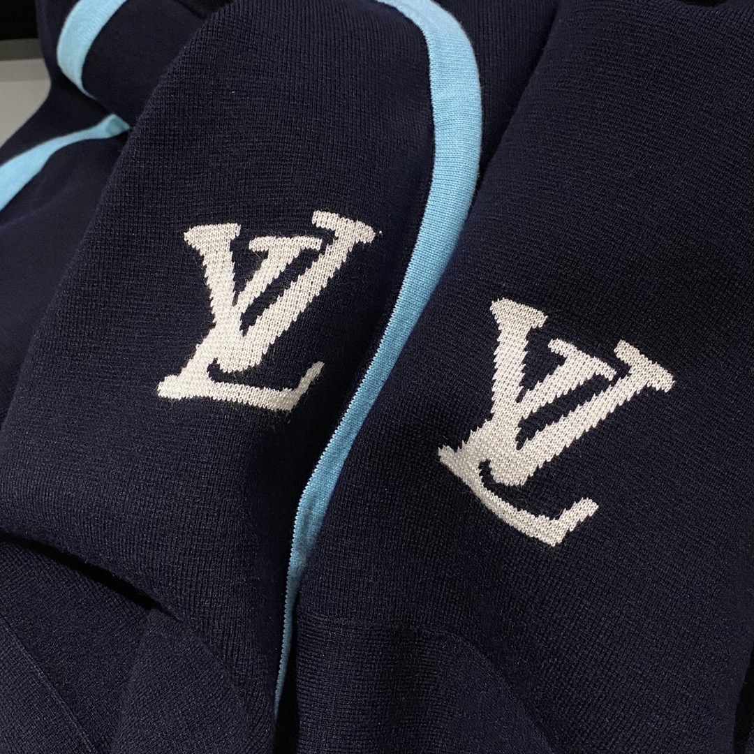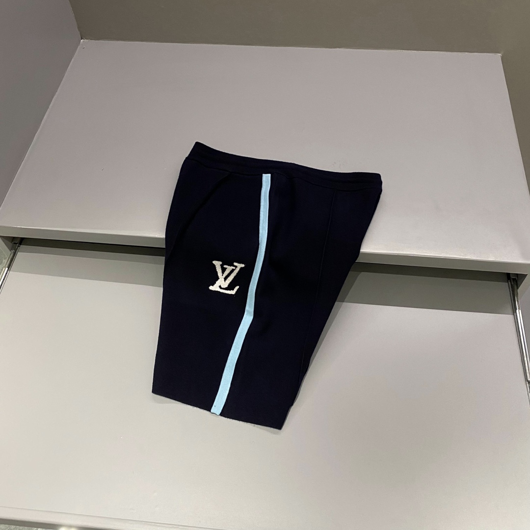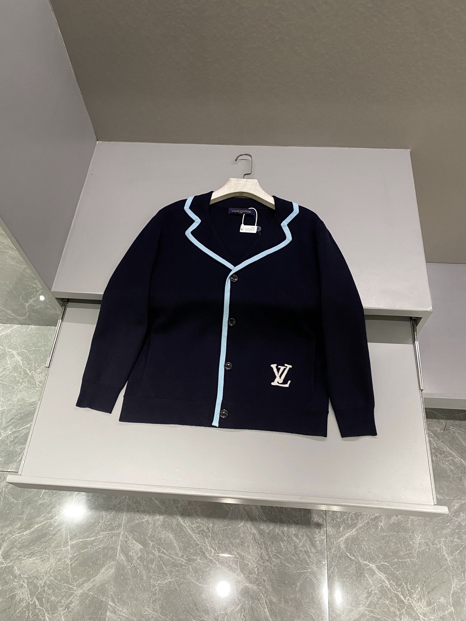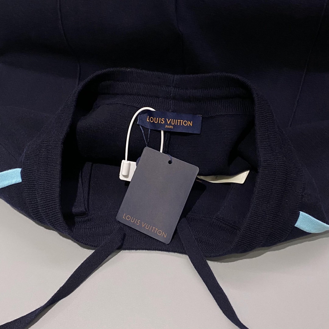 NIGO Louis Vuitton Men's Spring and Autumn Navy Logo Applique Single Breasted Long Sleeve Knit Shirt Jacket High Waisted Loose Shorts Set Suit #nigo99639