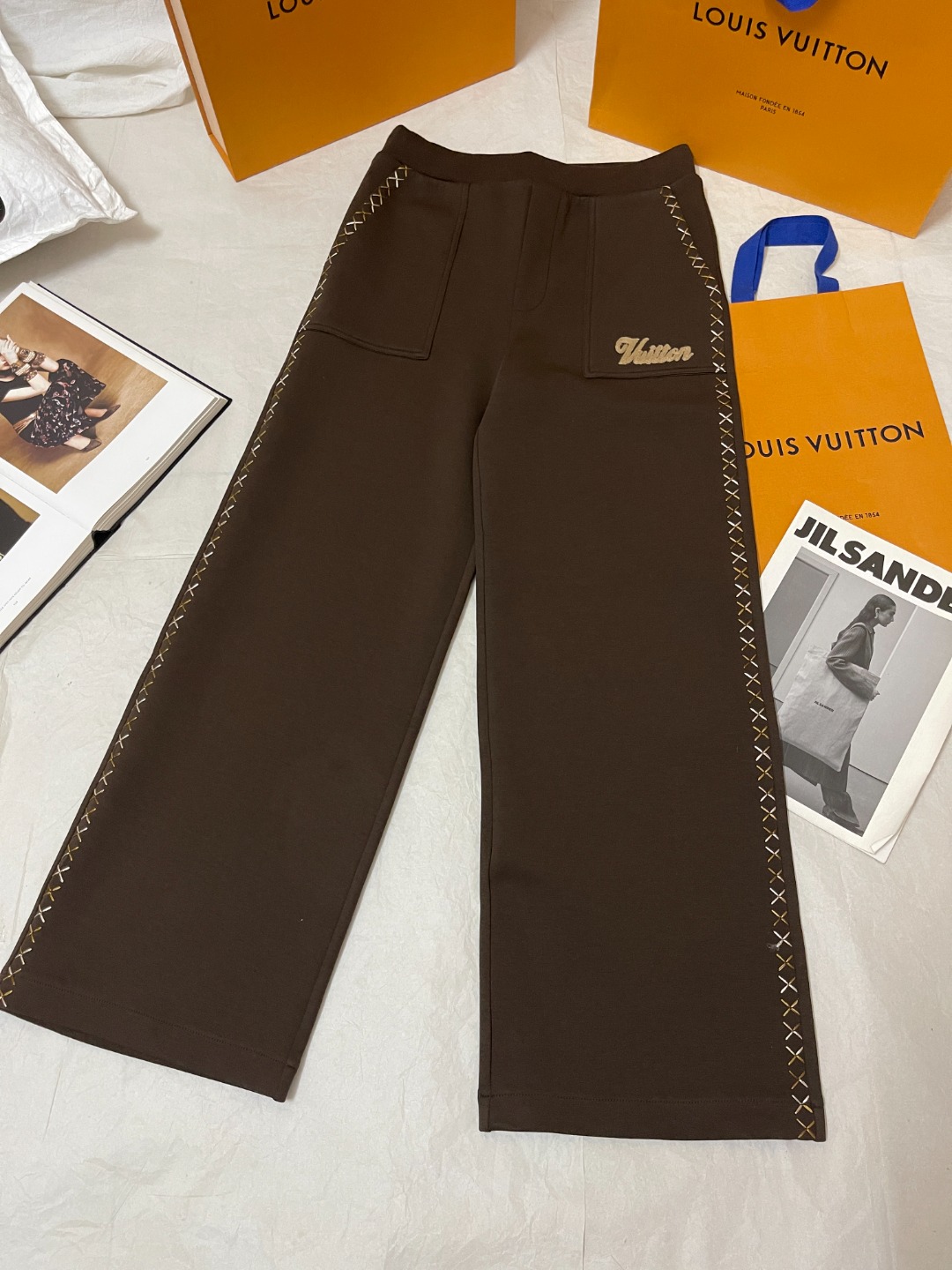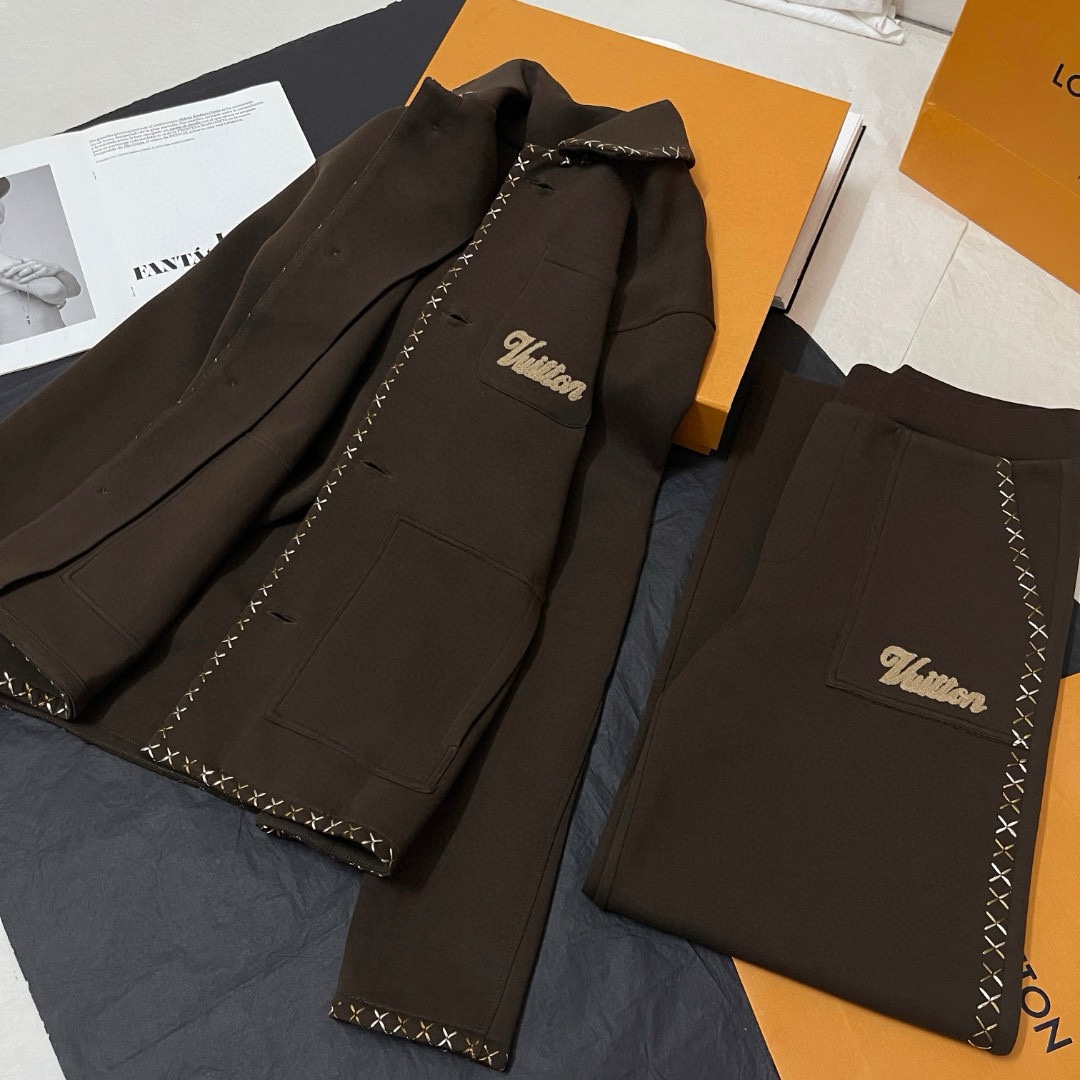 NIGO Louis Vuitton Men's Spring And Fall Brown Embroidered Letters Logo Single Breasted Long Sleeved Jacket Drawstring Tie Casual Pants Suit Set #nigo73225