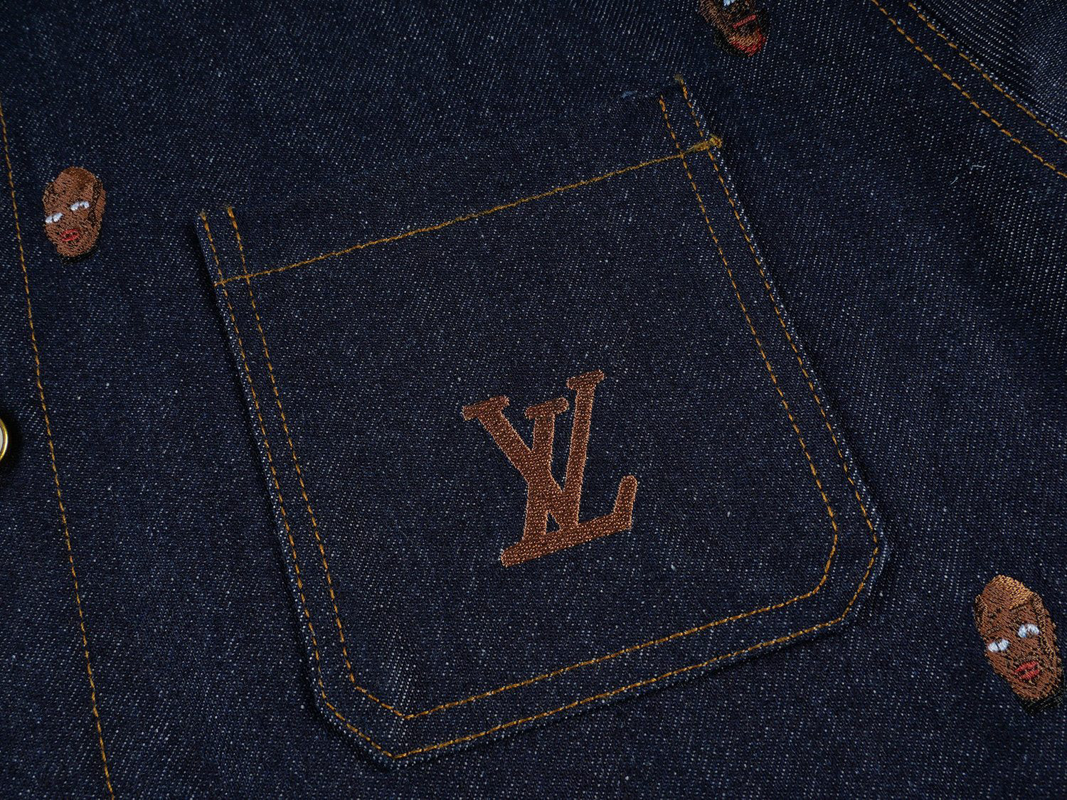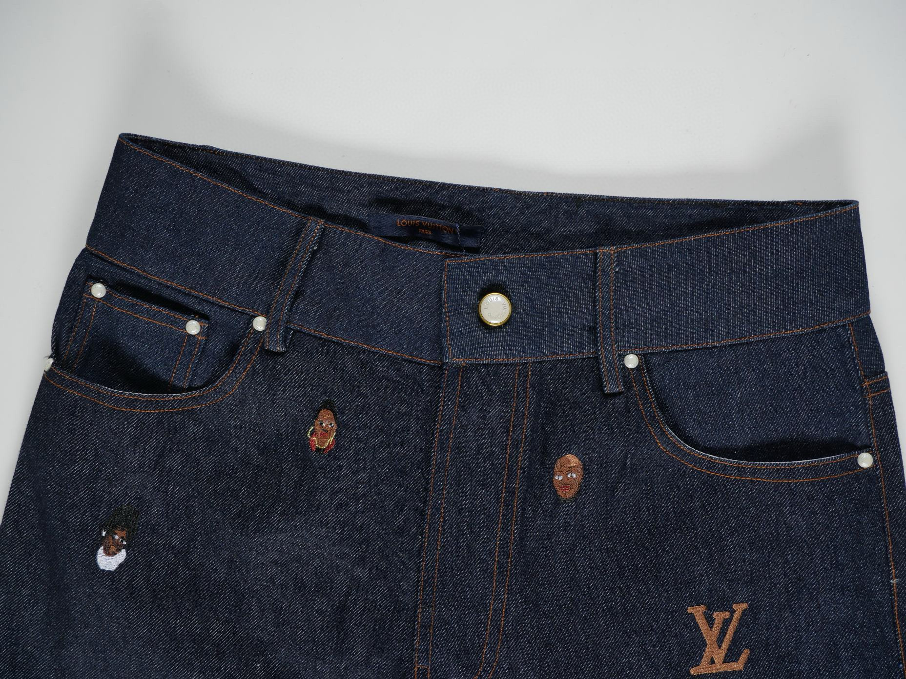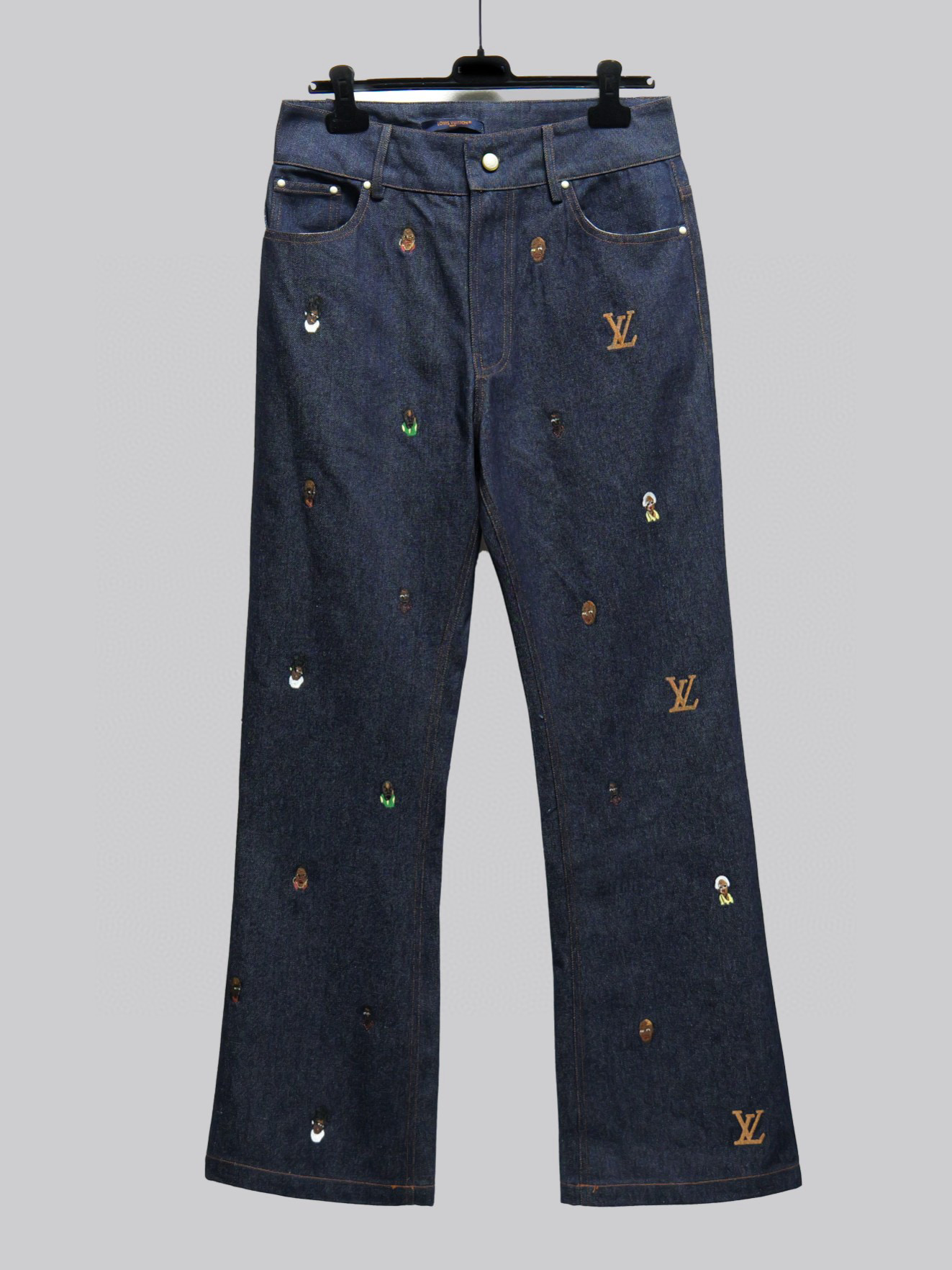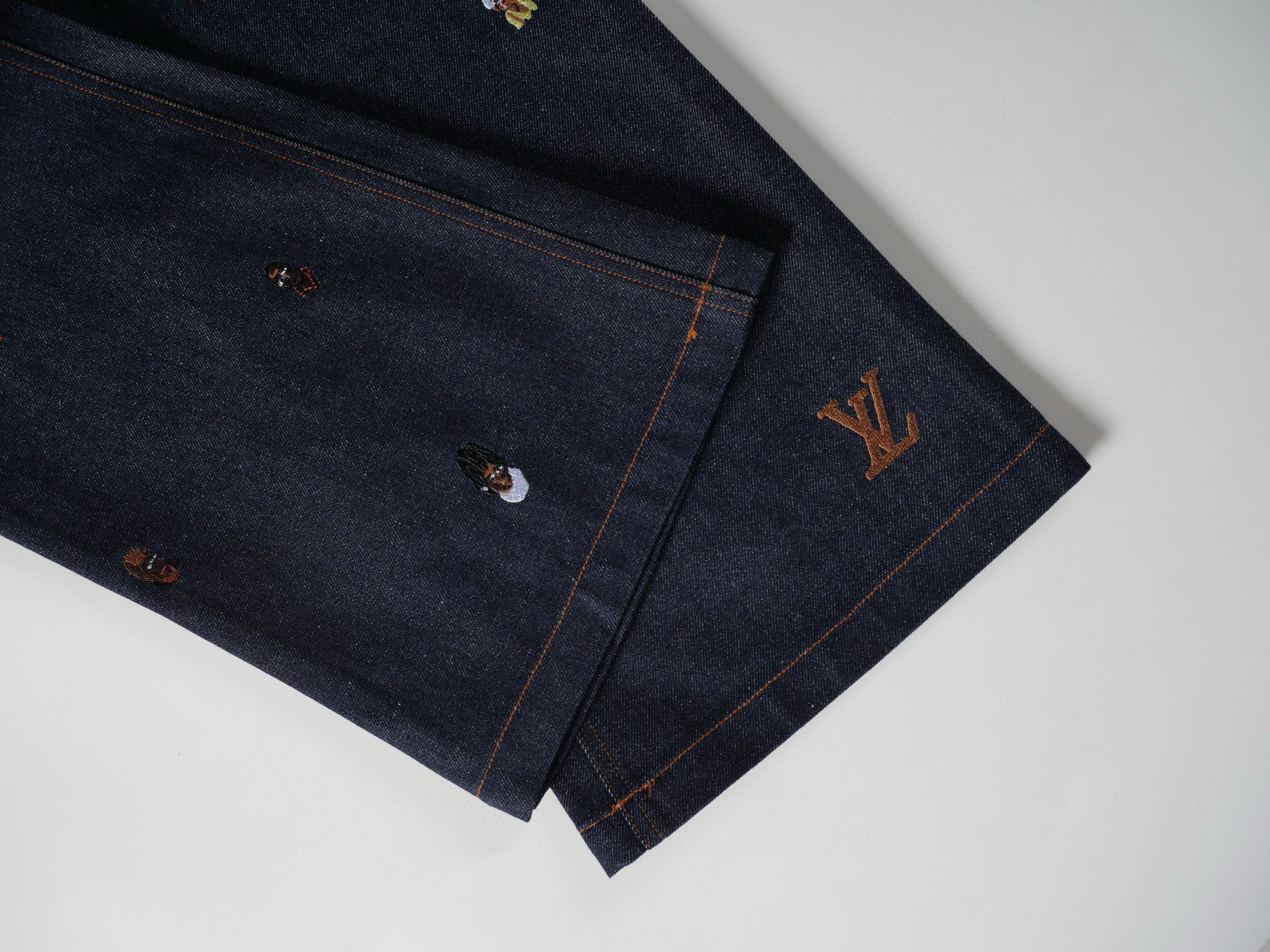 NIGO Louis Vuitton Men's Spring And Fall Dark Blue Monogrammed Embroidered Single-breasted Button Lapel Loose Casual Denim Long-sleeved Jacket Flared Jeans Pants Set Suit #nigo73275