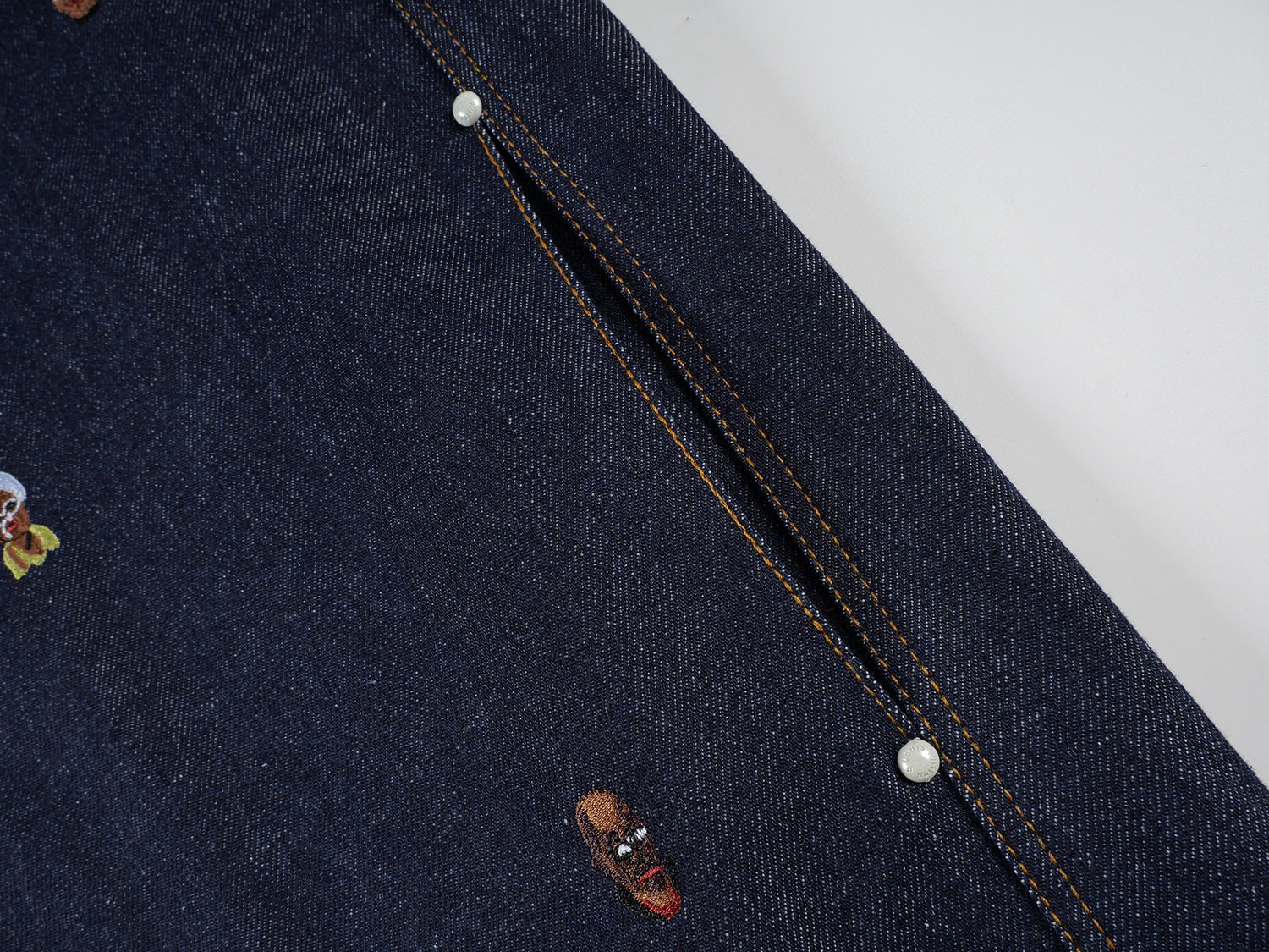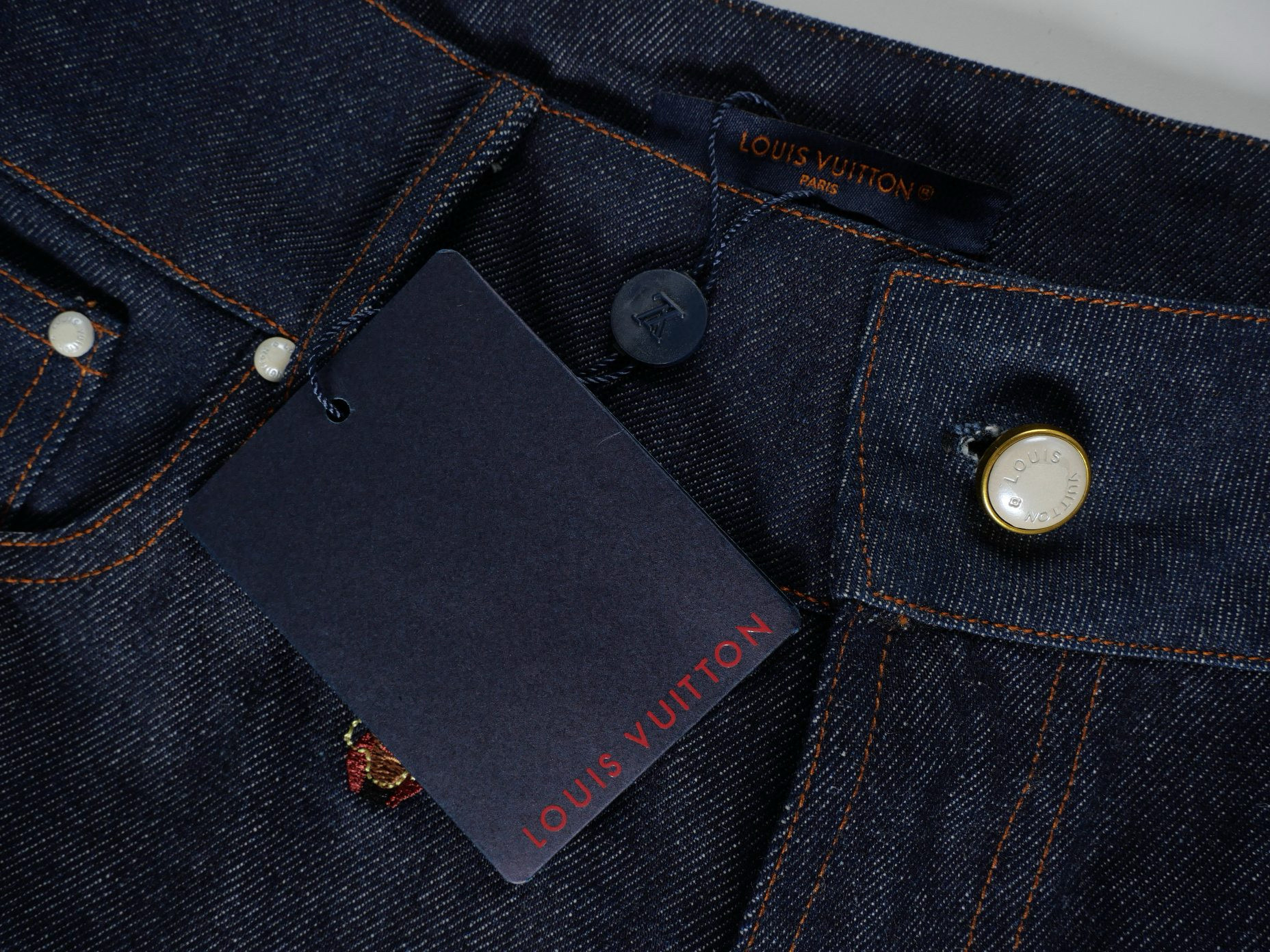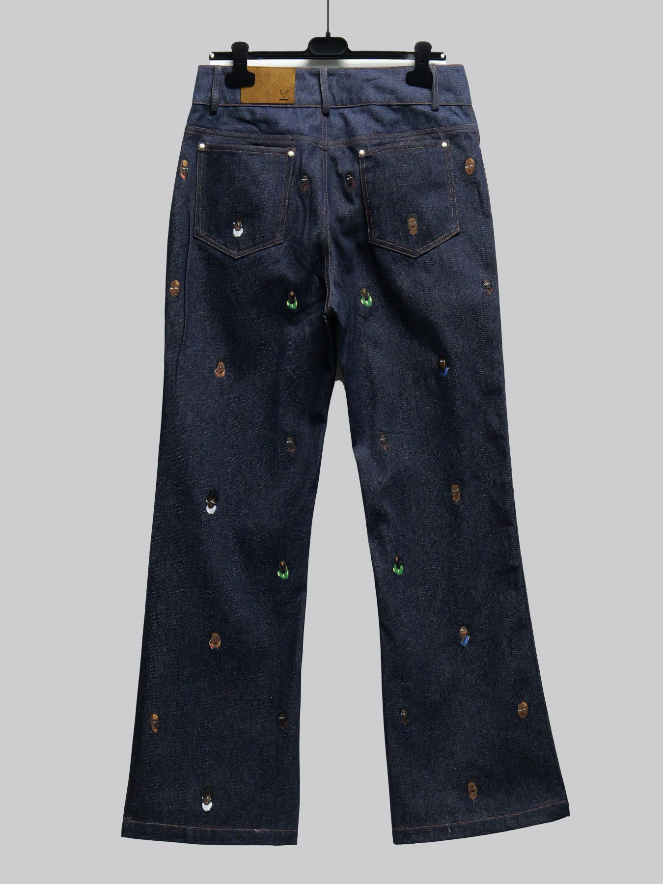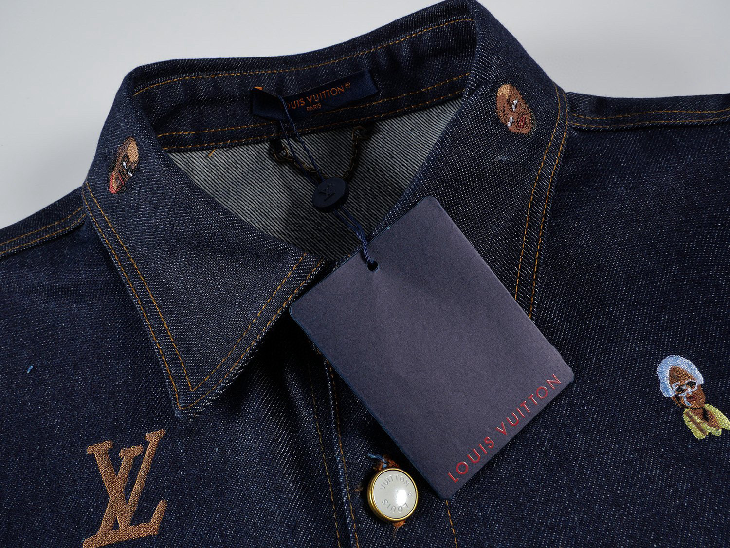 NIGO Louis Vuitton Men's Spring And Fall Dark Blue Monogrammed Embroidered Single-breasted Button Lapel Loose Casual Denim Long-sleeved Jacket Flared Jeans Pants Set Suit #nigo73275