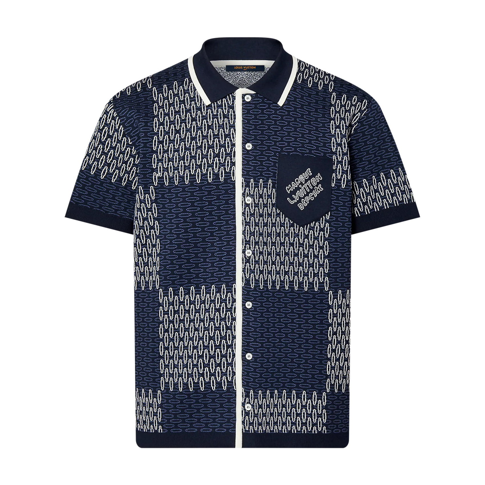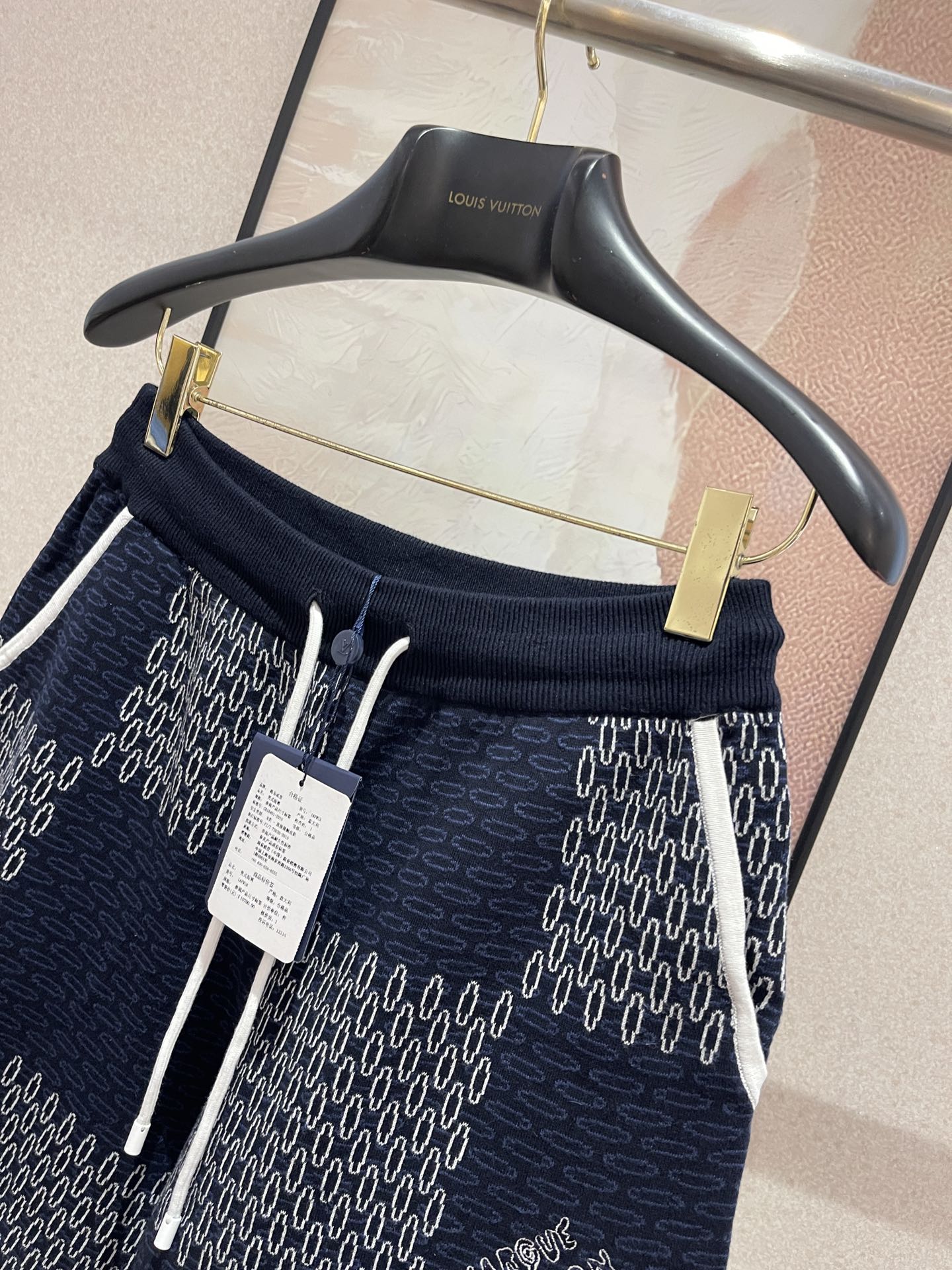 NIGO Louis Vuitton Men's Spring And Summer Letter Jacquard Knit Single Breasted Short Sleeved Shirt Drawstring Casual Shorts Suit Set #nigo73114
