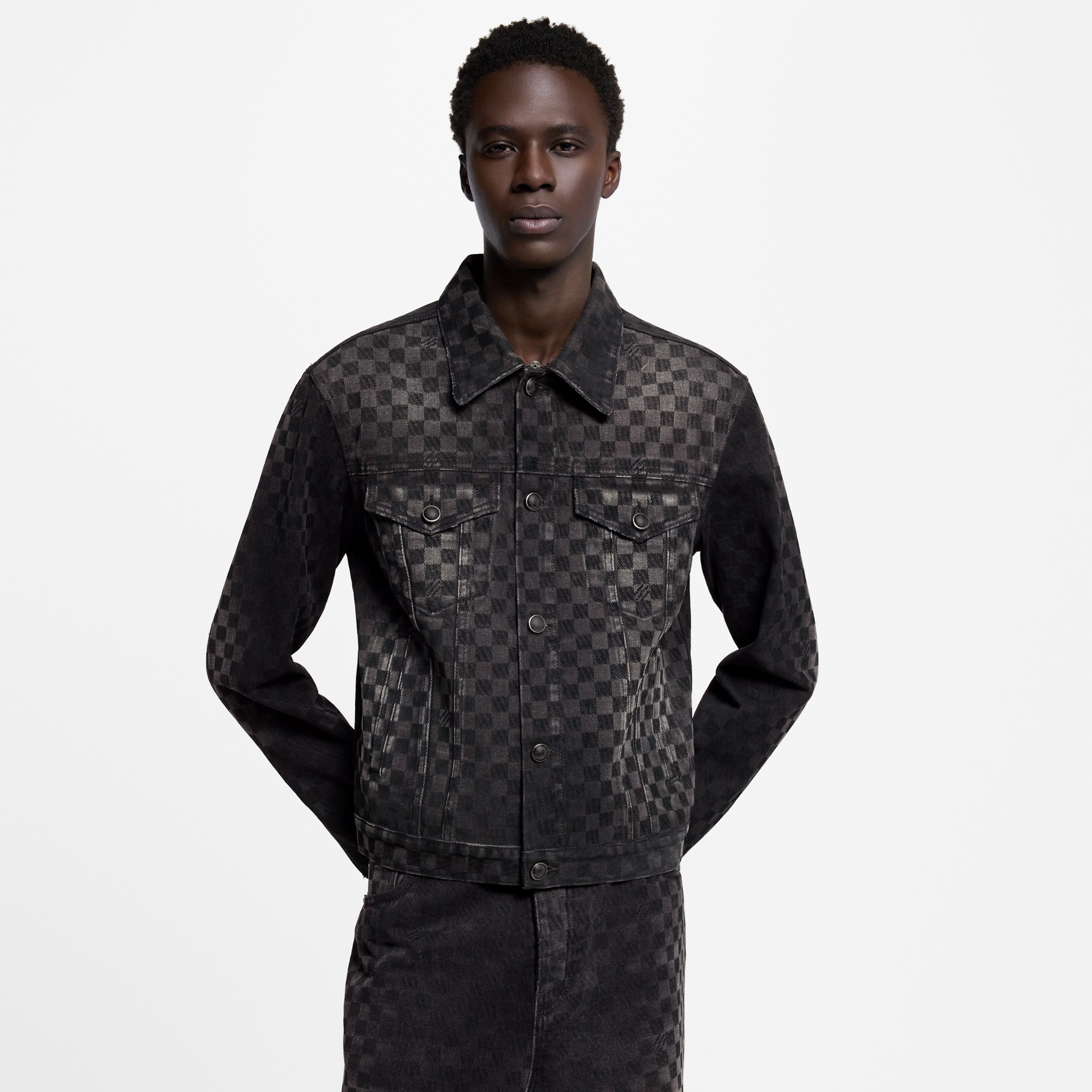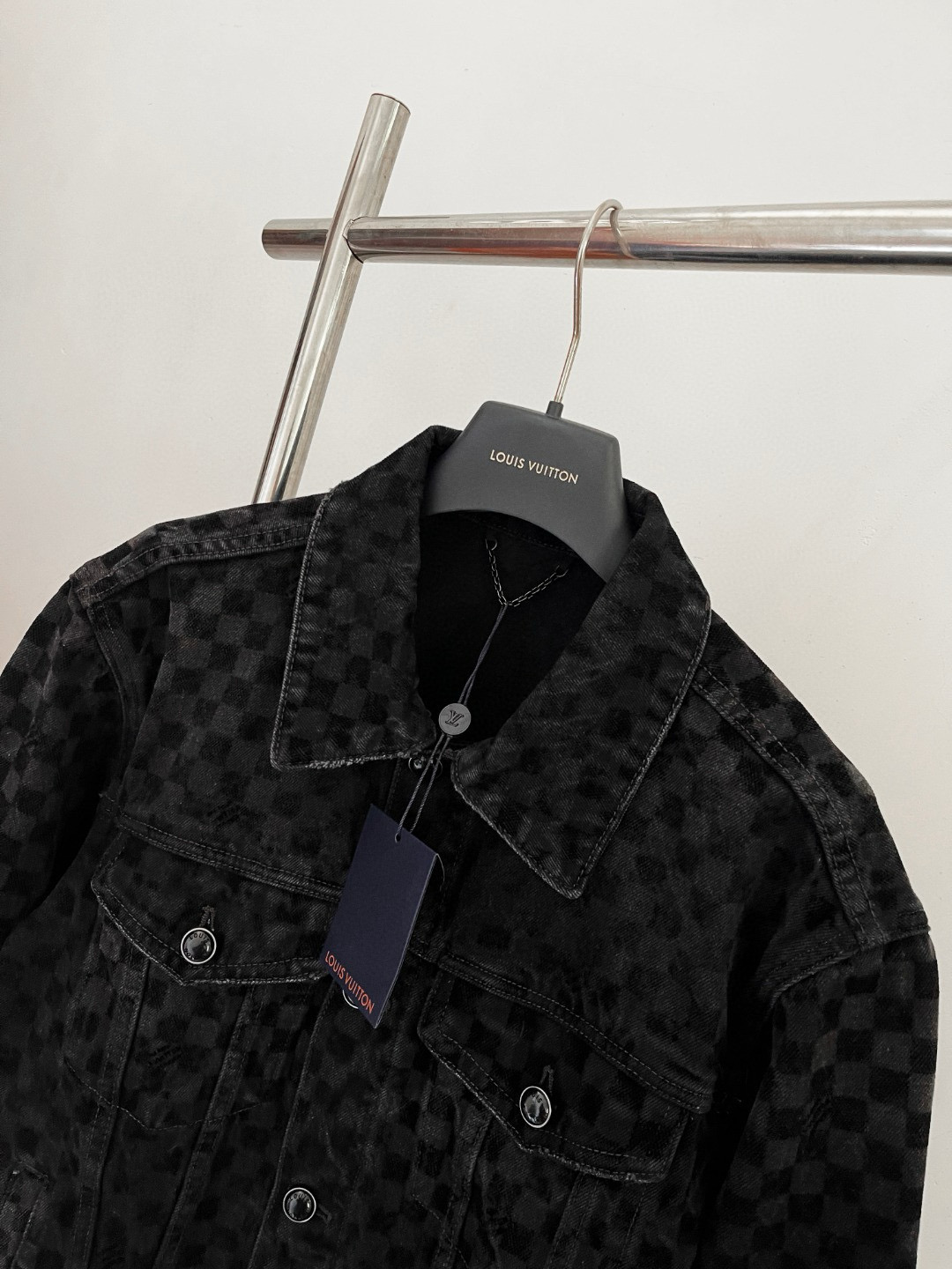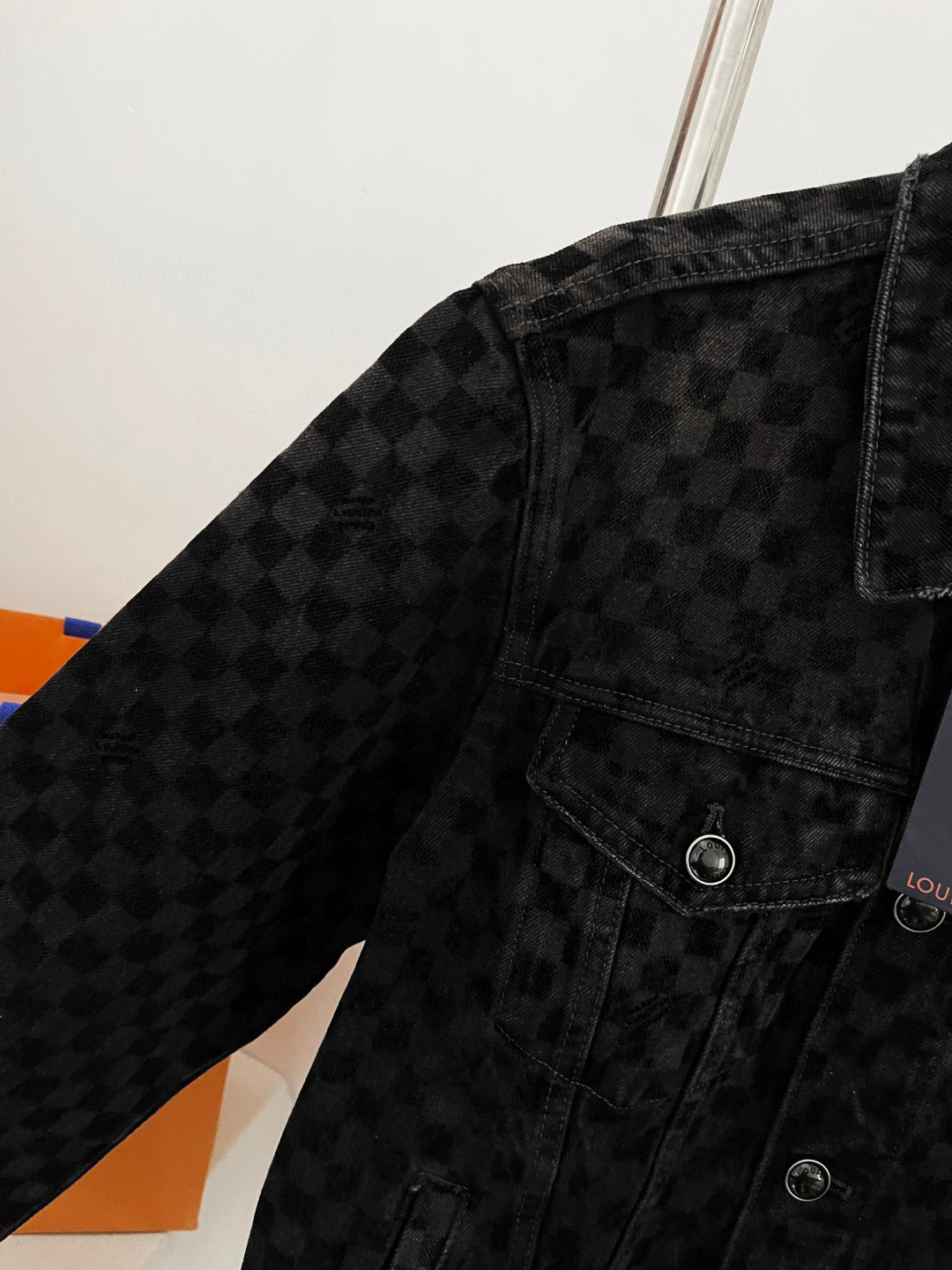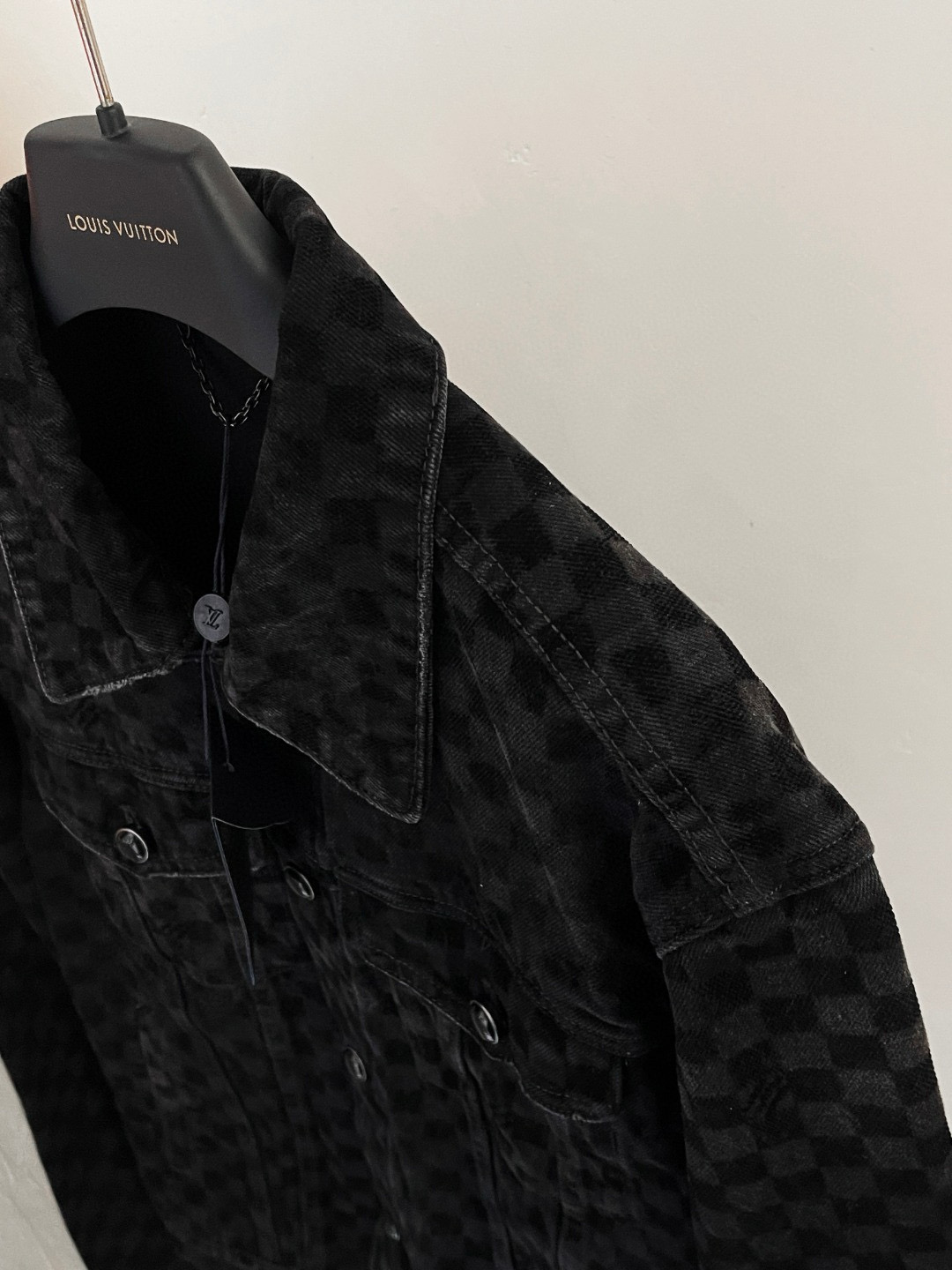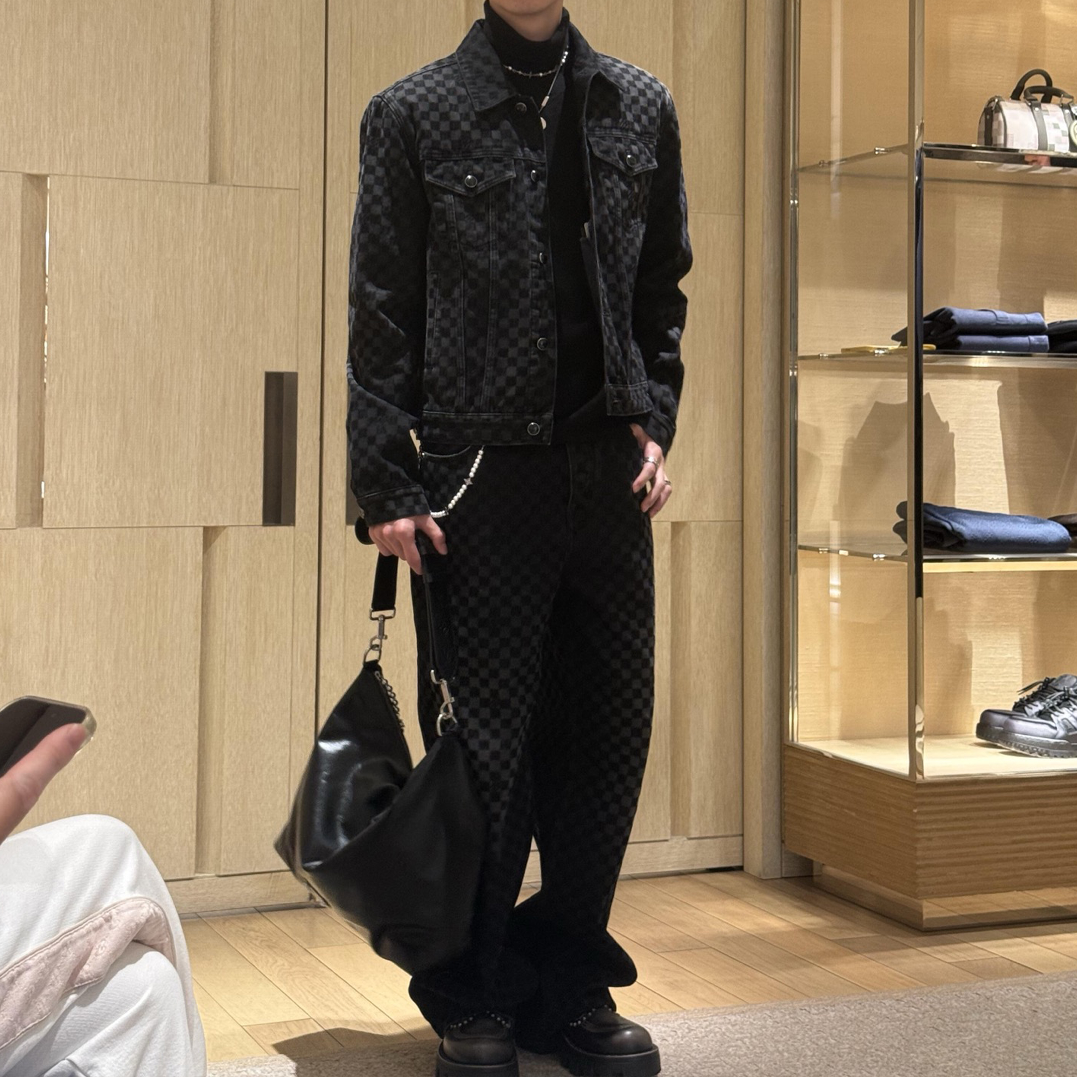 NIGO Louis Vuitton Men's Spring Autumn Black Checkered Damier Flocked Suit Lapel Single Breasted Long Sleeve Jacket Straight Wide Leg Trousers Suit Set #nigo81138
