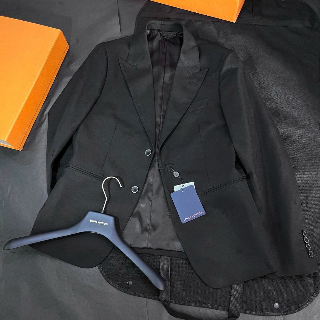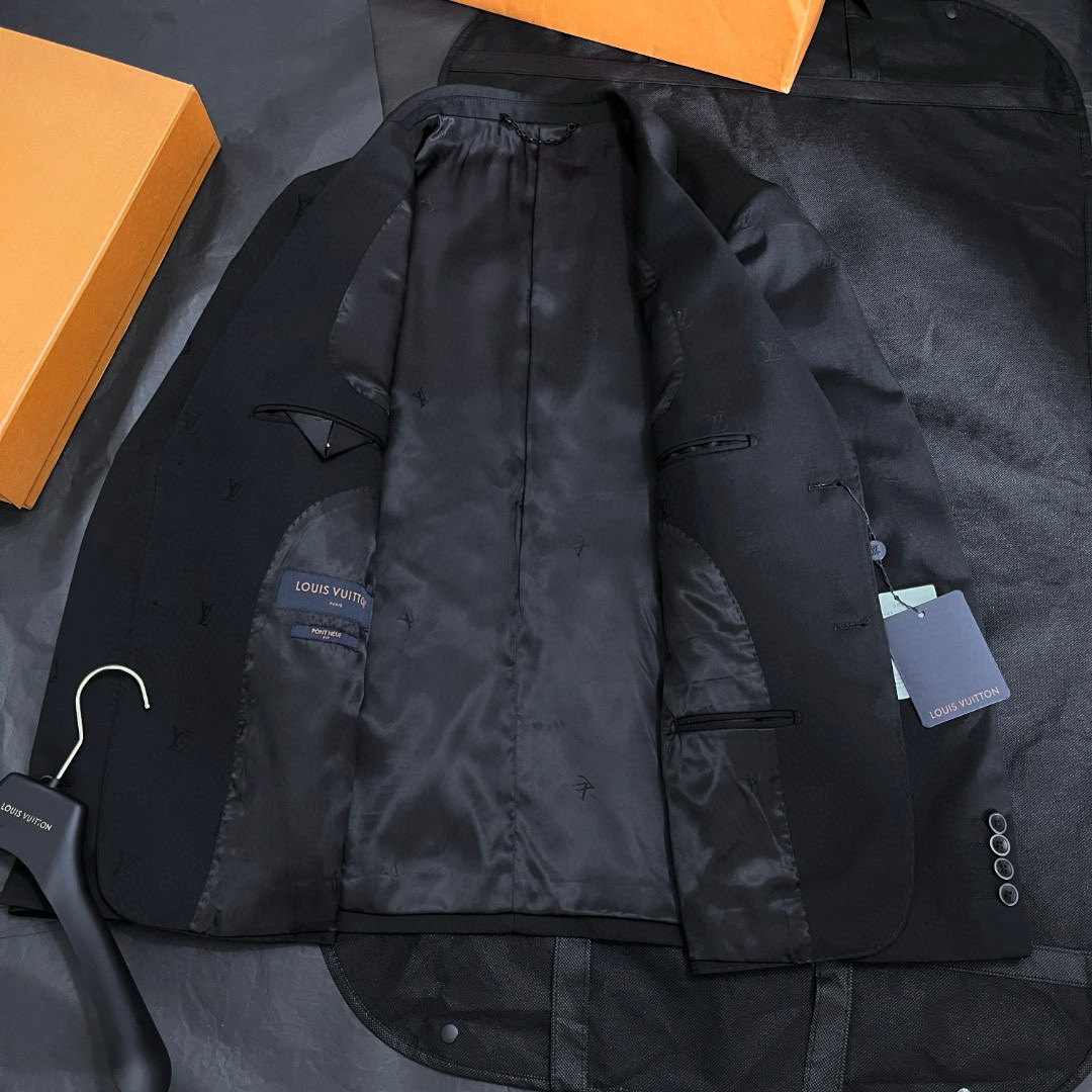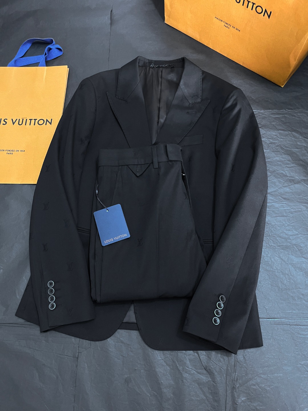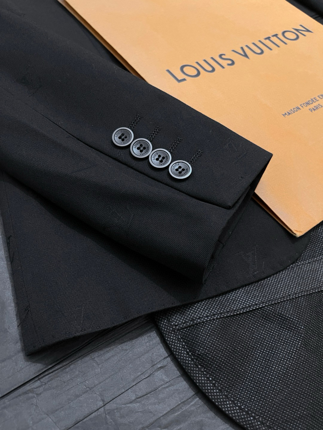 NIGO Louis Vuitton Men's Spring/Autumn Solid Colour Embroidered Hidden Pattern Printed V-Neck Single-Breasted Long-Sleeved Suit Jacket and Trousers Set Suit #nigo77442