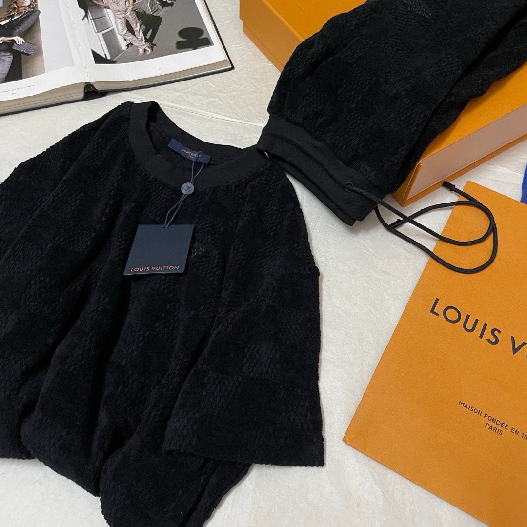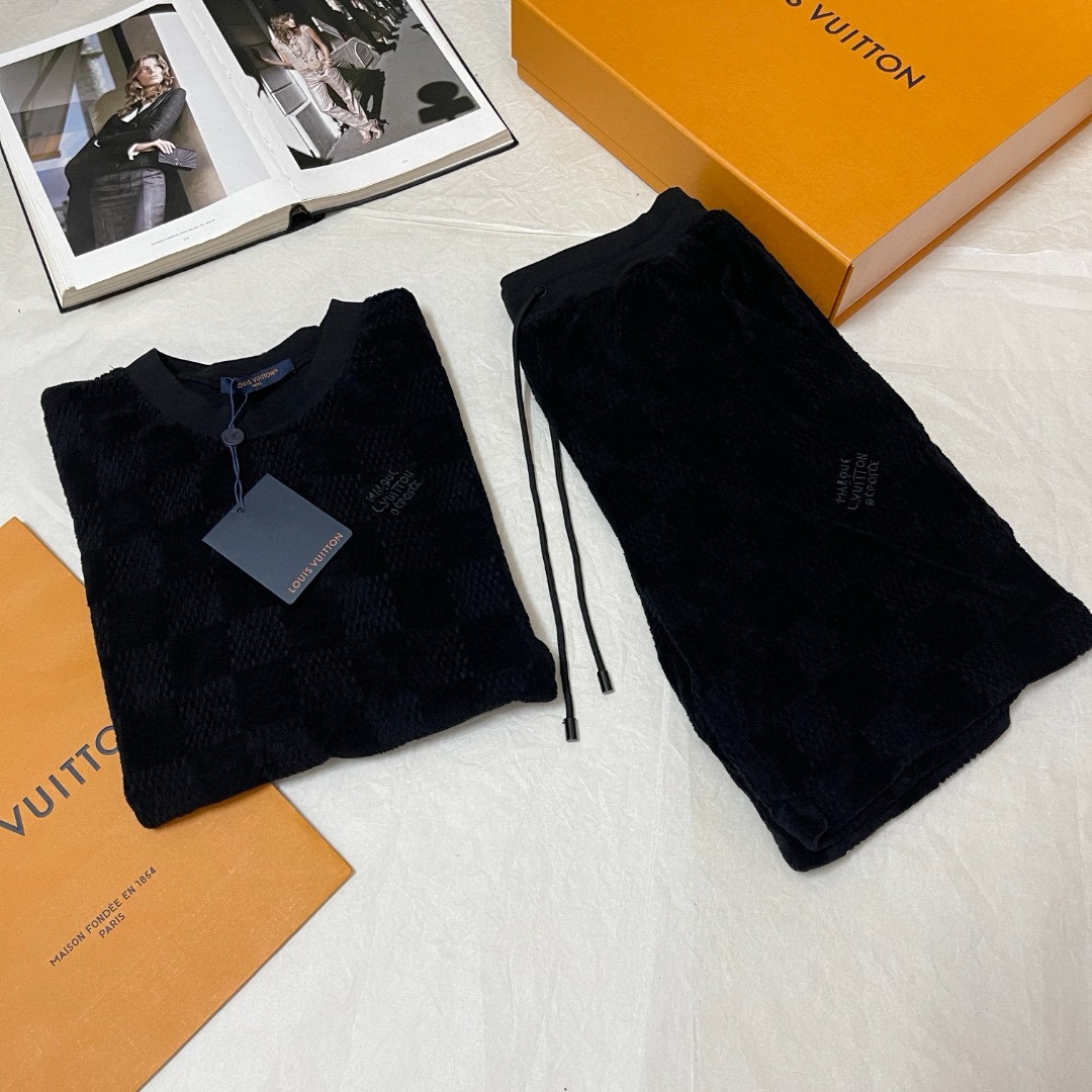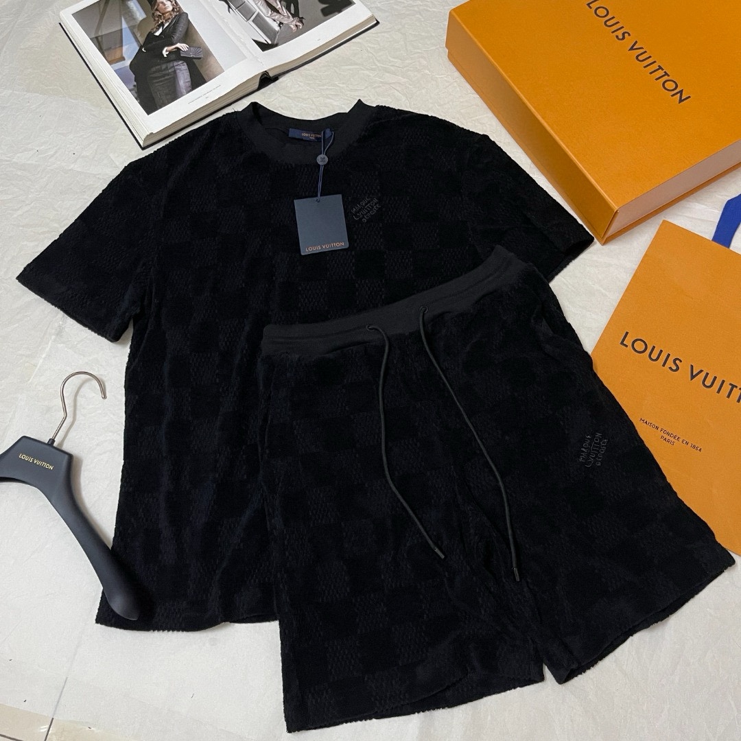 NIGO Louis Vuitton Men's Summer Black Embroidered Logo Printed Cotton Short Sleeve T-Shirt Casual Shorts Set Suit #nigo73129