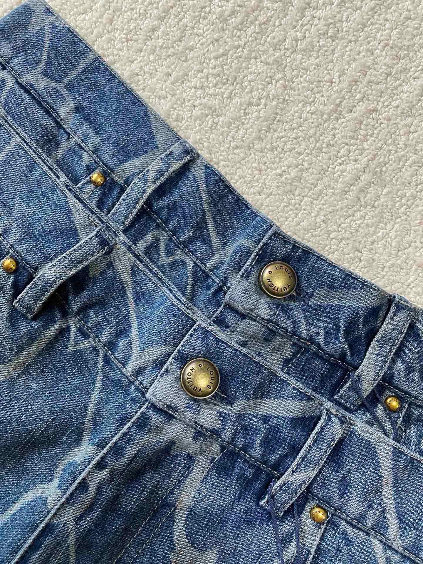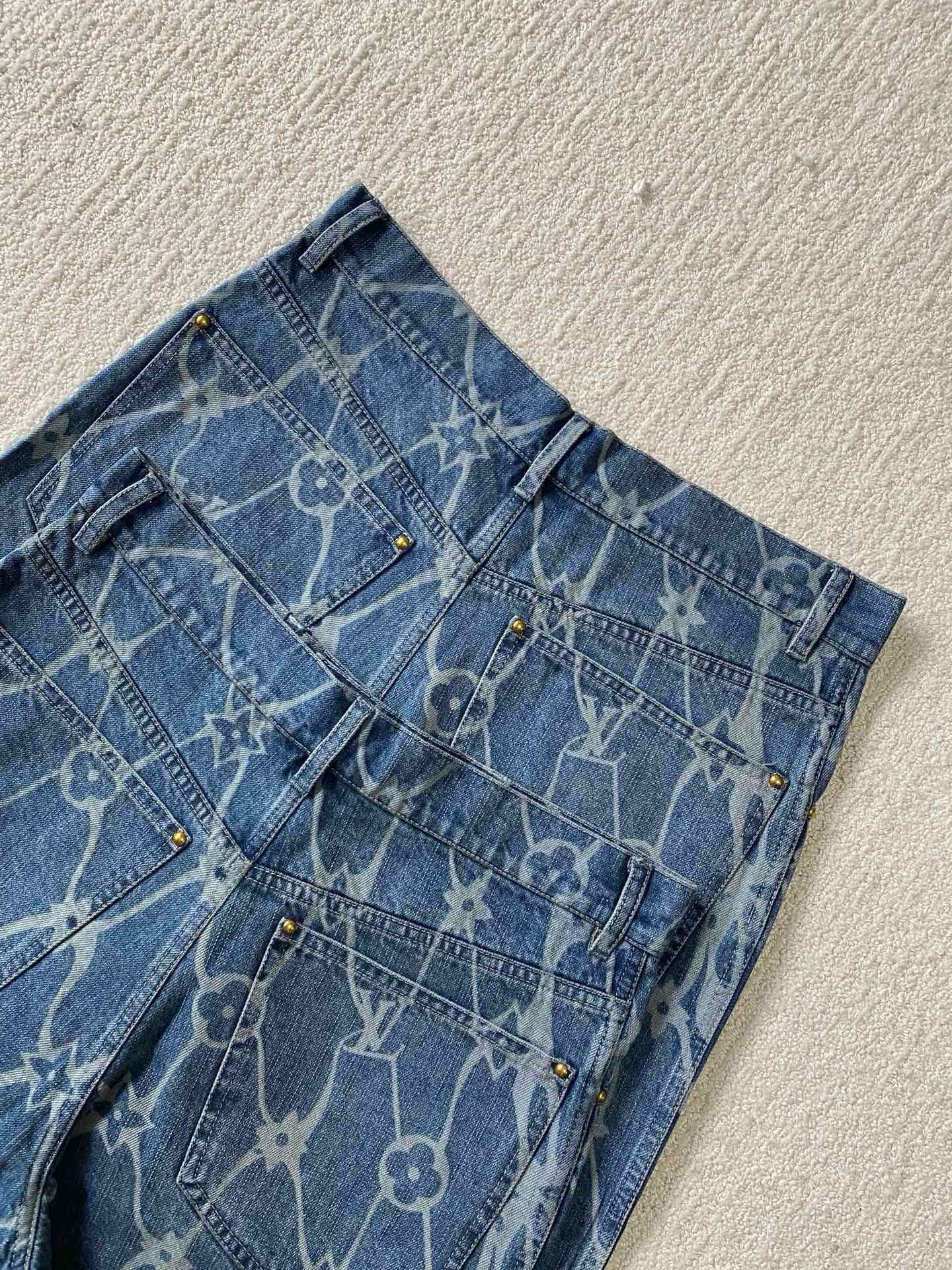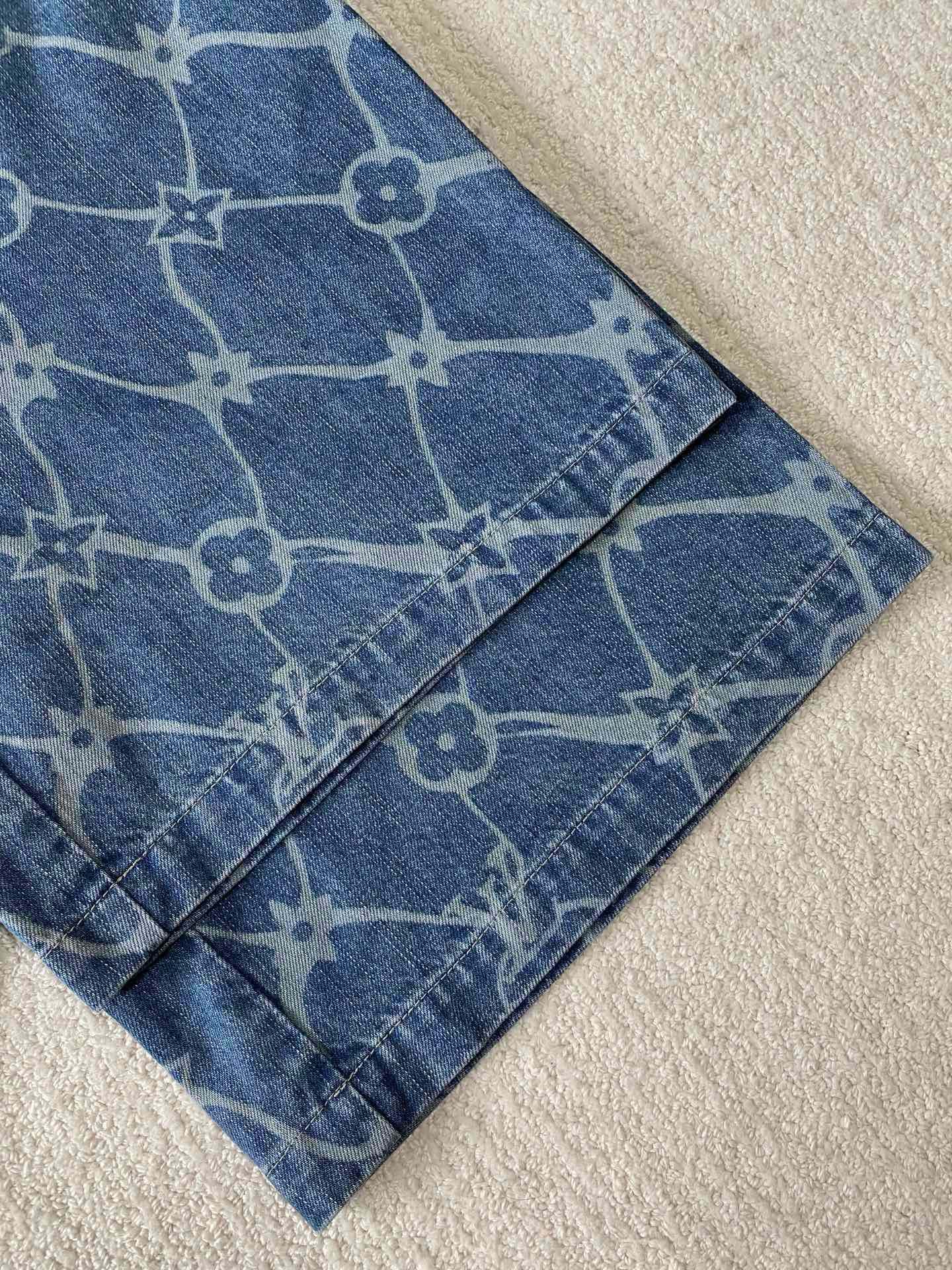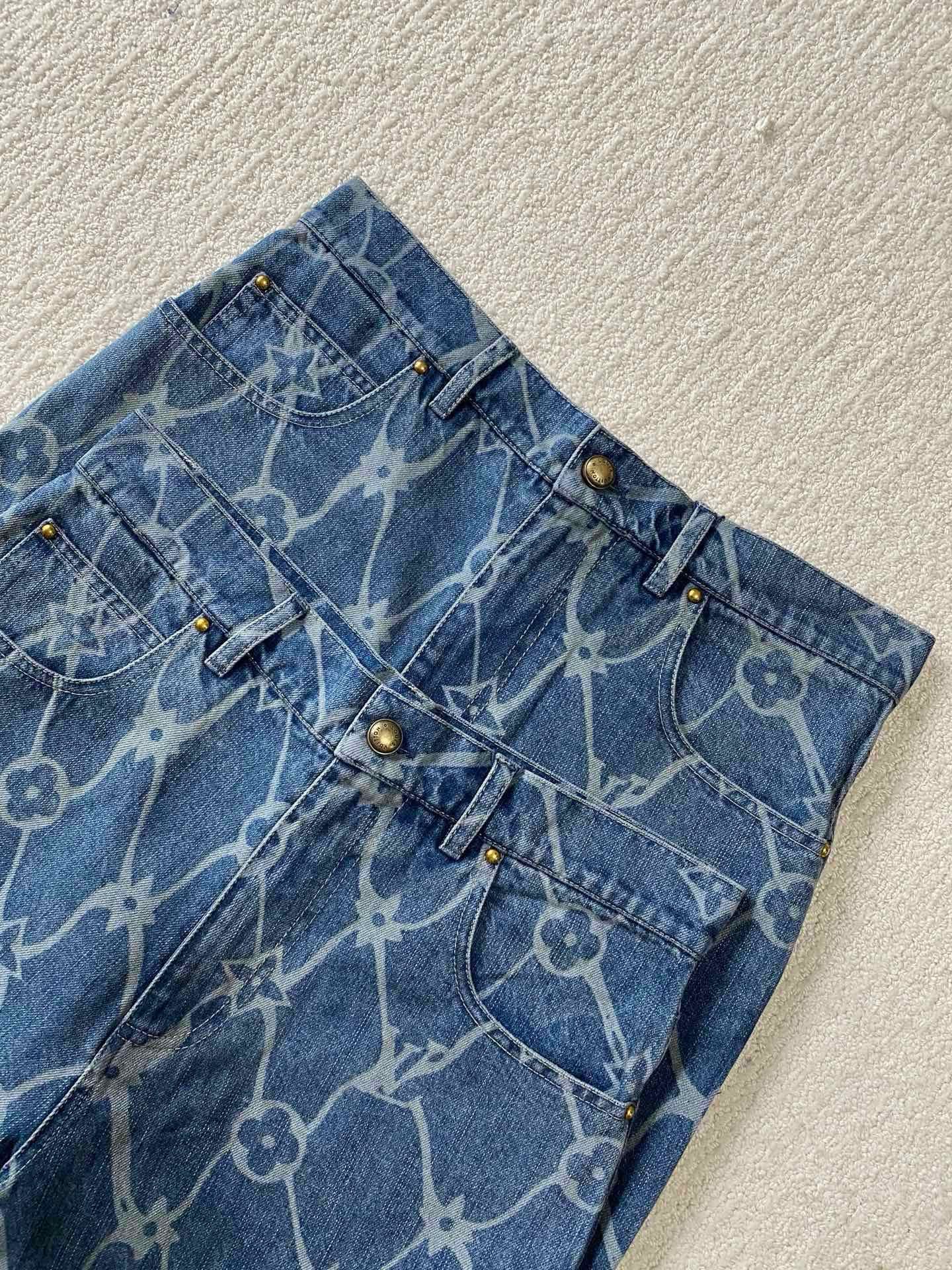 NIGO Louis Vuitton Men's Summer Blue Logo Printed Lapel Single Breasted Denim Short Sleeve Shirt Zipper Straight Jeans Shorts Set Suit #nigo99785