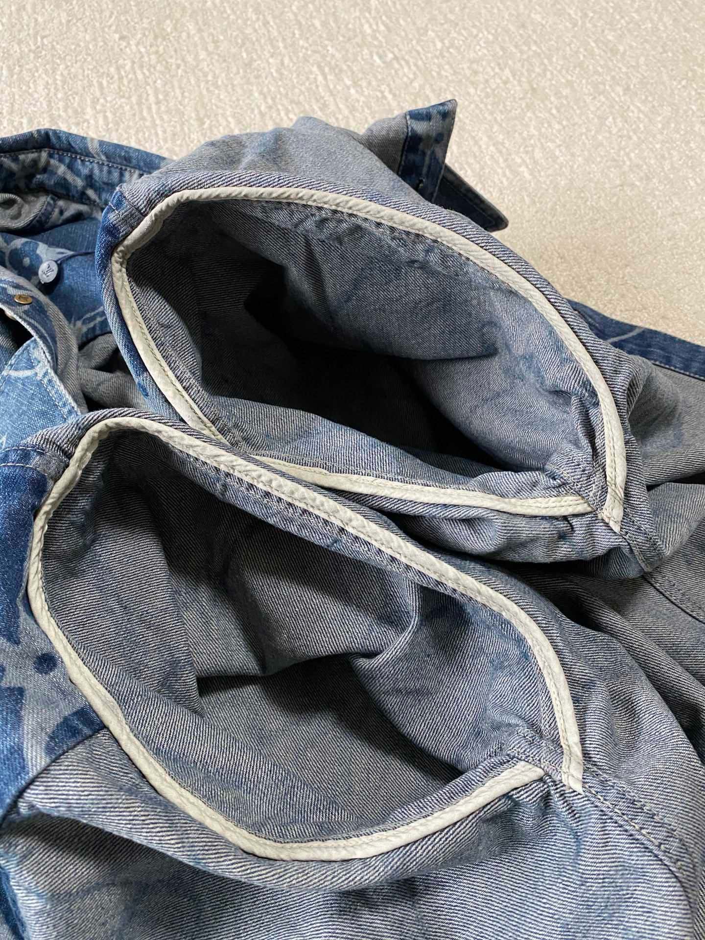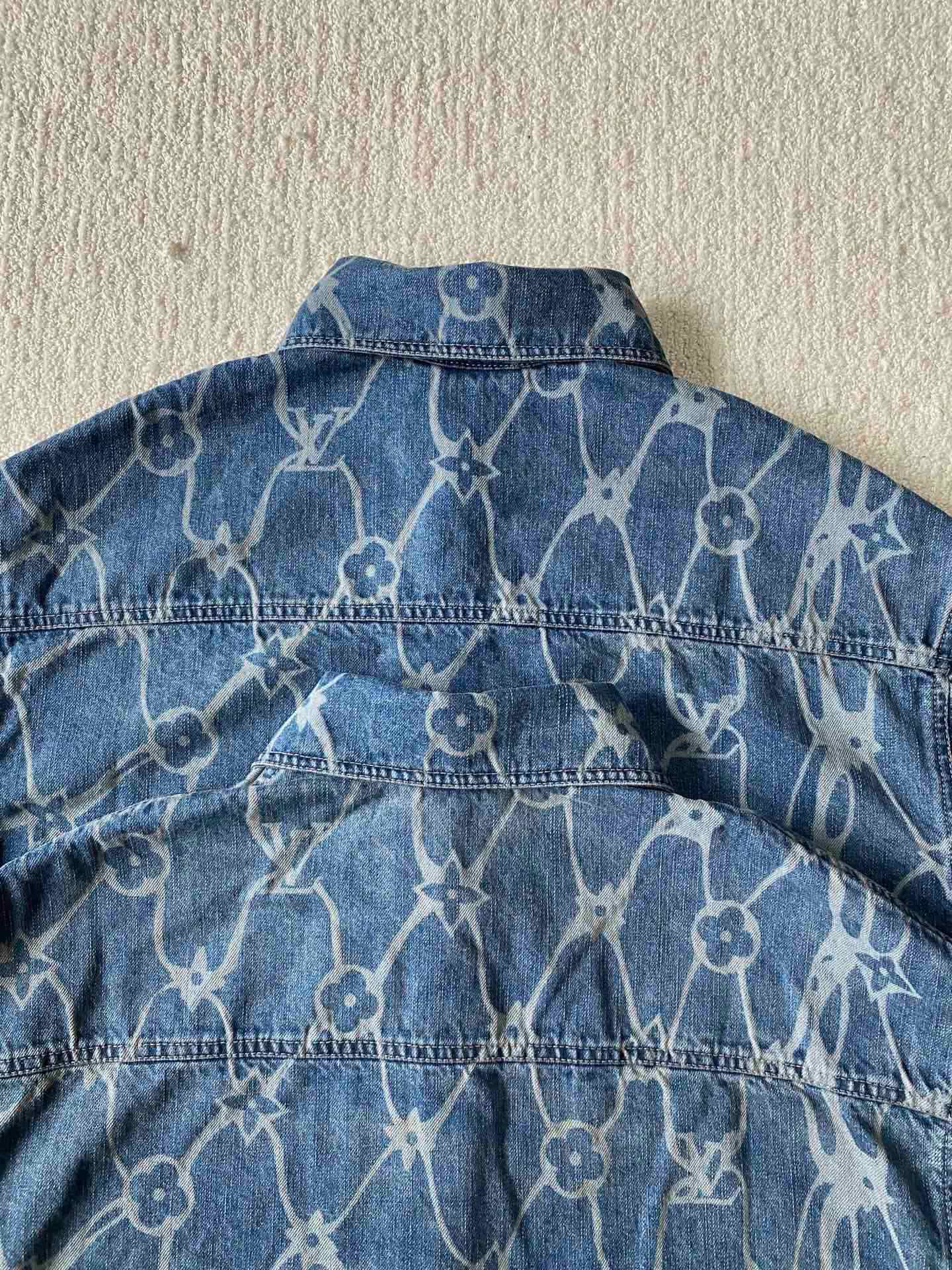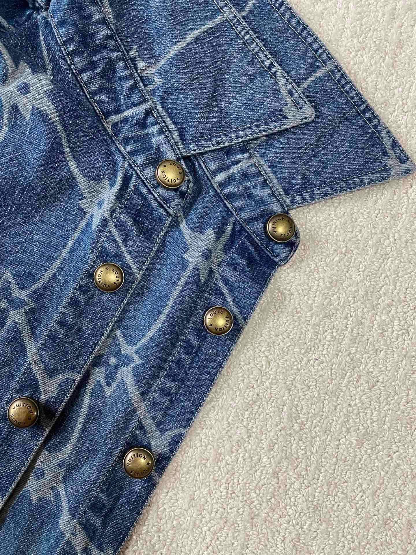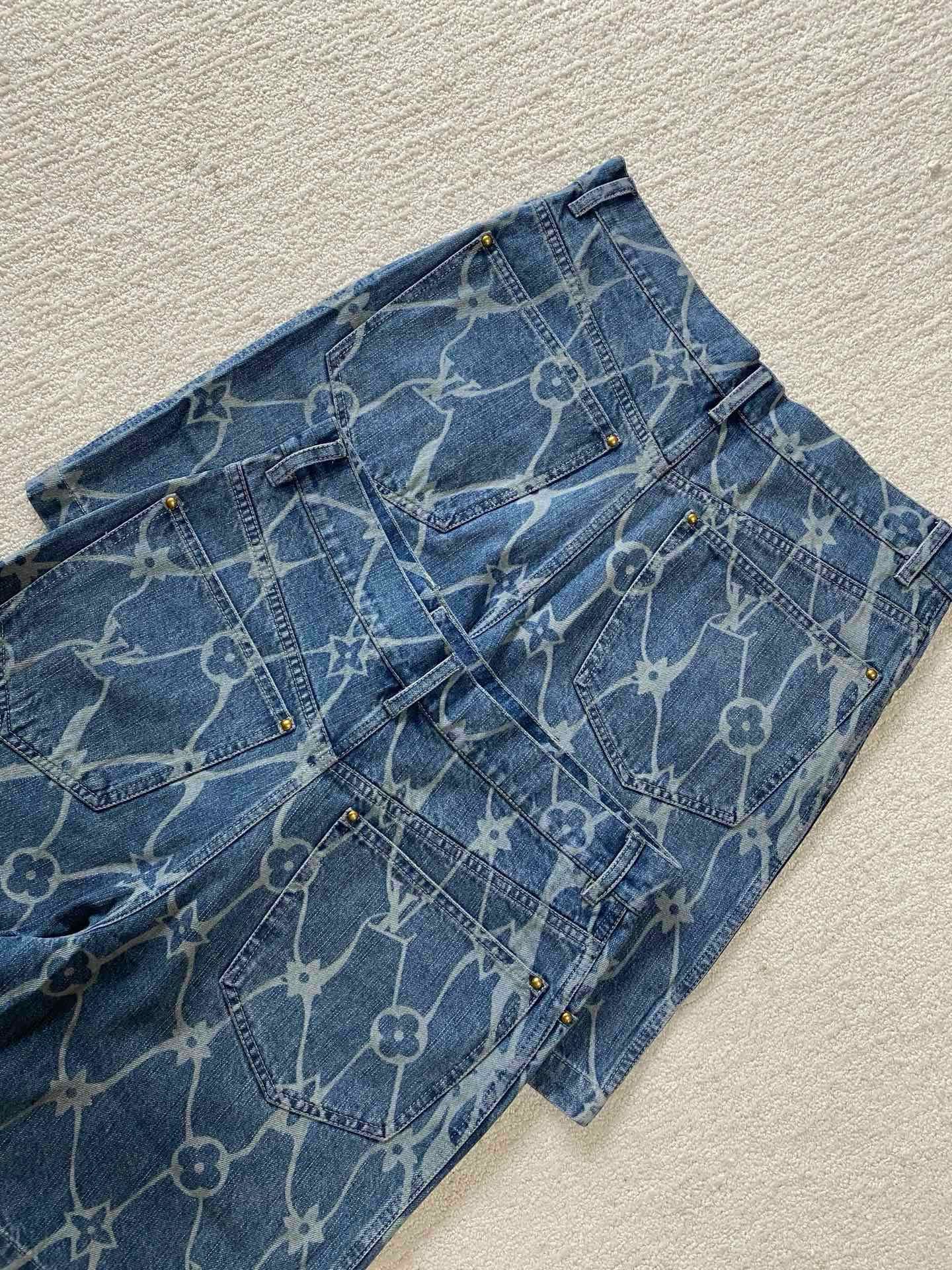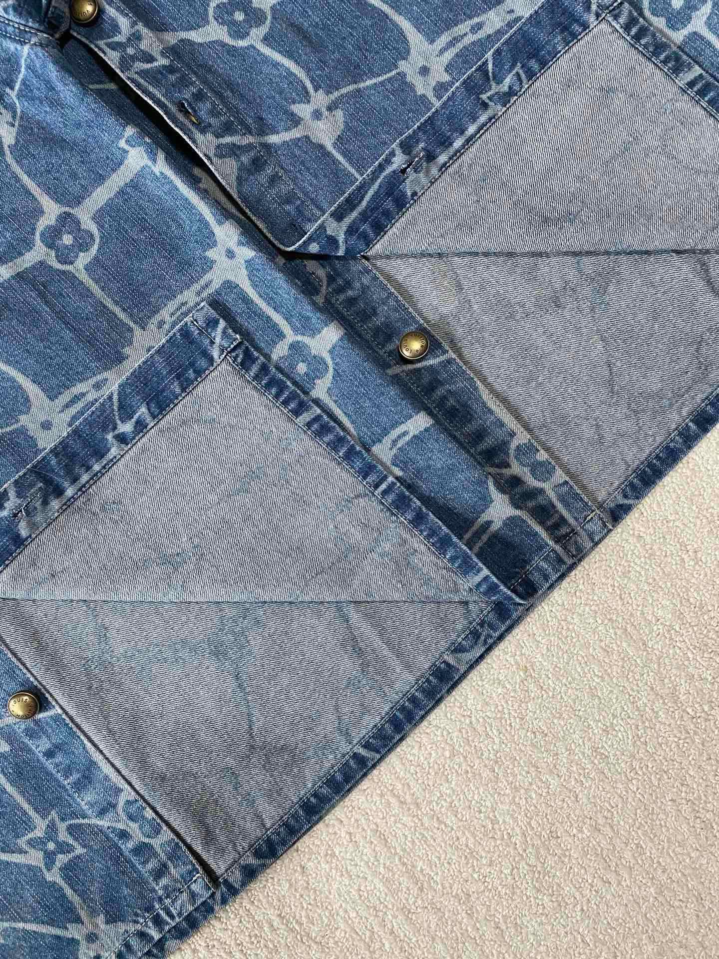 NIGO Louis Vuitton Men's Summer Blue Logo Printed Lapel Single Breasted Denim Short Sleeve Shirt Zipper Straight Jeans Shorts Set Suit #nigo99785